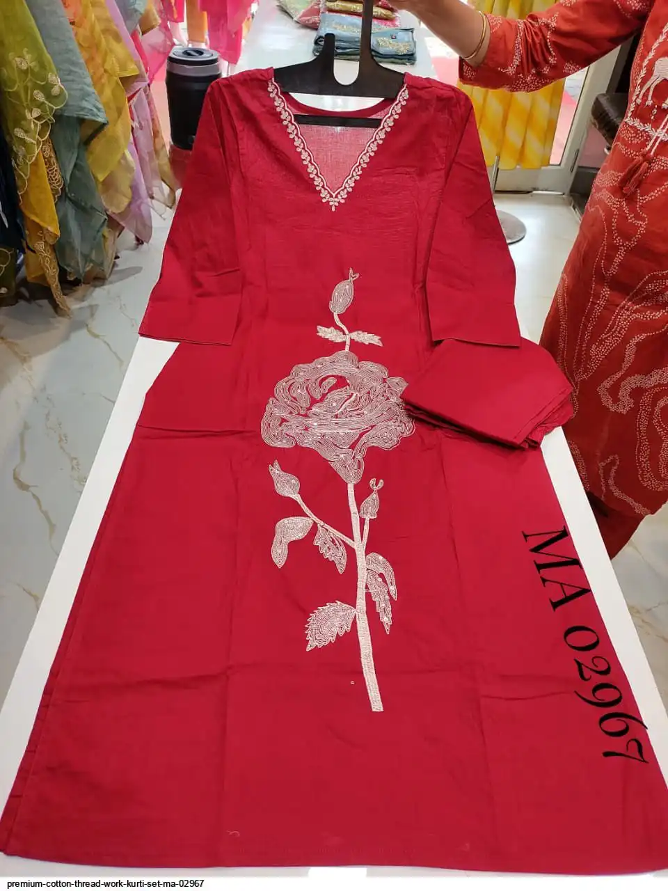 Top - premium cotton beautiful straight kurti with beautiful thread embroidery work