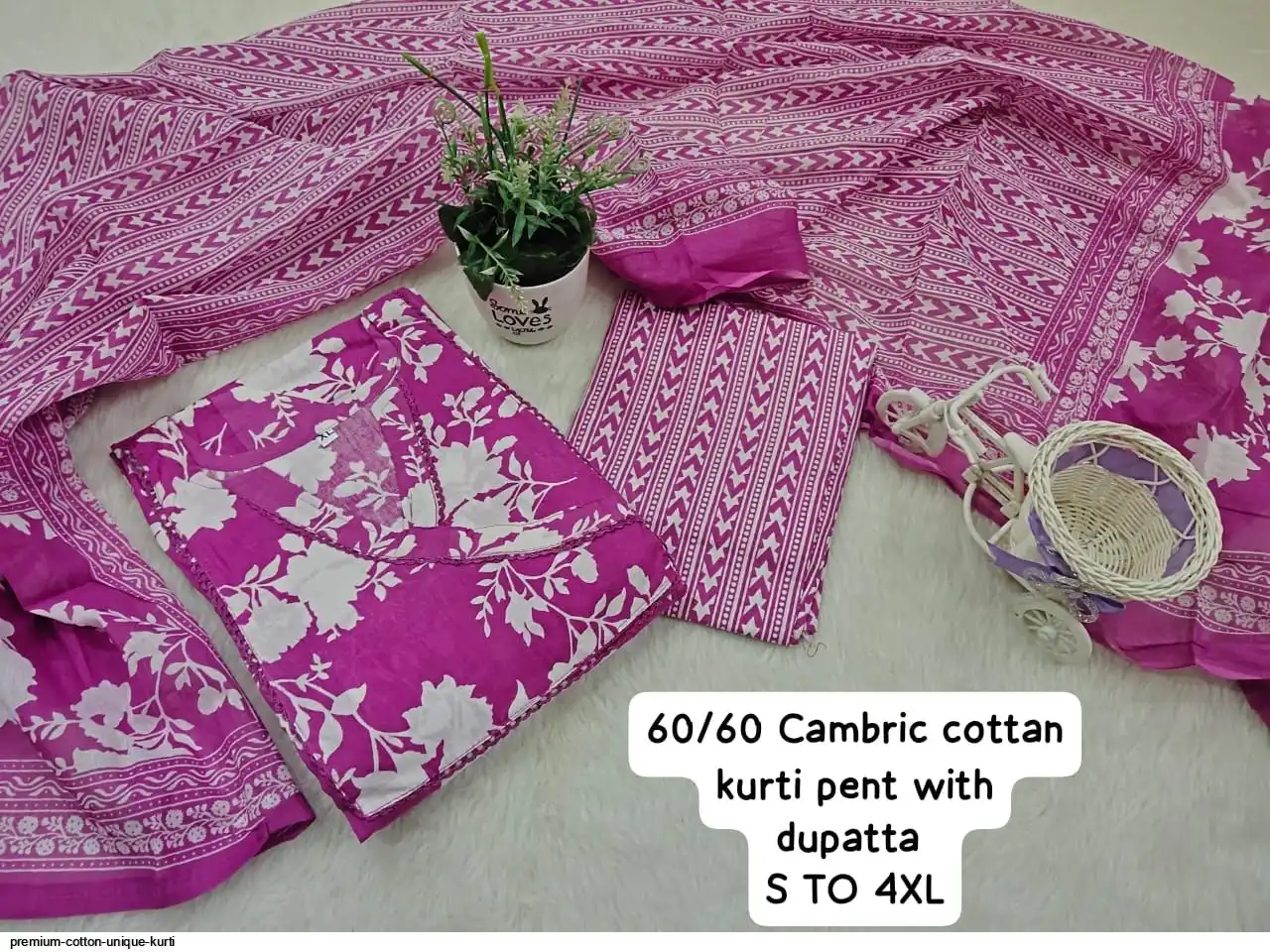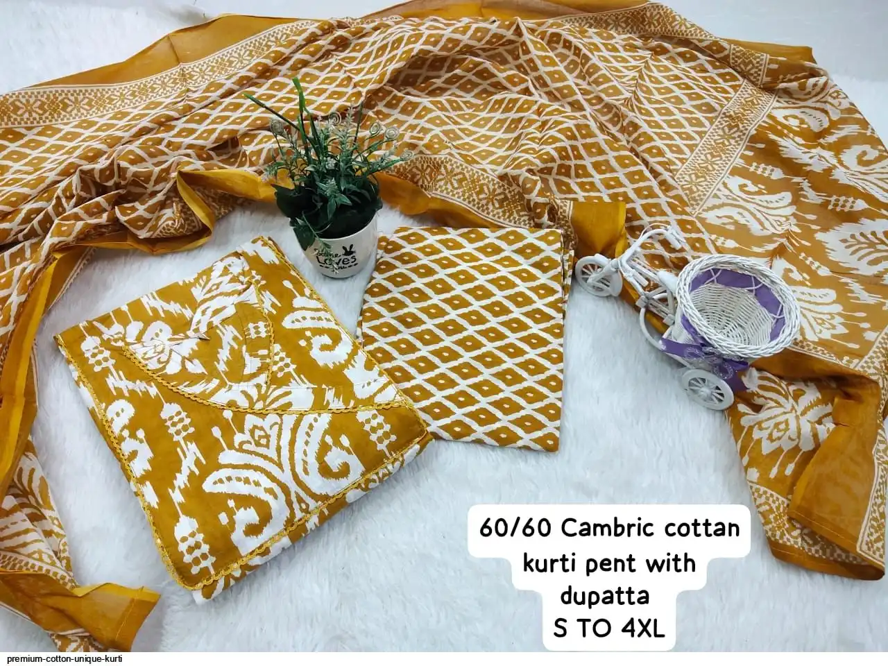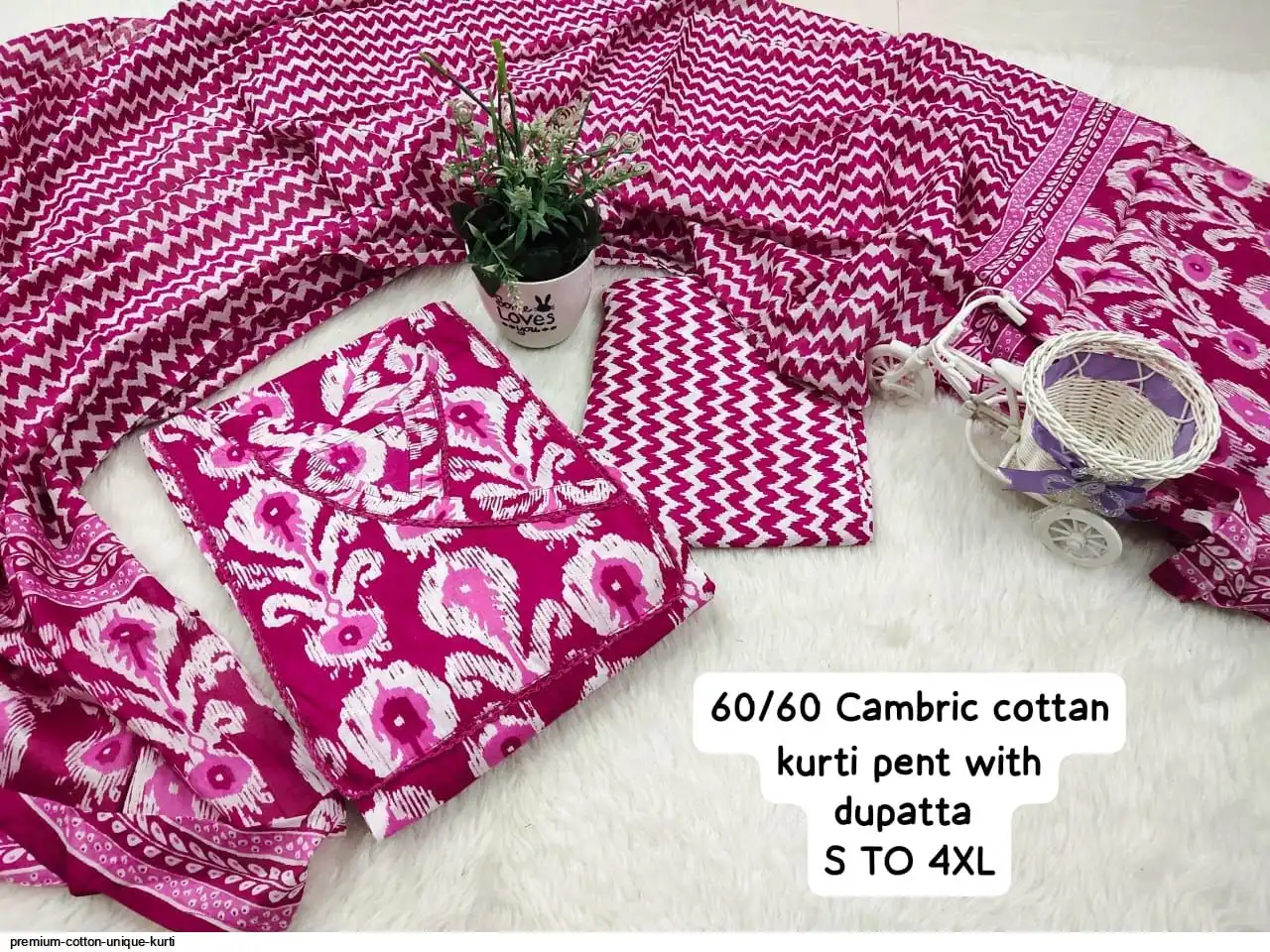 Premium Jaipur cambric cotton kurti pant with dupatta