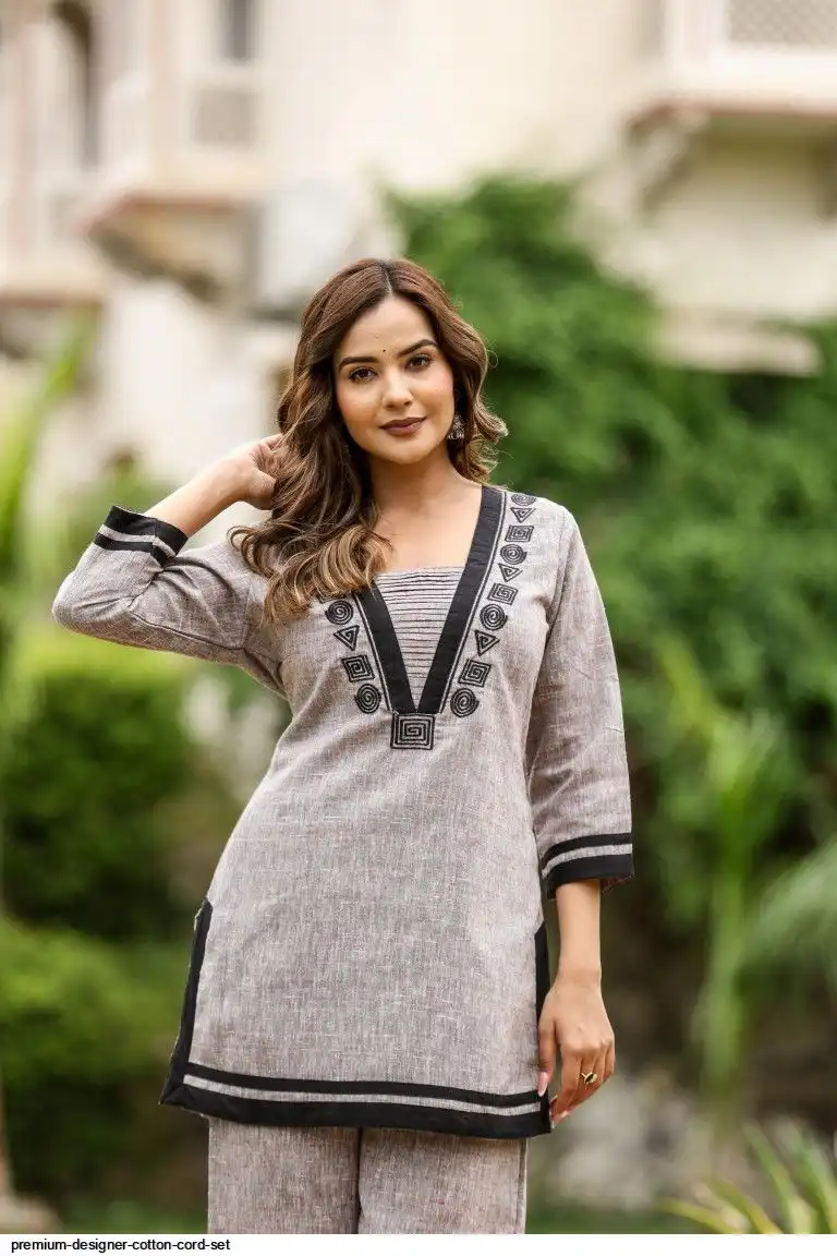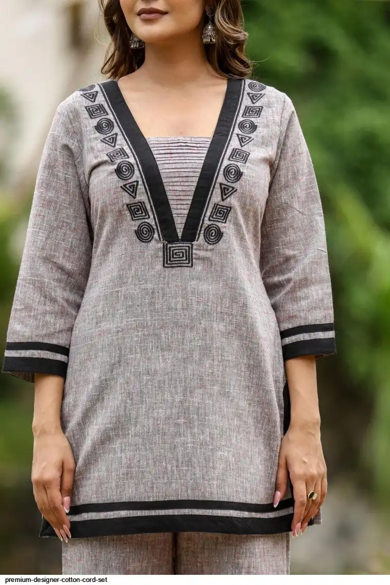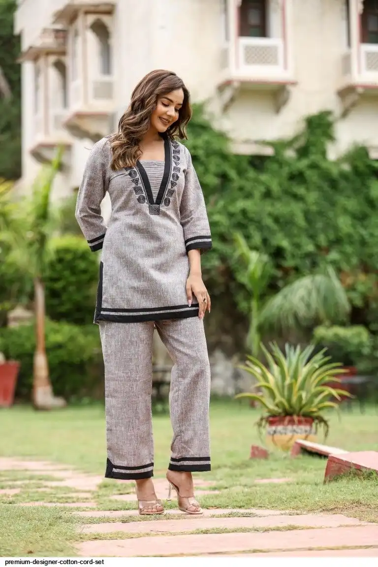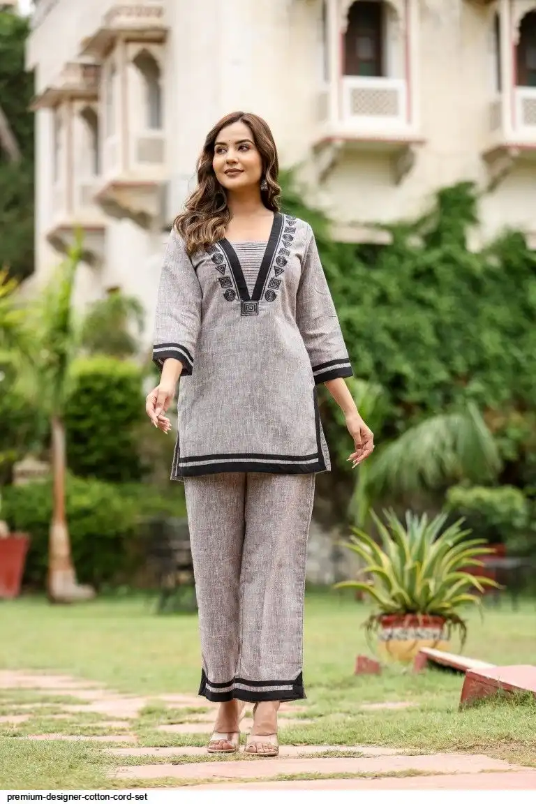 Premium designer cord set on cotton loom fabric with beautiful embroidery work