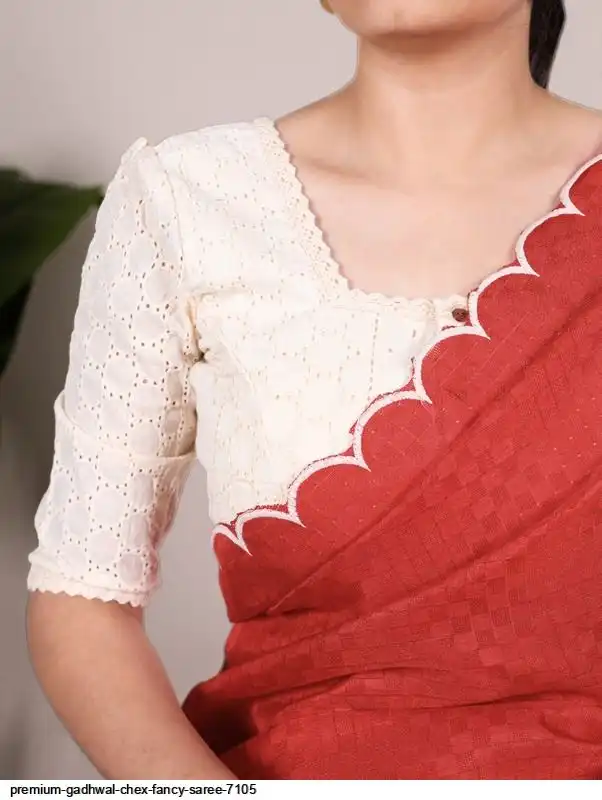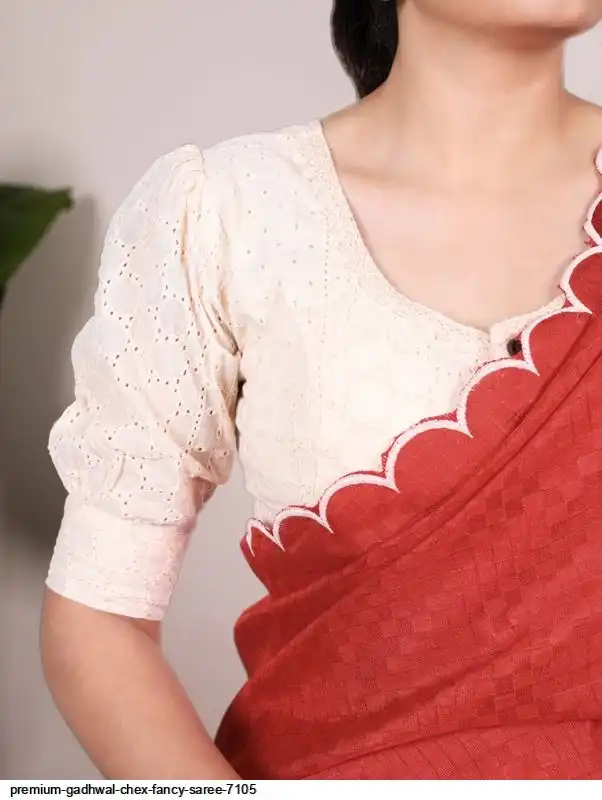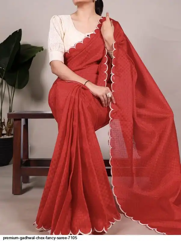 PREMIUM GADHWAL CHEX FANCY SAREE 7105 RED