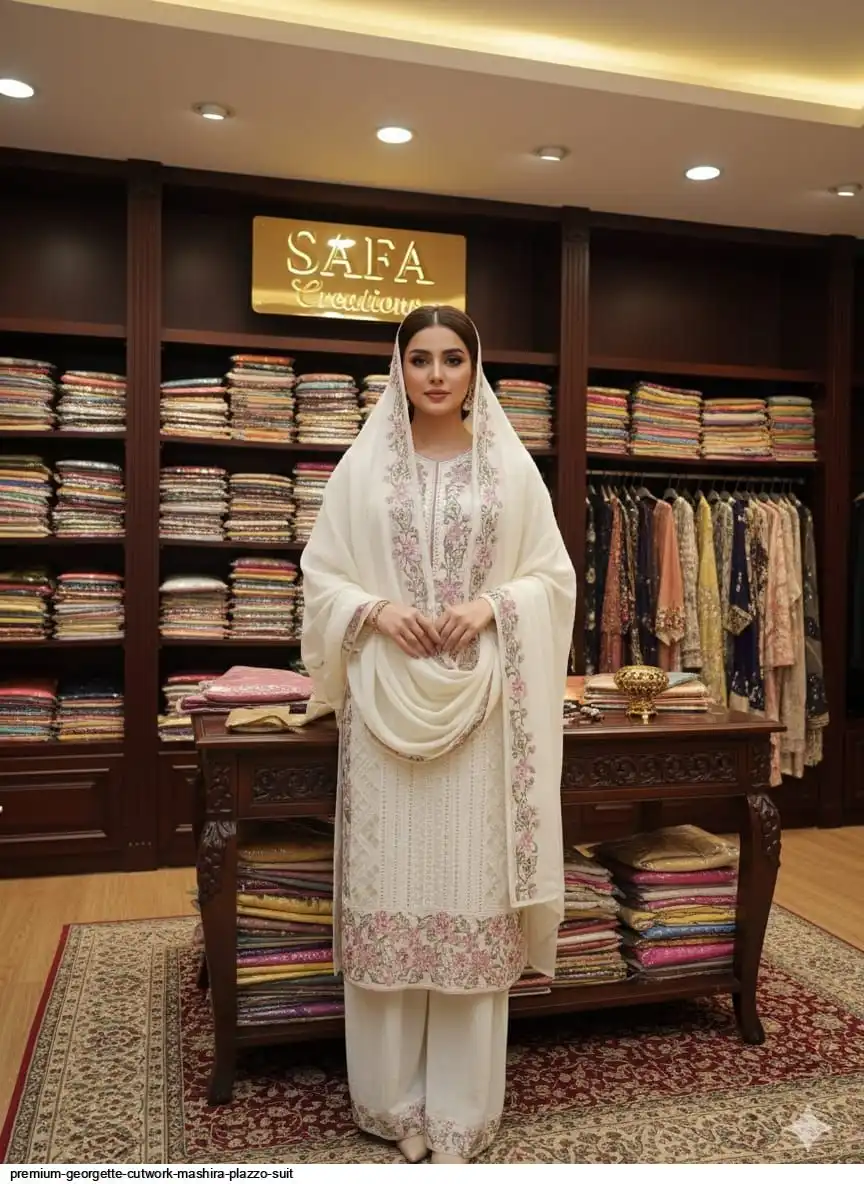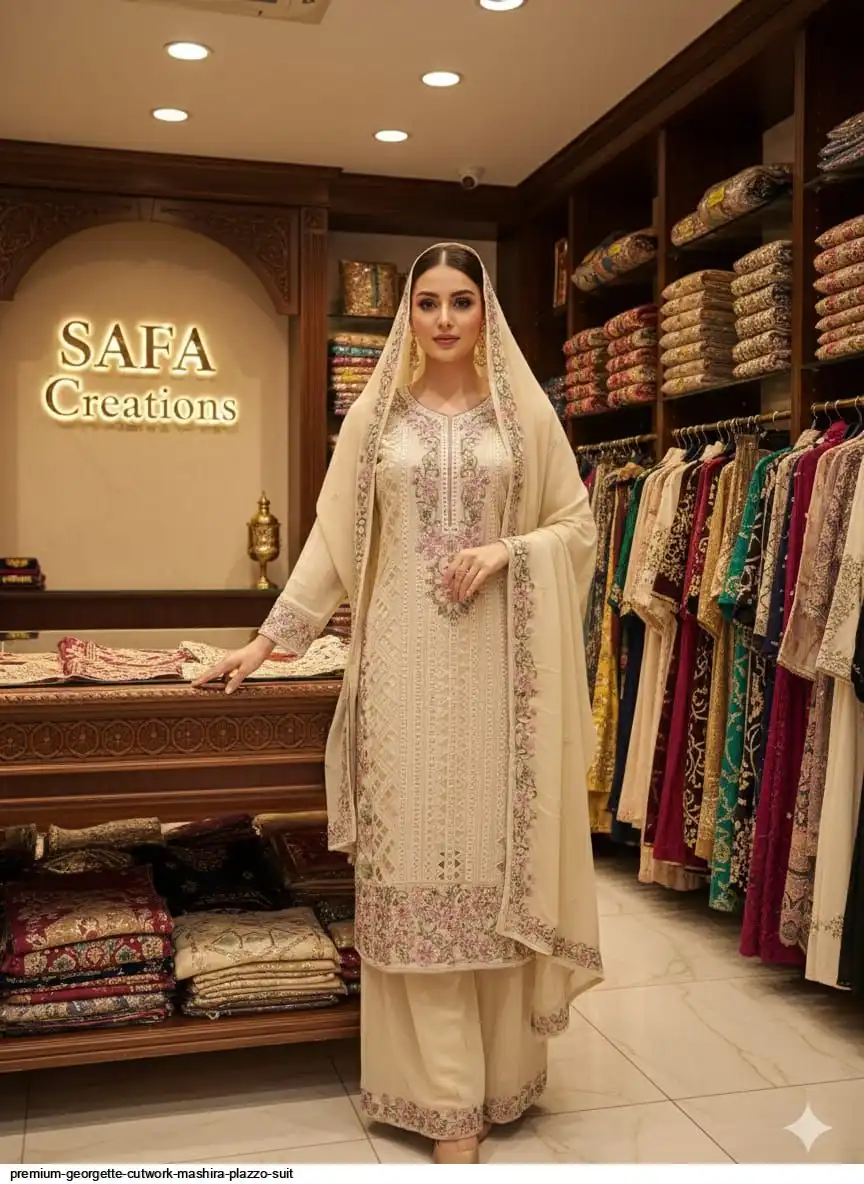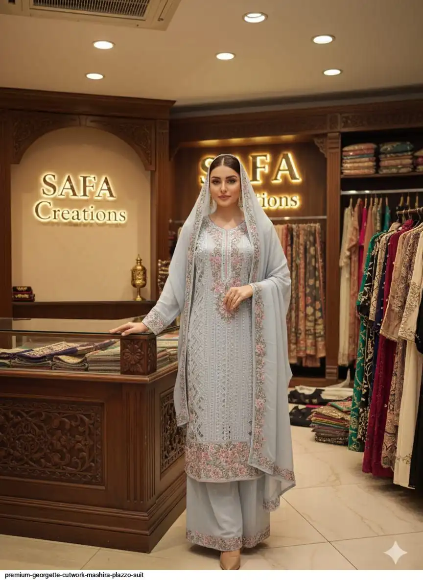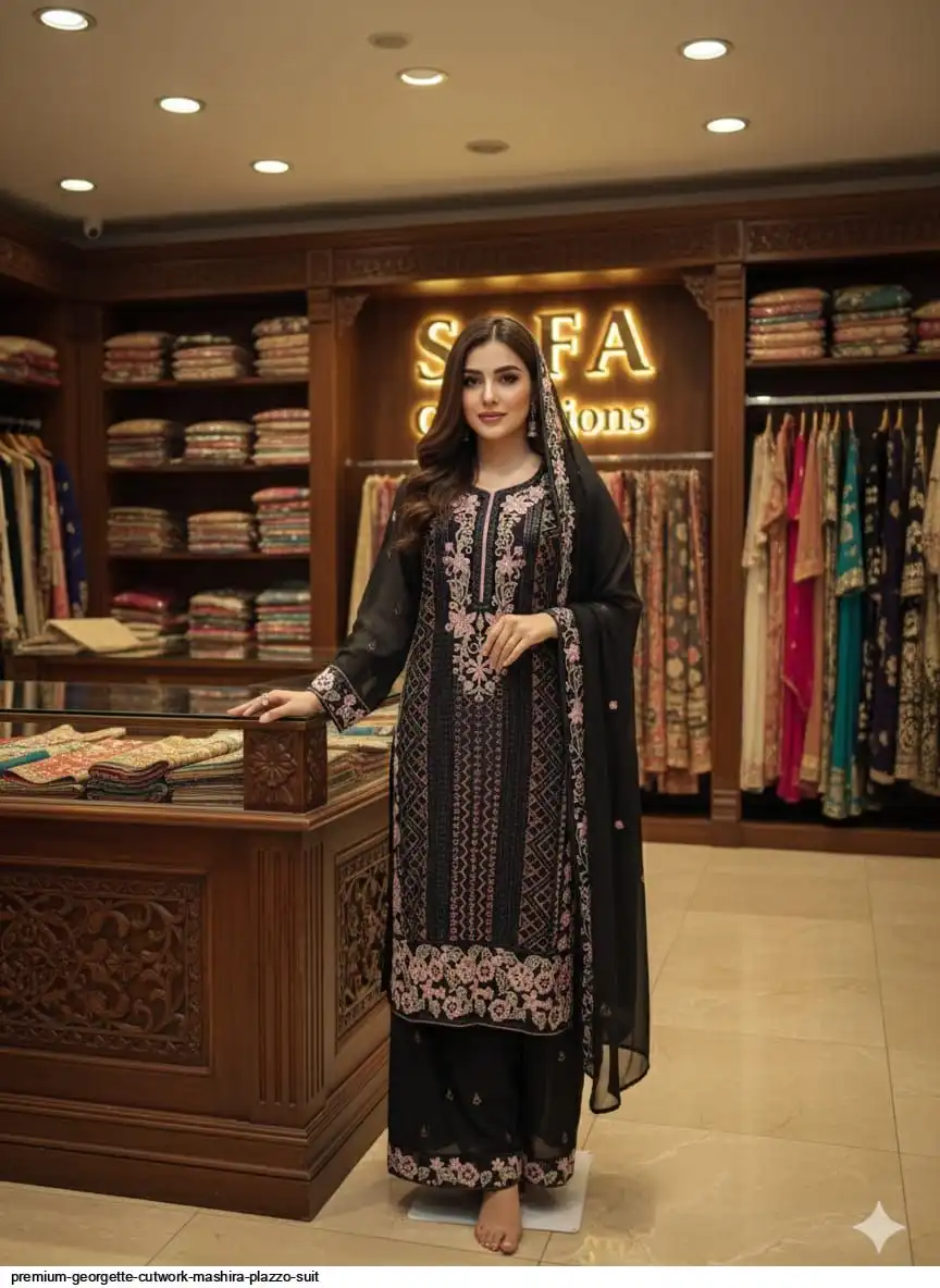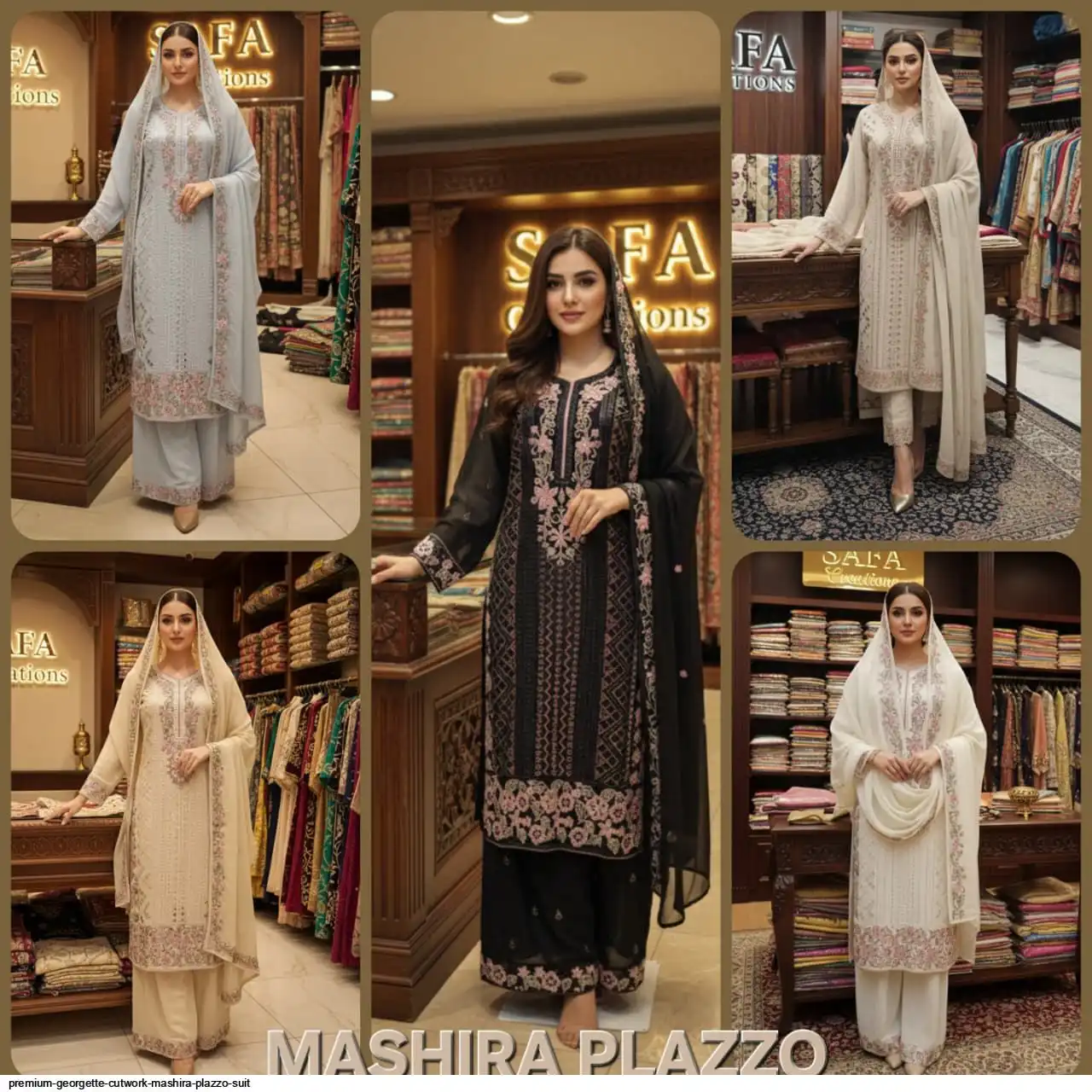 PLAZZO :- PREMIUM GEORGETTE WITH EMBROIDERY & ZARKHAN DIAMOND
