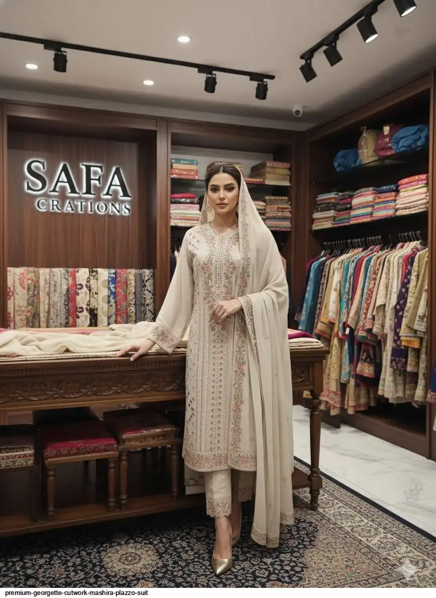 Top :- PREMIUM GEORGETTE WITH DELICATE CUTWORK , FULL EMBROIDERY AND FULL SWAROSKI DIAMONDS