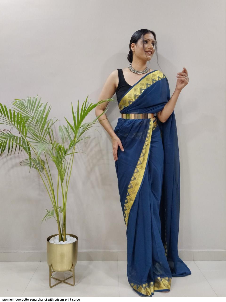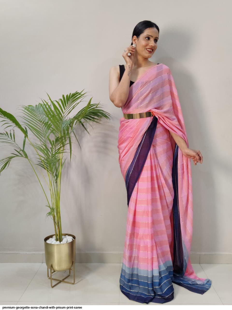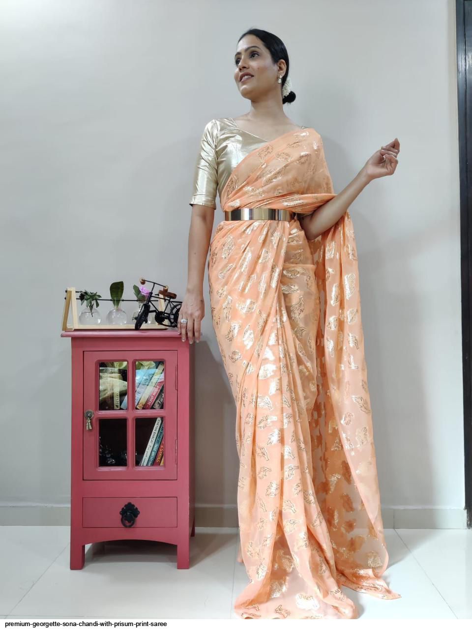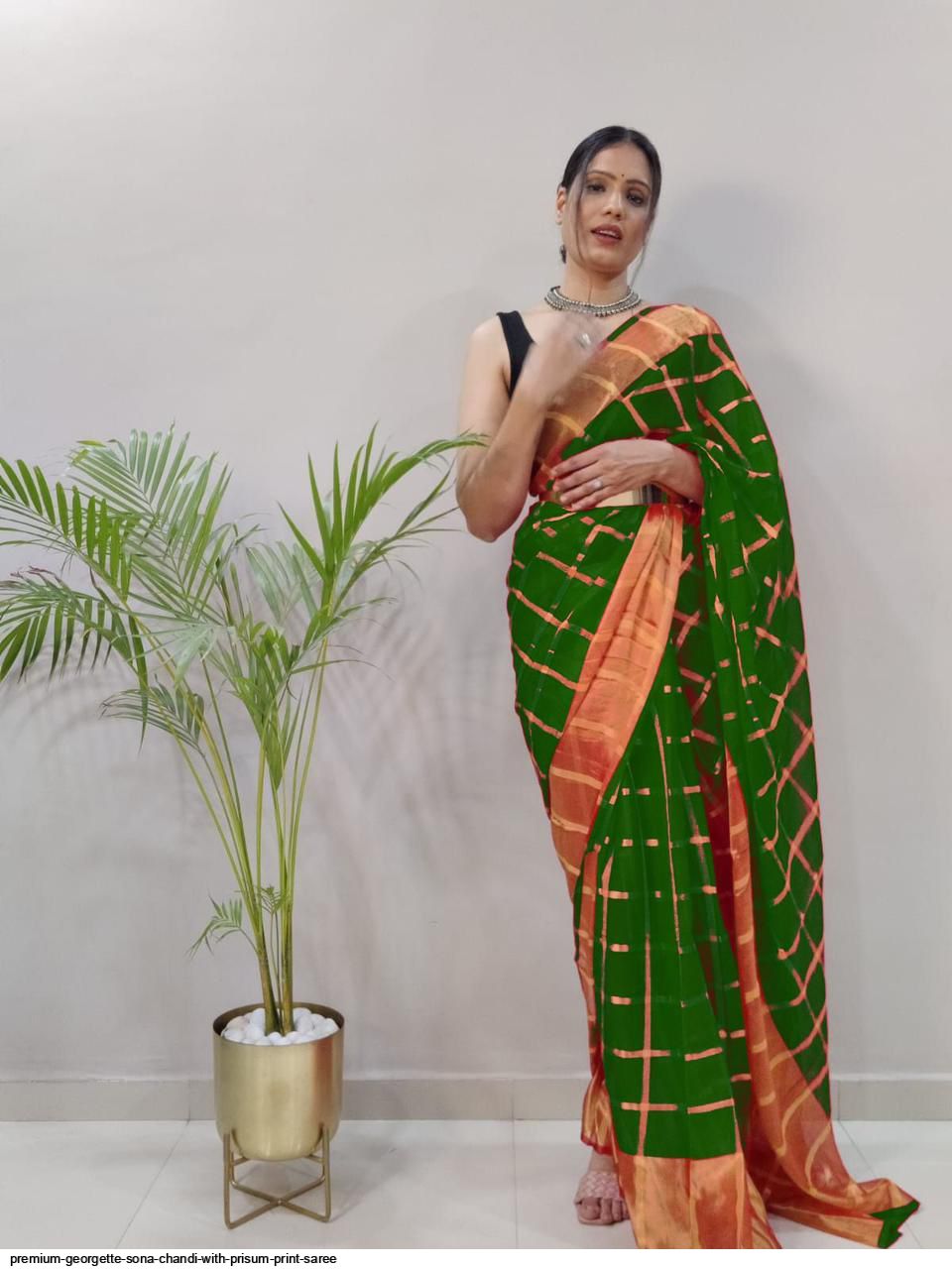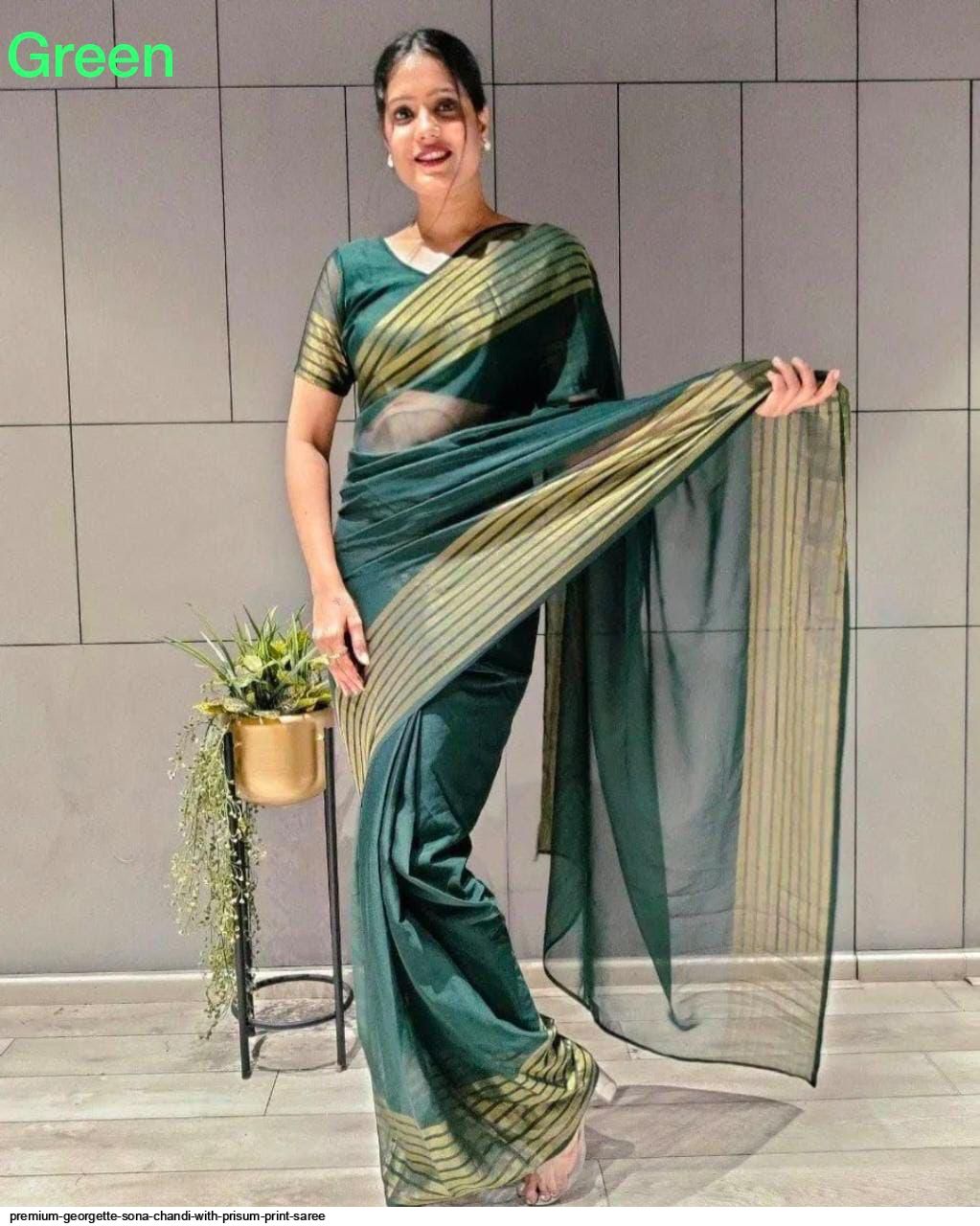 *FABRIC : Premium Georgette Sona Chandi with prisum print *