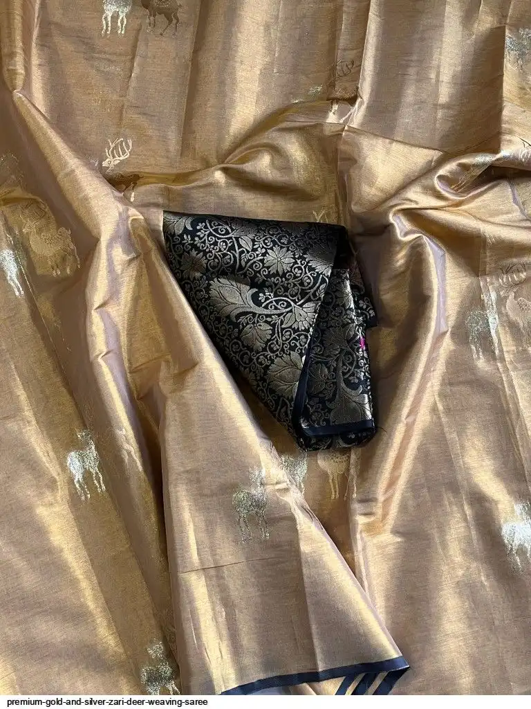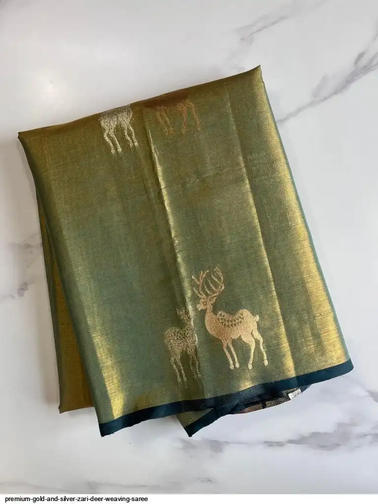Premium Banarasi Tissue saree with Gold & Silver Zari Deer Weaving on all over the saree