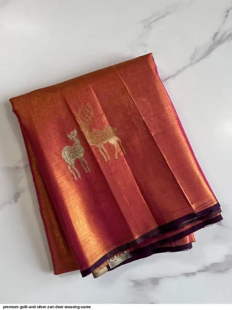 PREMIUM GOLD AND SILVER ZARI DEER WEAVING SAREE B