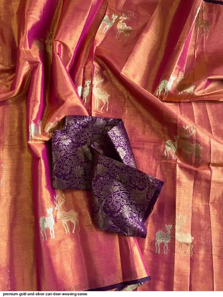 Premium Banarasi Tissue saree with Gold & Silver Zari Deer Weaving on all over the saree