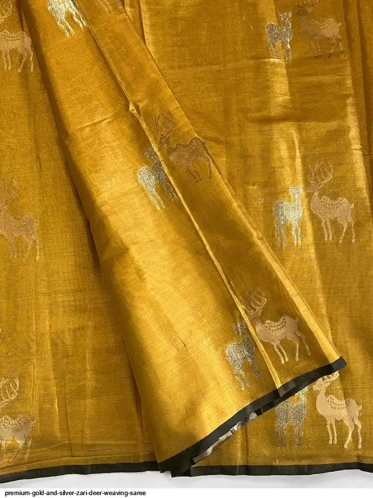 PREMIUM GOLD AND SILVER ZARI DEER WEAVING SAREE C