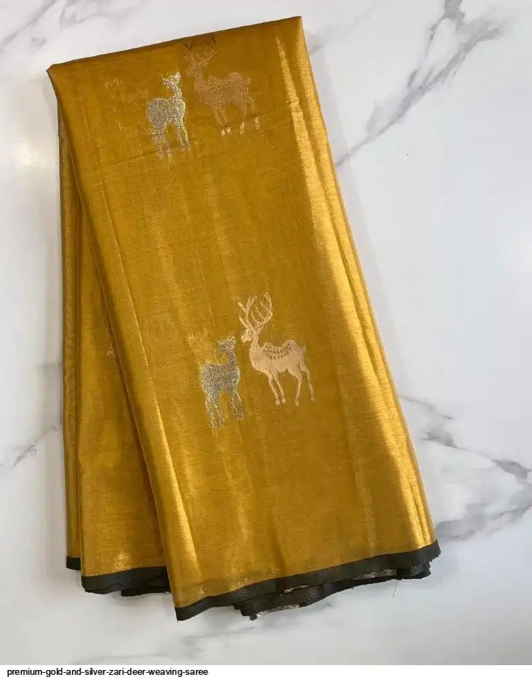 Premium Banarasi Tissue saree with Gold & Silver Zari Deer Weaving on all over the saree