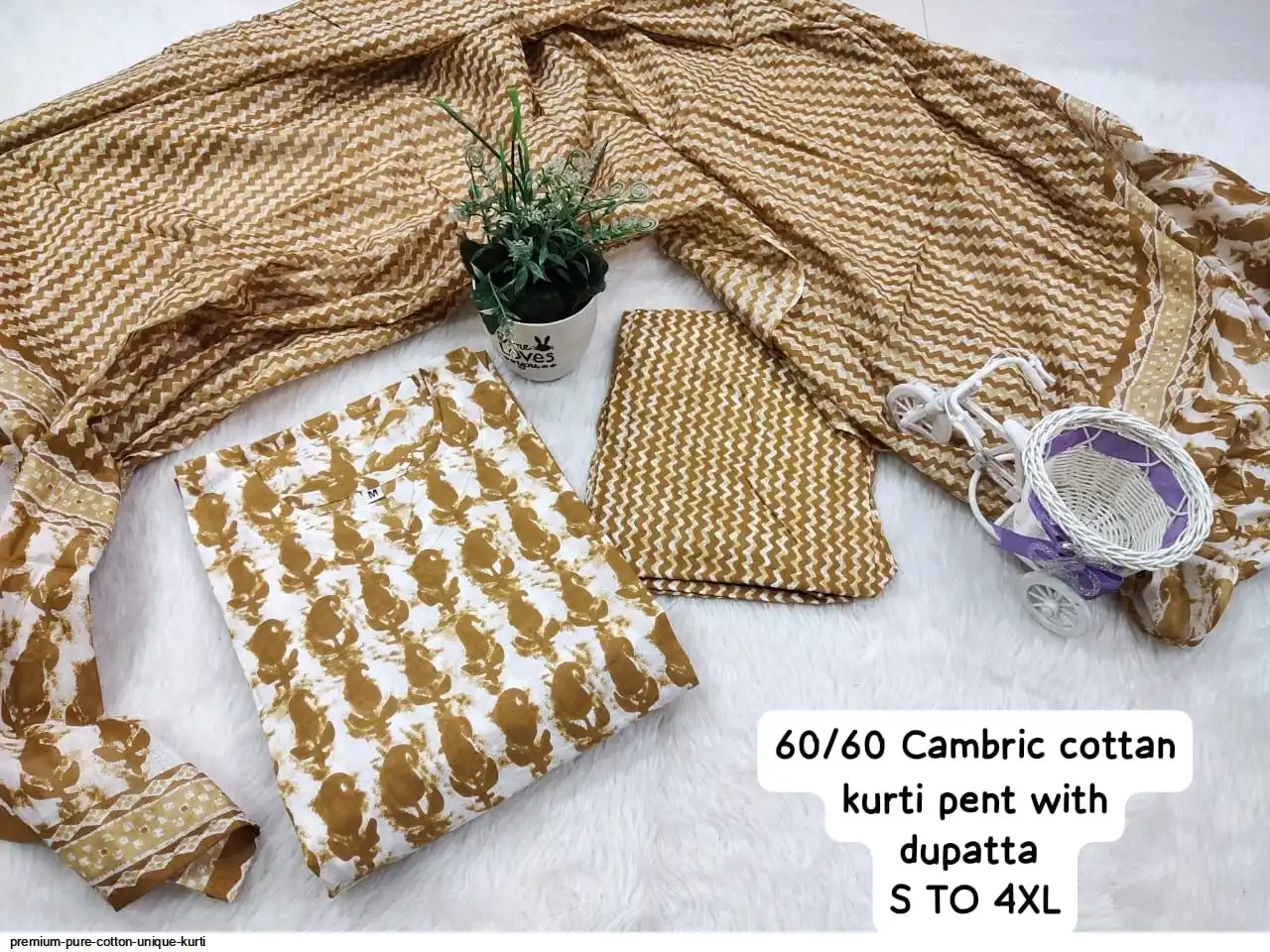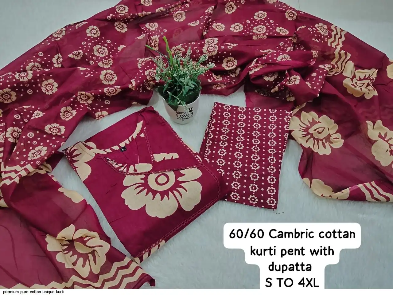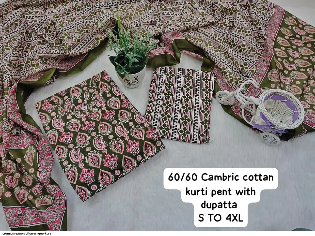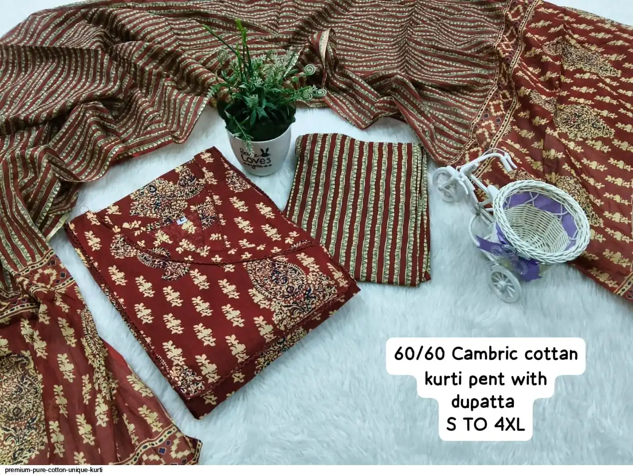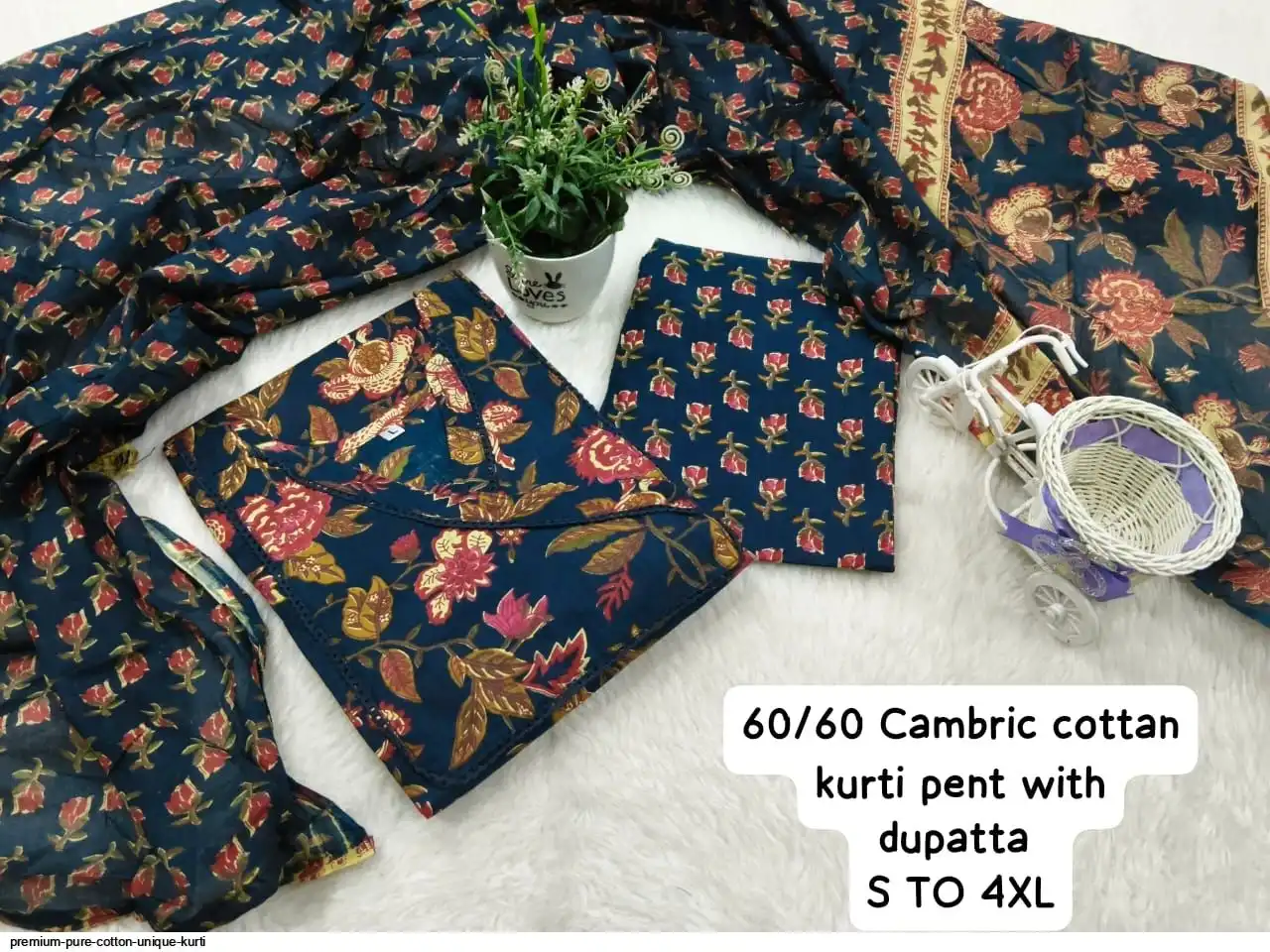 Premium Jaipur cambric cotton kurti pant with dupatta