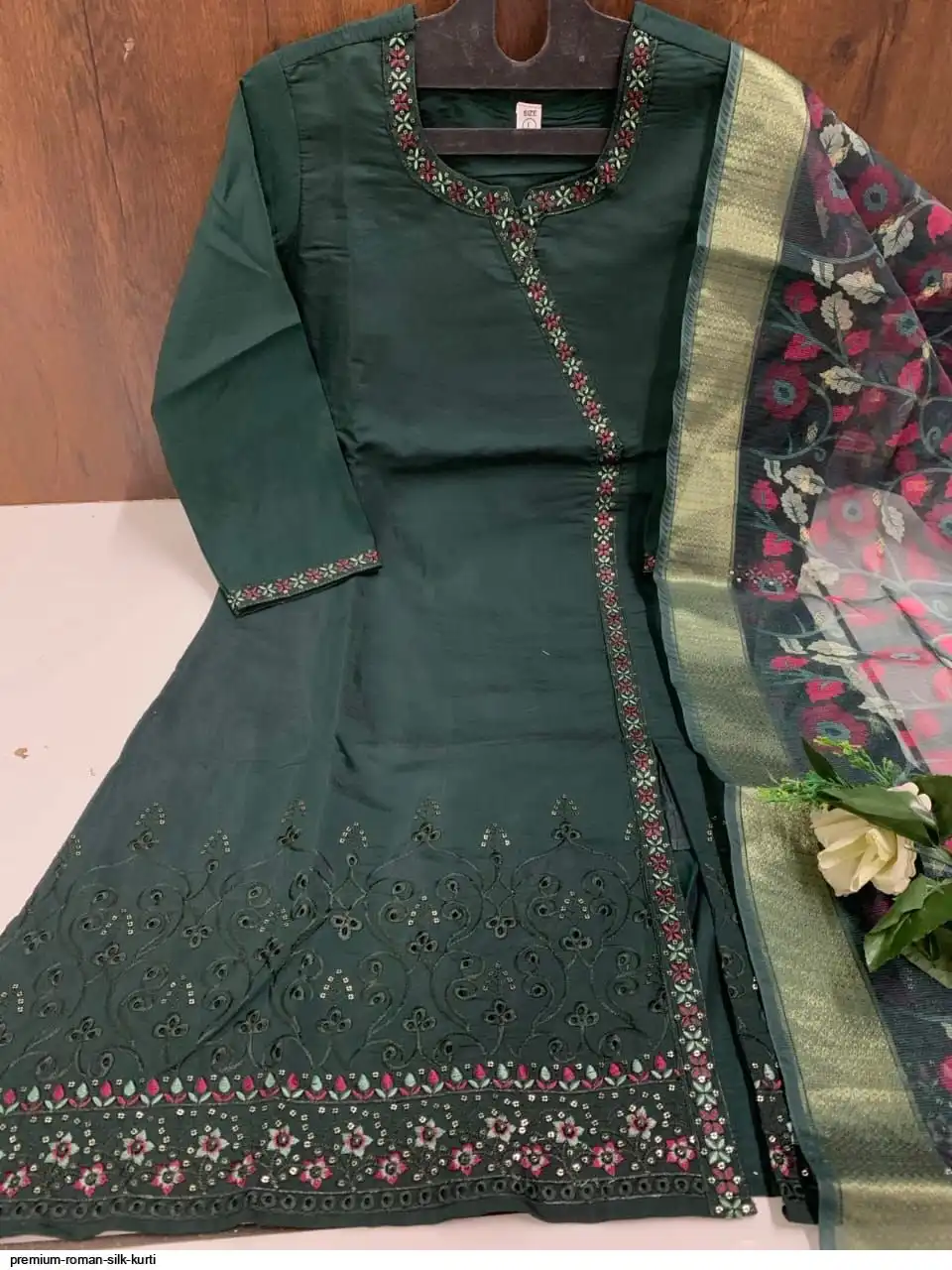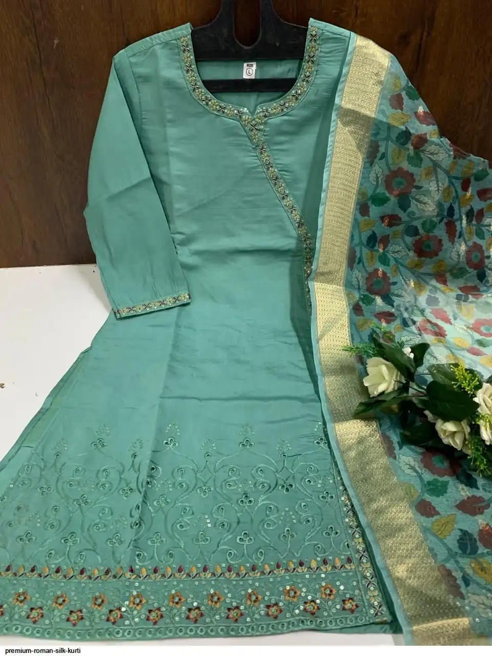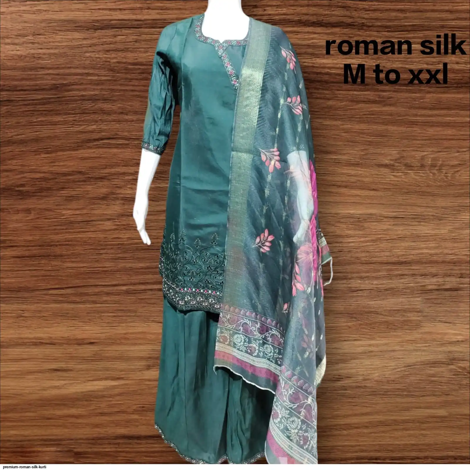 HEAVY PREMIUM DUPPTA HEAVY WORK FABRIC : PREMIUM Roman SILK SIZE - M L XL XXL