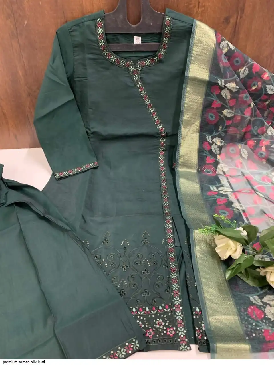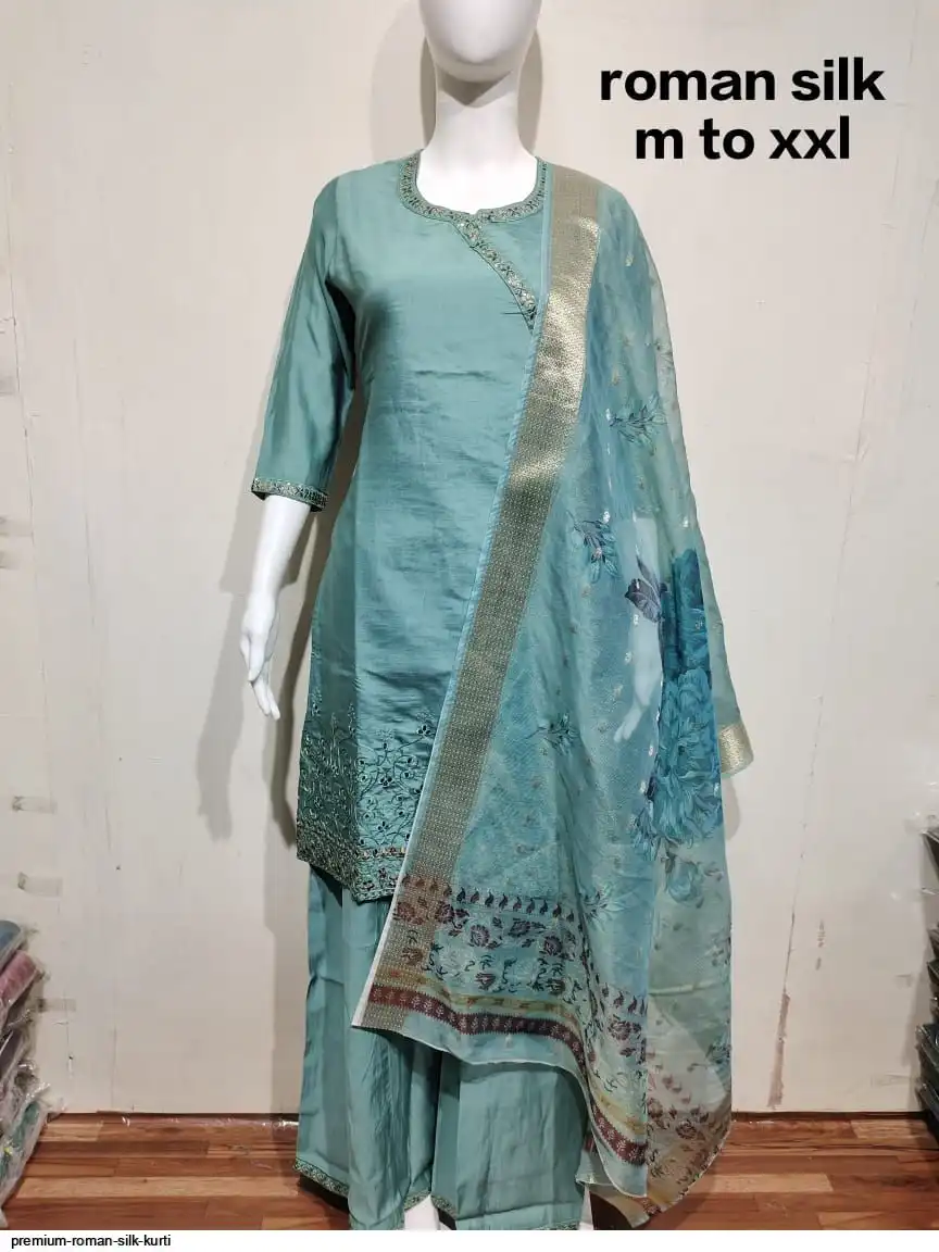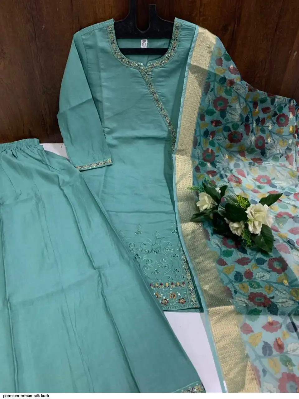 HEAVY PREMIUM DUPPTA HEAVY WORK FABRIC : PREMIUM Roman SILK SIZE - M L XL XXL