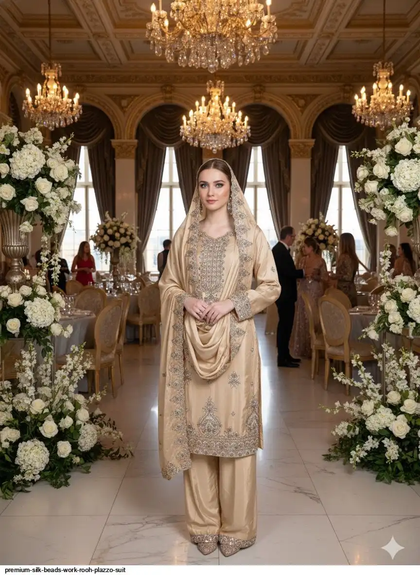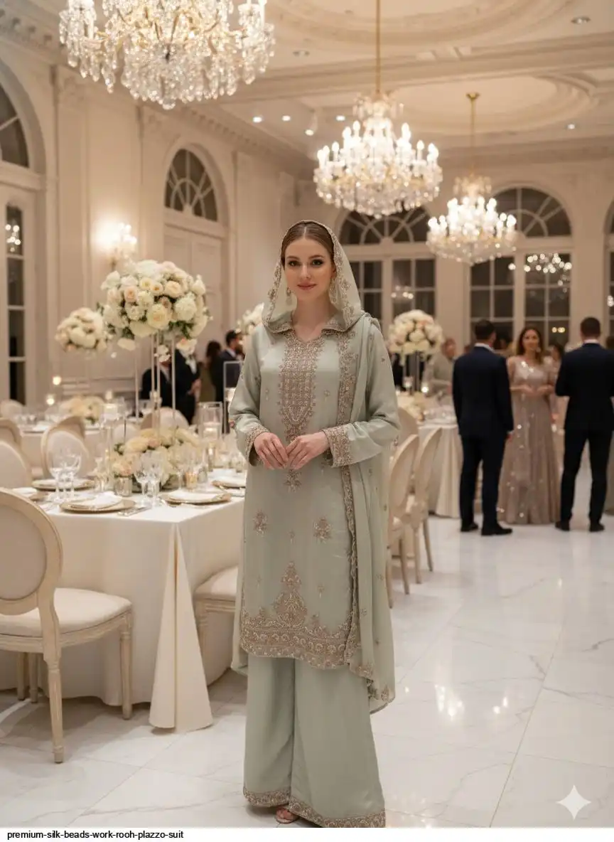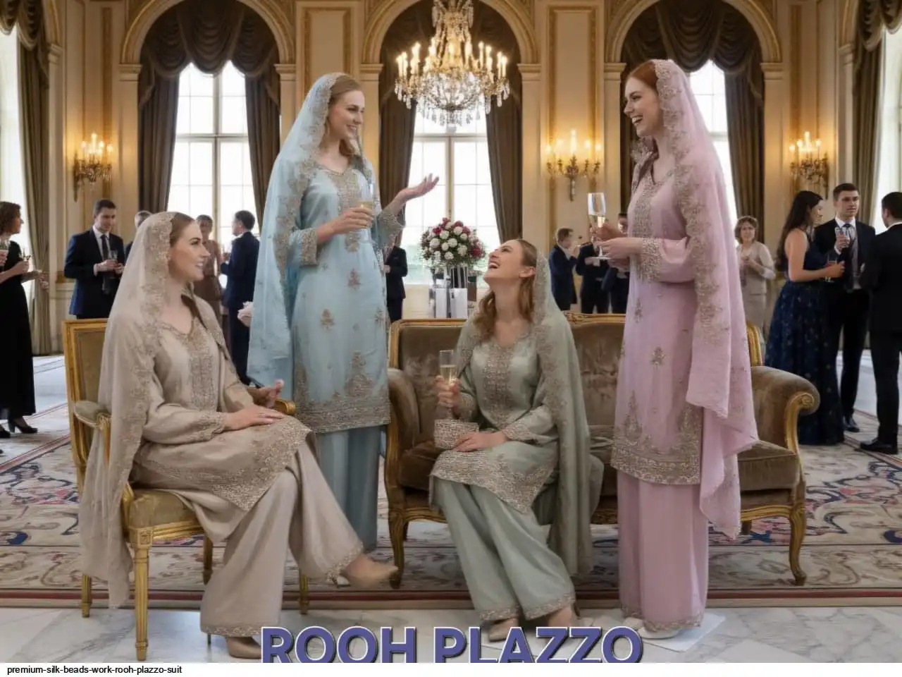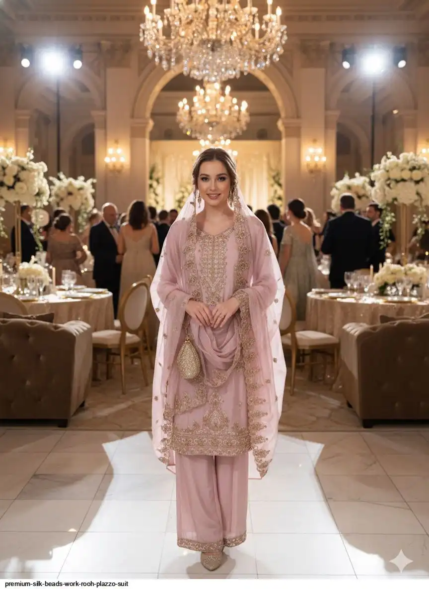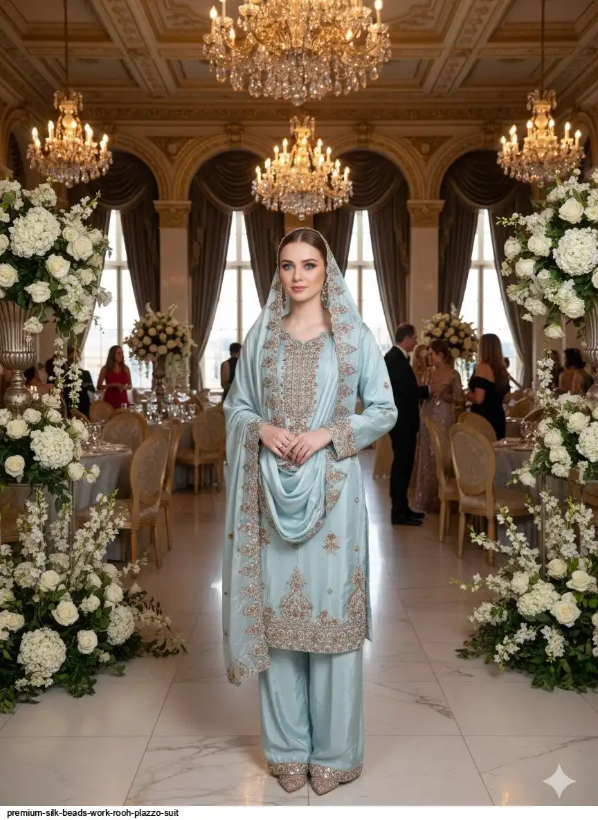 PLAZZO :- PREMIUM HO SILK WITH EMBROIDERY ,DELICATE BEADSWORK & DIAMOND