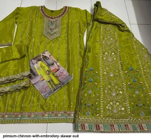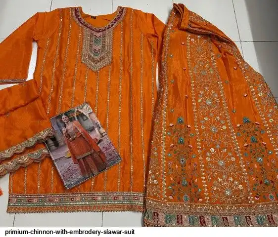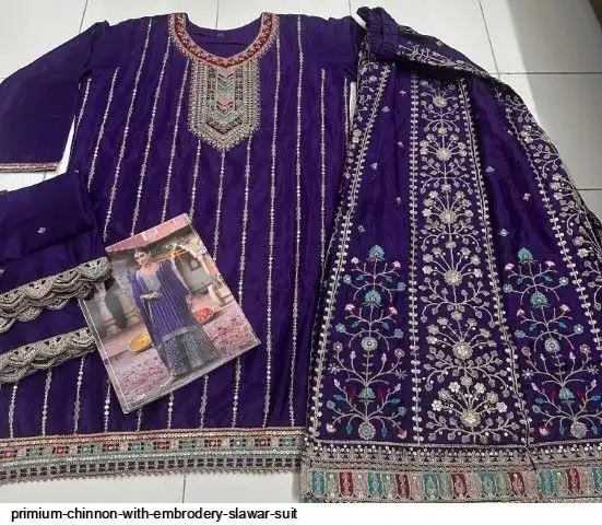 PLAZO :- Primium Chinon With Heavy Embrodery Fancy Coding Dori + 5 Multi Dhaga And siquance work Work (Front + Back Side Full Work)