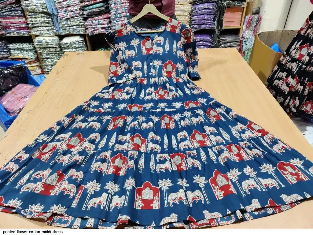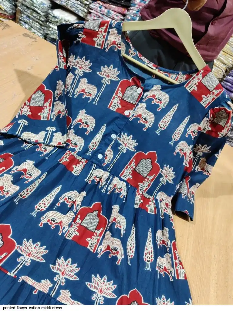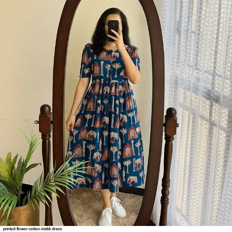 Printed flower cotton middi dress