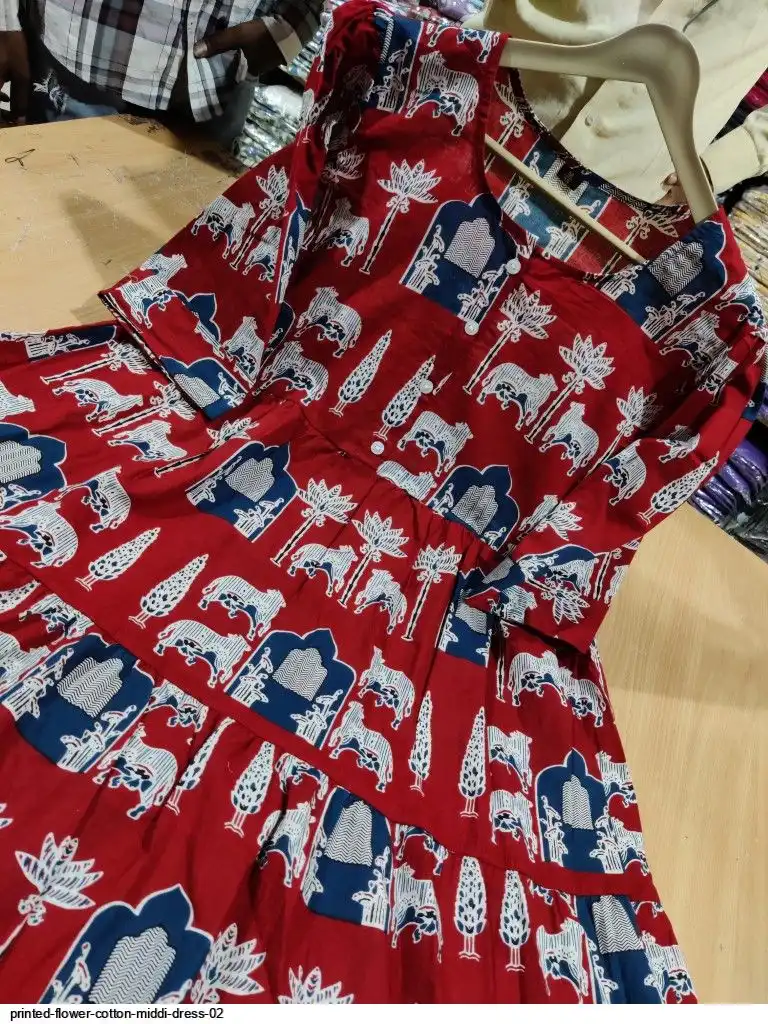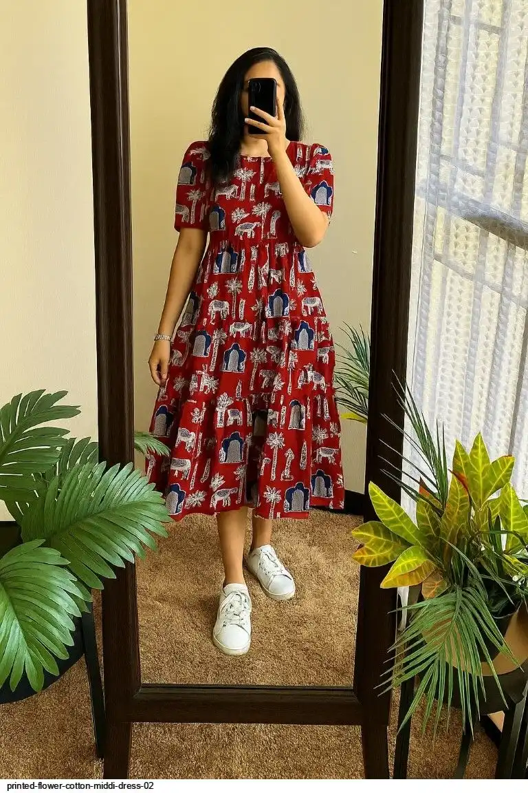 PRINTED FLOWER COTTON MIDI DRESS 02
