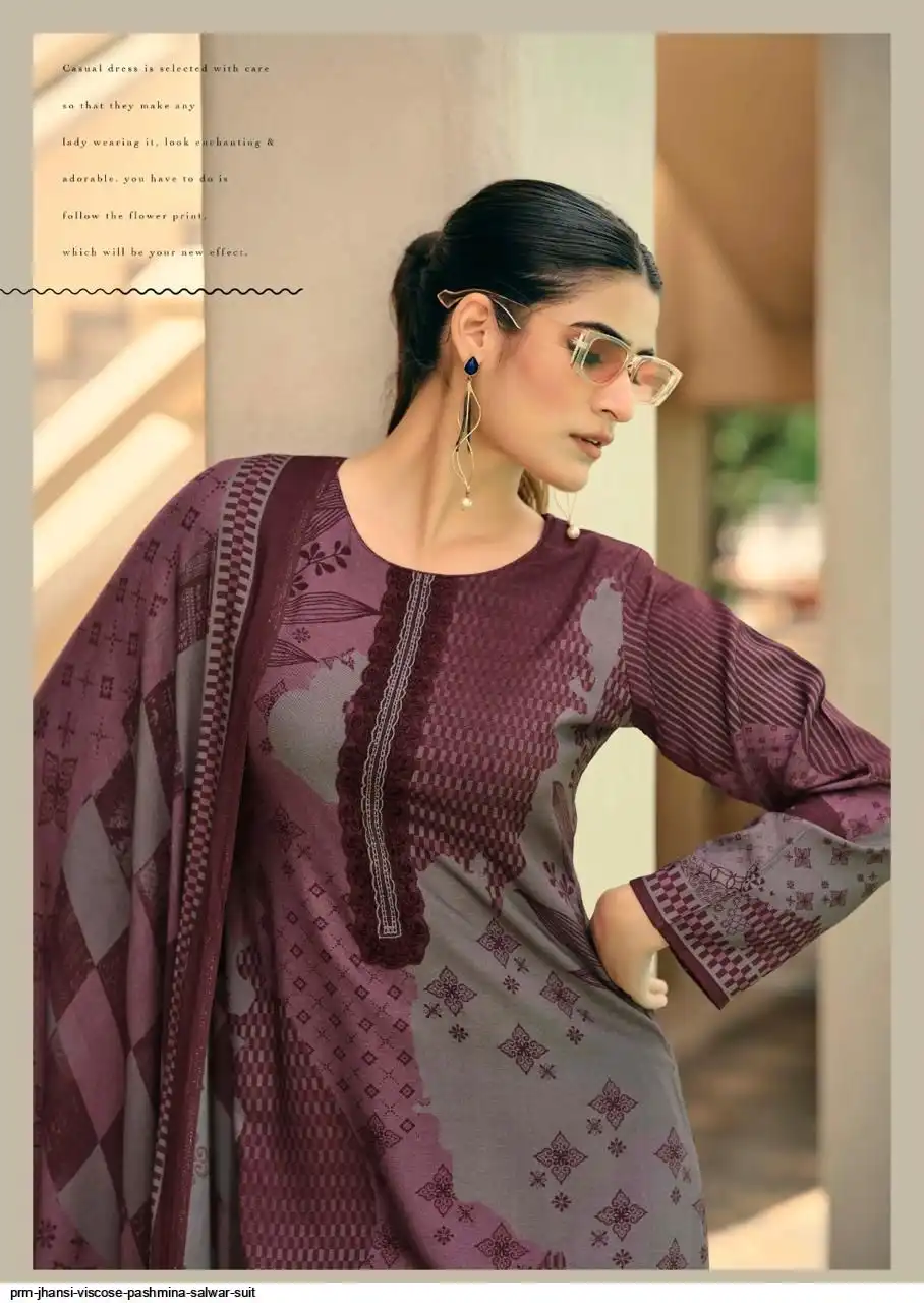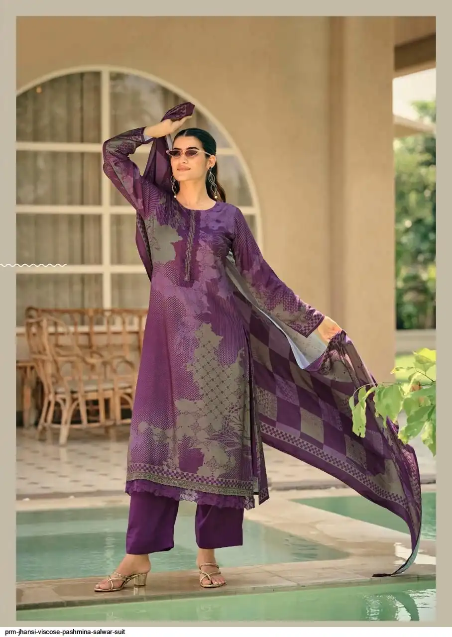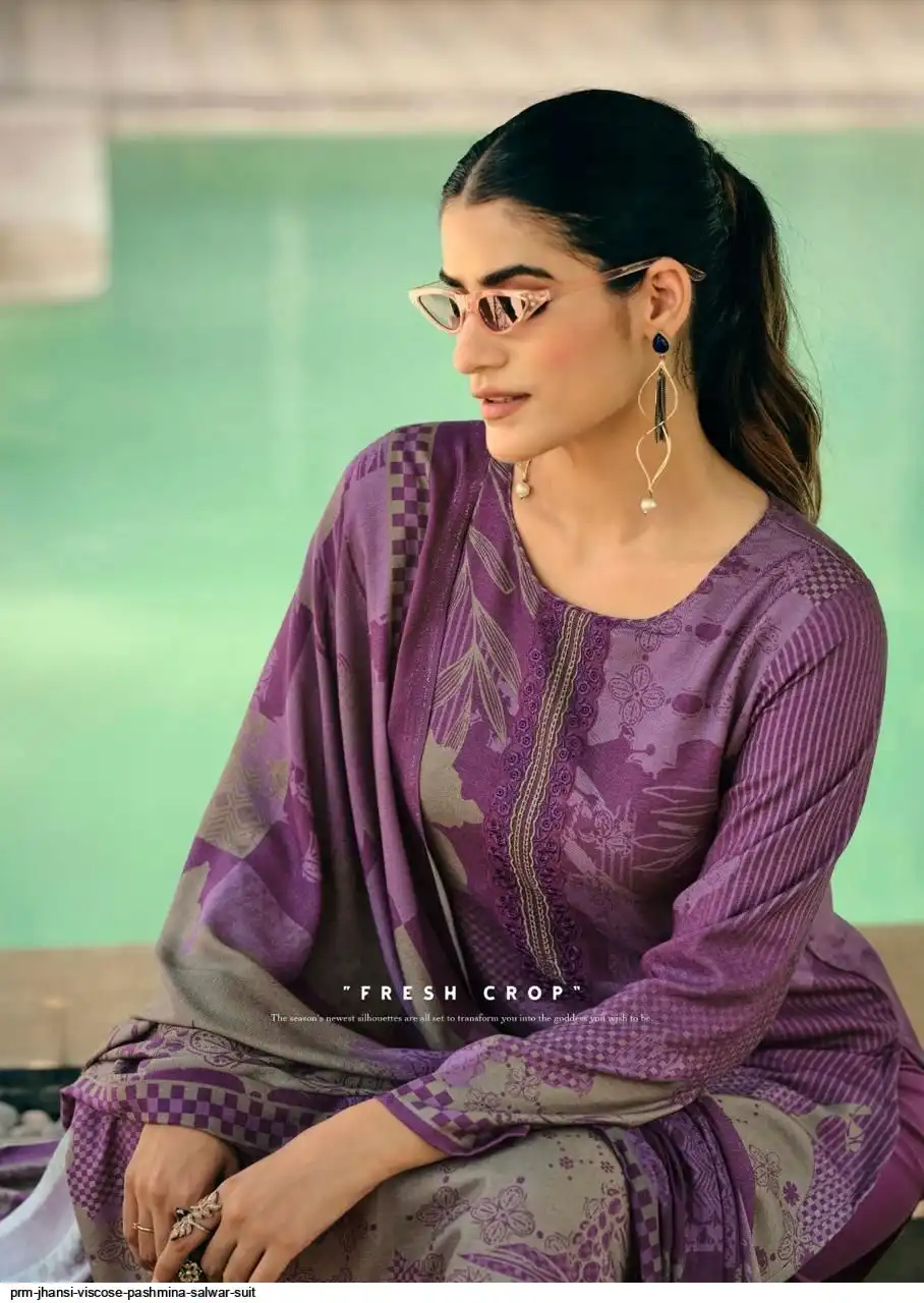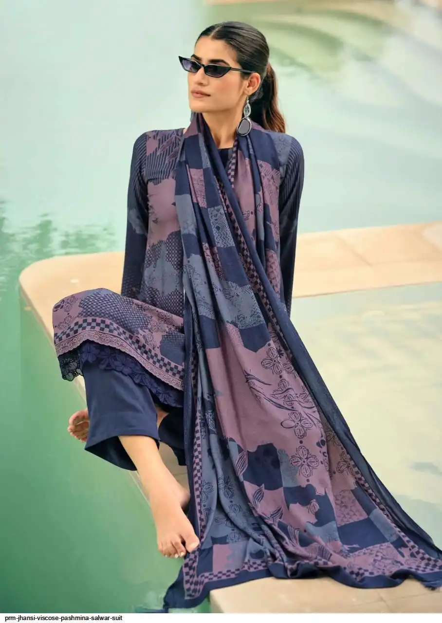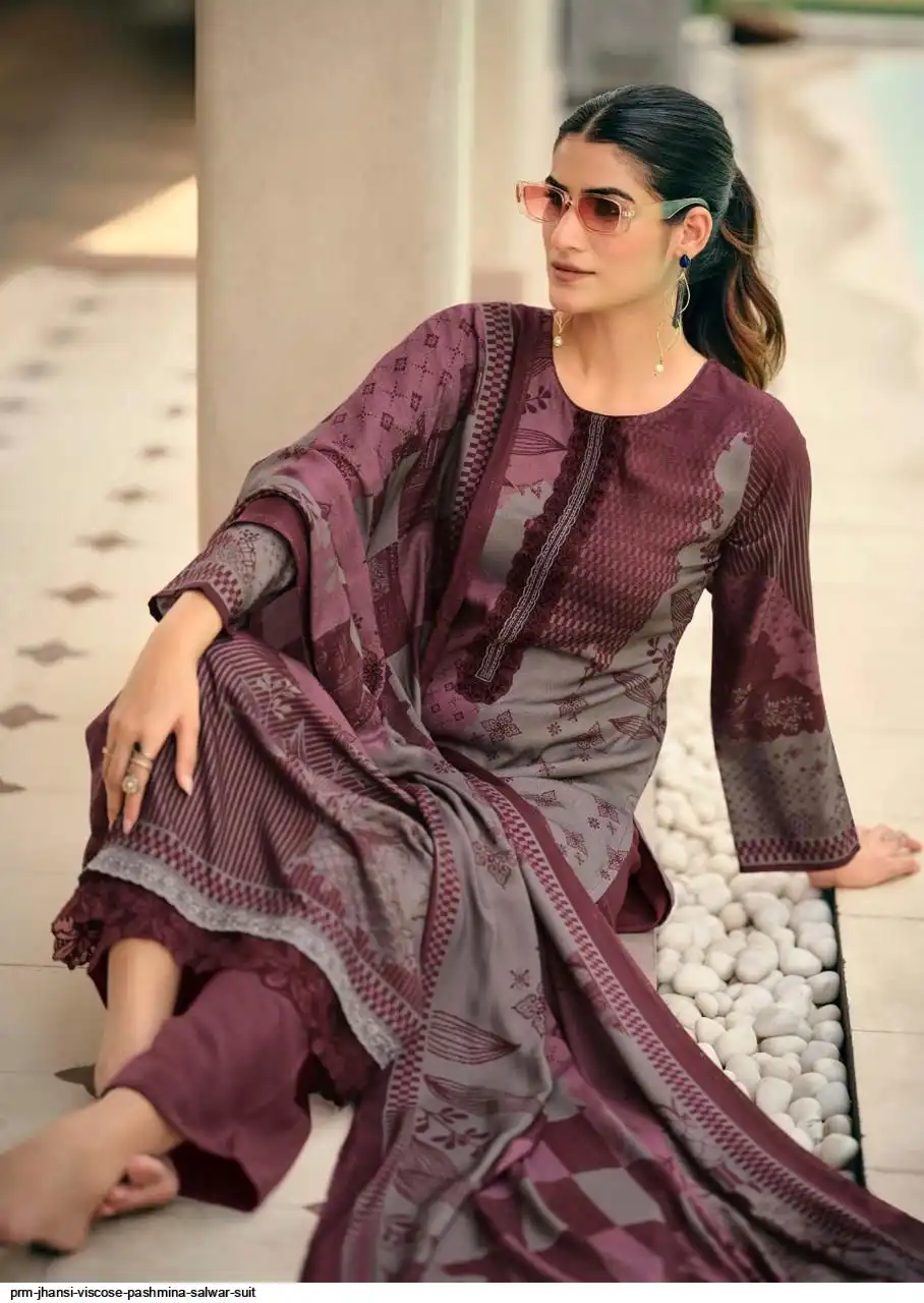 Top: viscos pashmina digital print with fency work