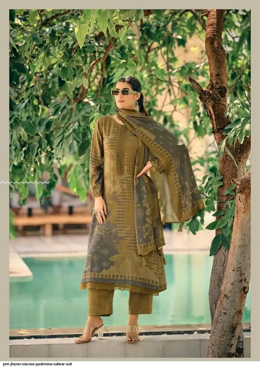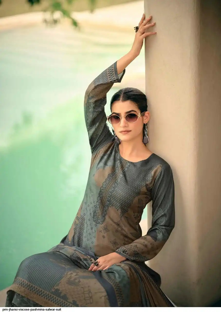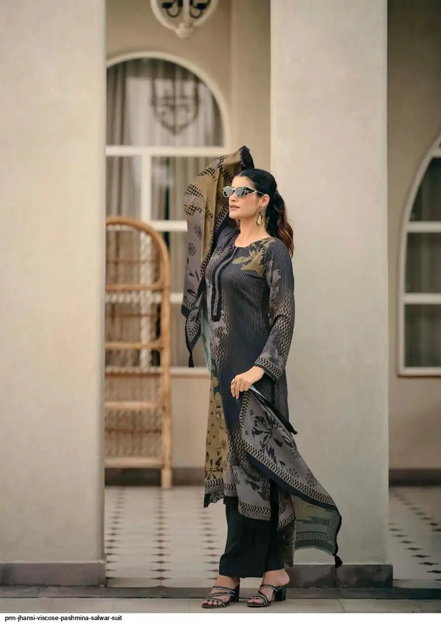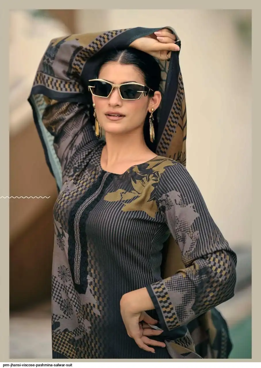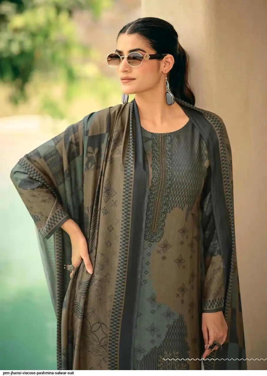 Top: viscos pashmina digital print with fency work