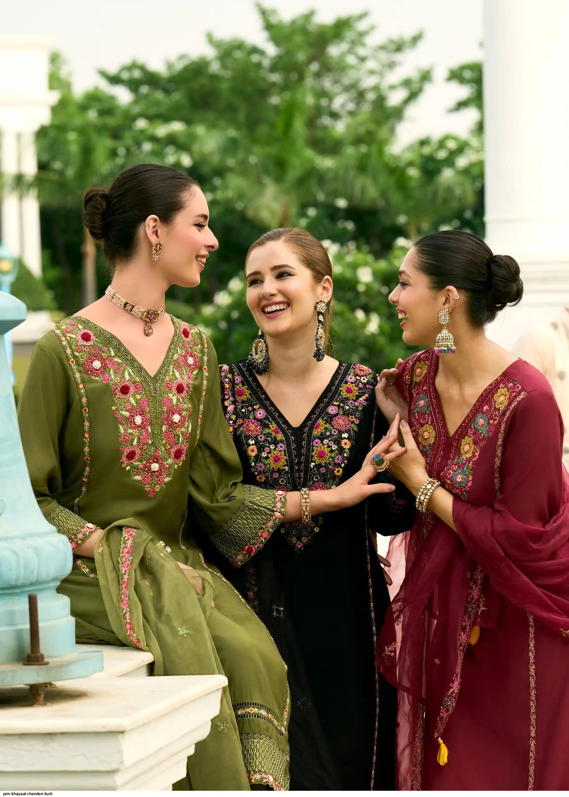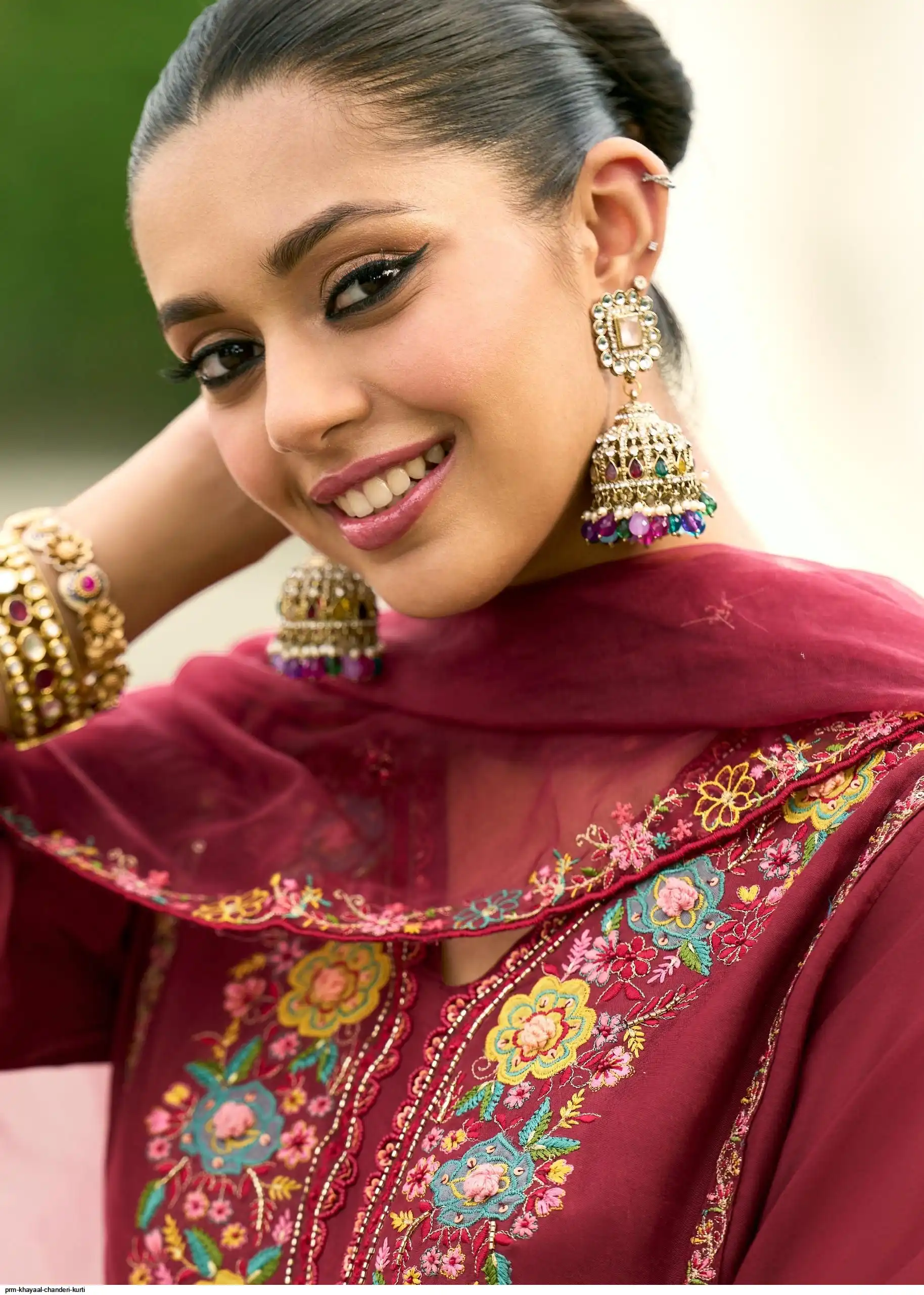 TOP - PURE MULL CHANDERI KUDTI WITH EMRODARY AND HAND WORK APPLICK