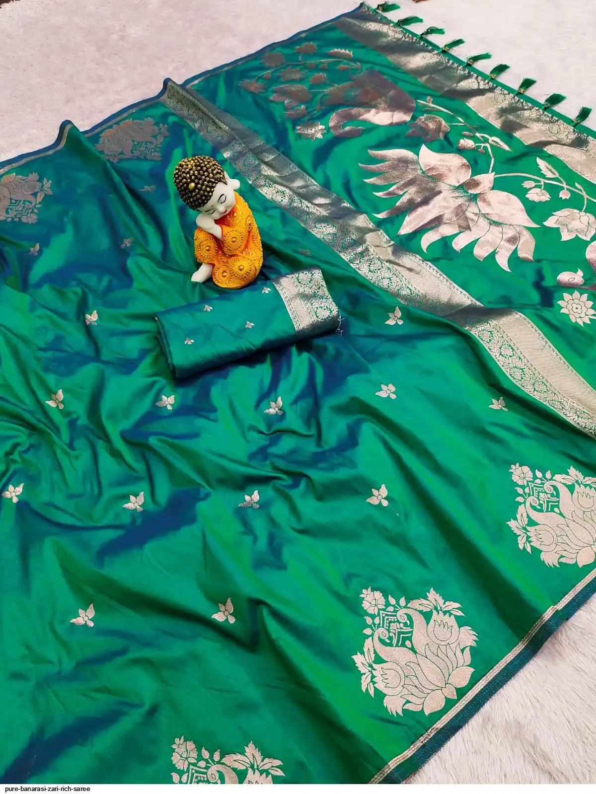 ORIJANAL PURE BANARASI ZARI AND RICH. couple swan PALLU WITH ALL OVER MINA WORK DIJAIN AND HEAVY BODER
