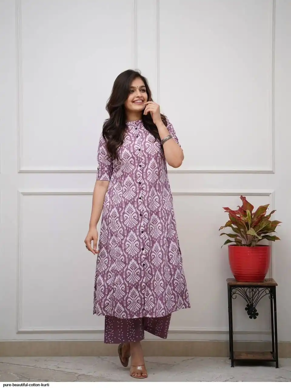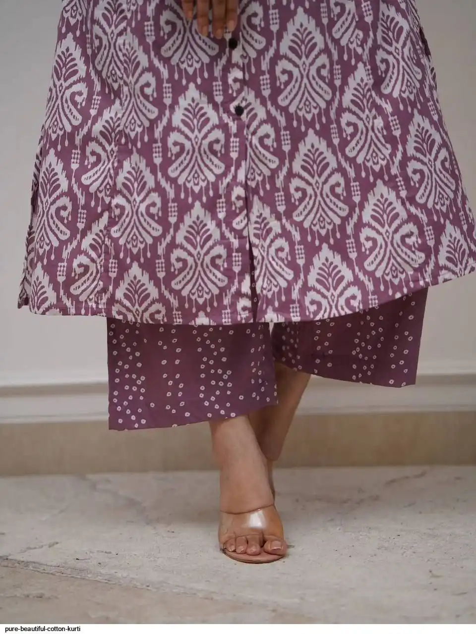 Featuring beautiful heavy printed plazo set with beautiful print with kurta wooden button with *plazo side pocket*