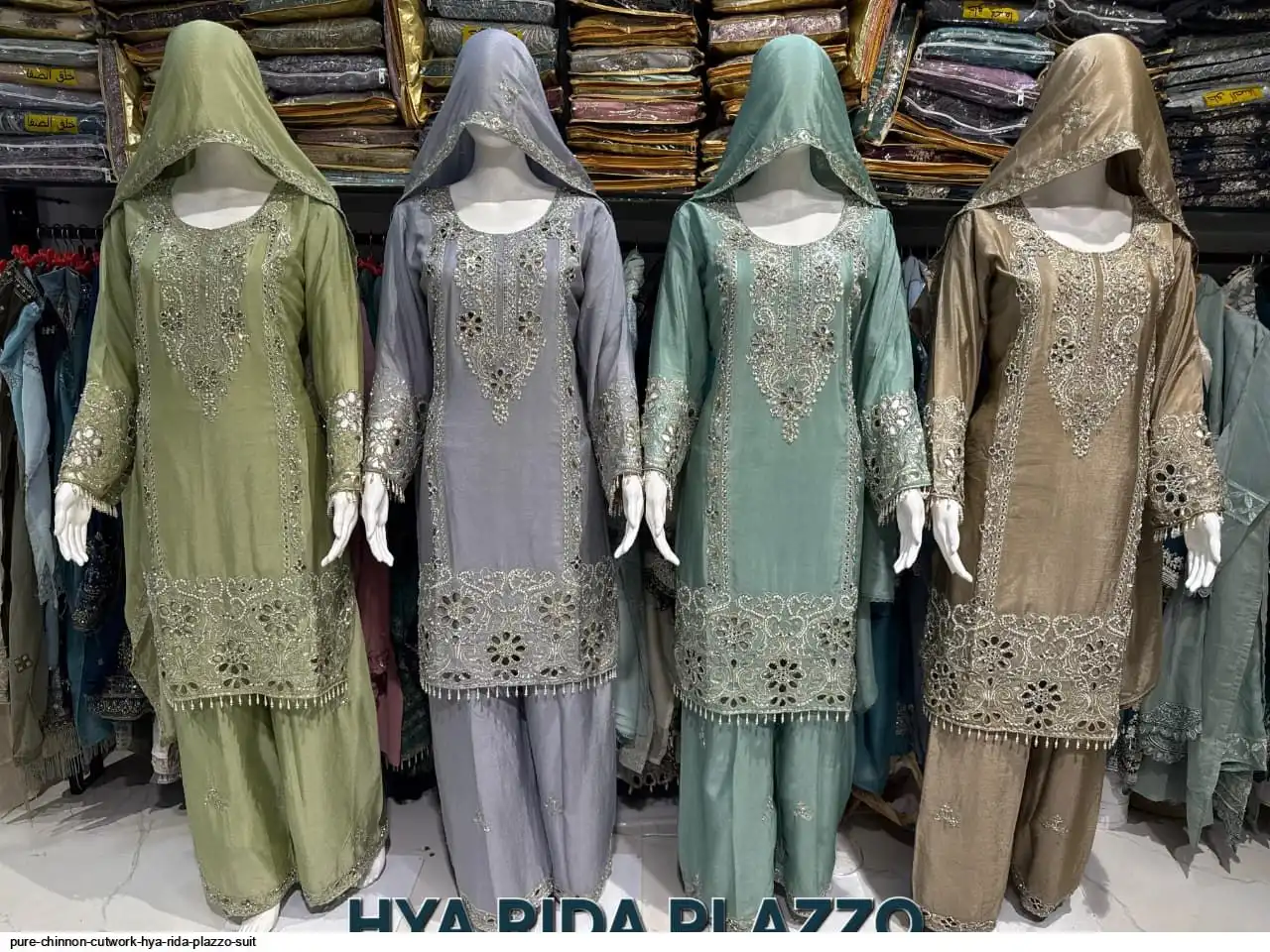 PLAZZO :- PREMIUM AIRTEX PURE CHINON WITH EMBROIDERY & ZARKHAN DIAMOND