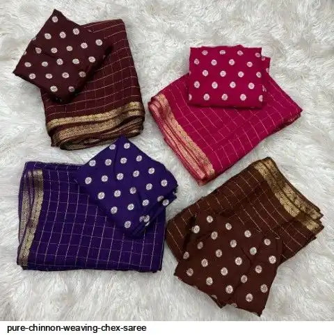 Pure Chinnon with weaving Chex with jacquard border with pure viscose matching blouse