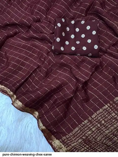 Pure Chinnon with weaving Chex with jacquard border with pure viscose matching blouse
