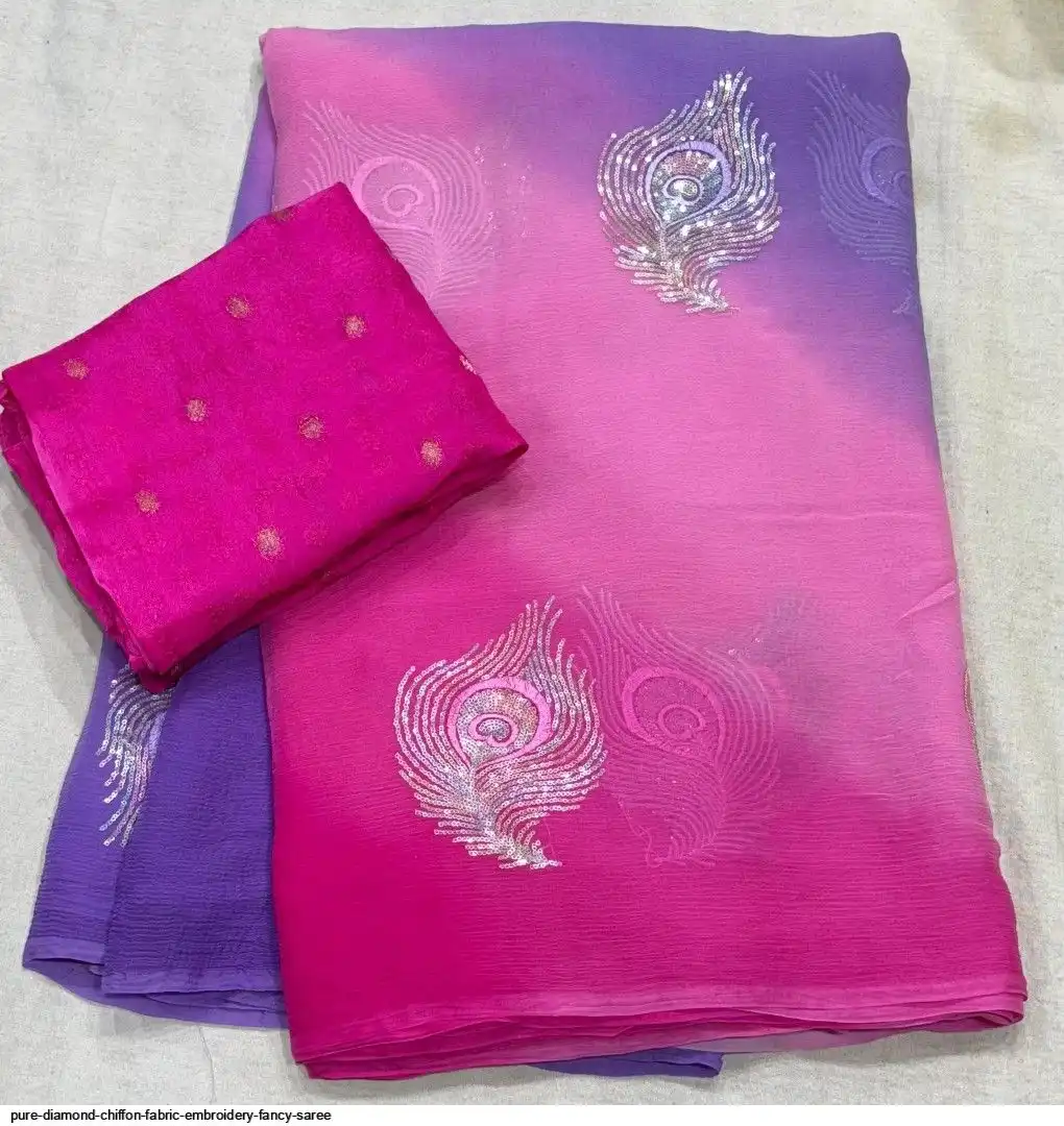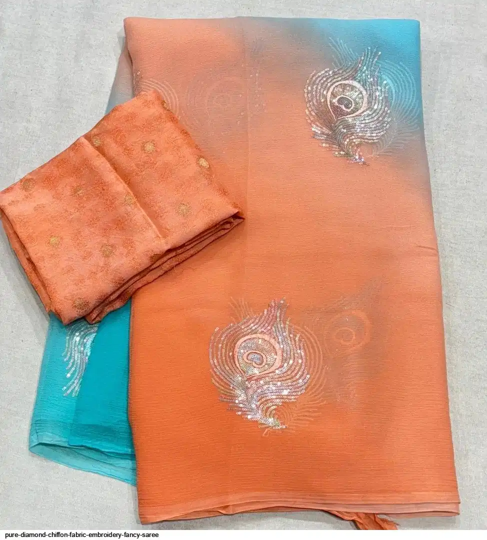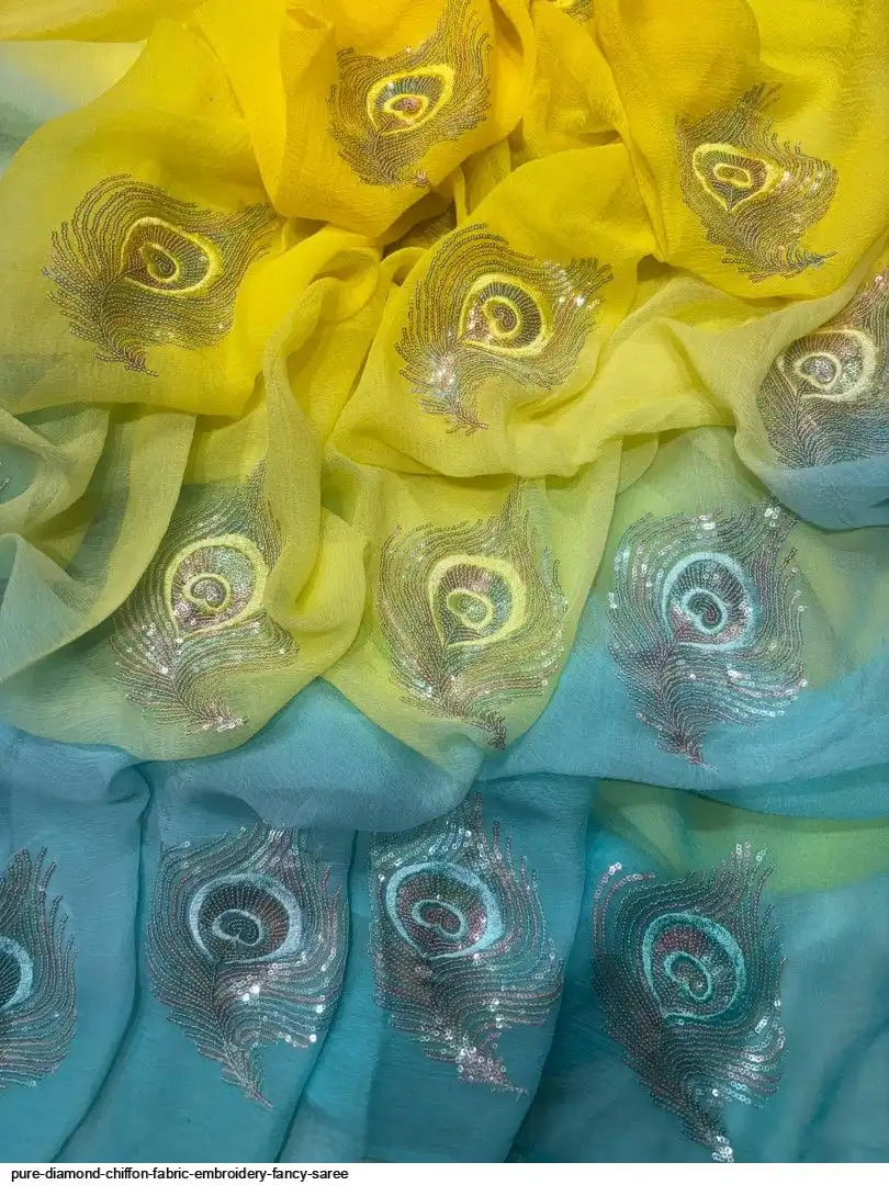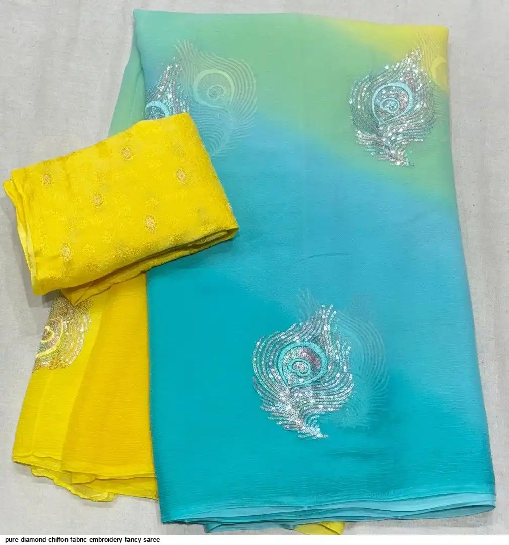 Pure diamond chiffon fabric with beautiful multi daing with Embroidery shikvensh teaching work full saree butti fancy jari all colour new work Quality super