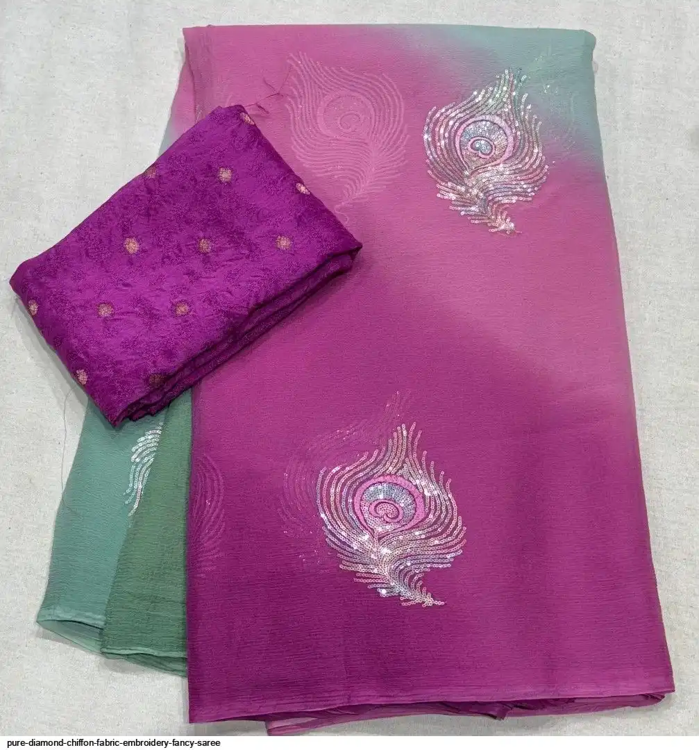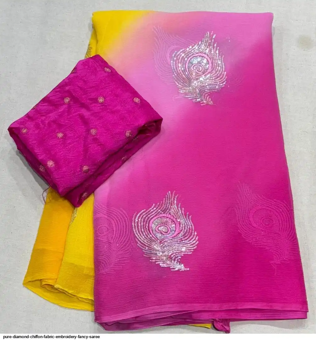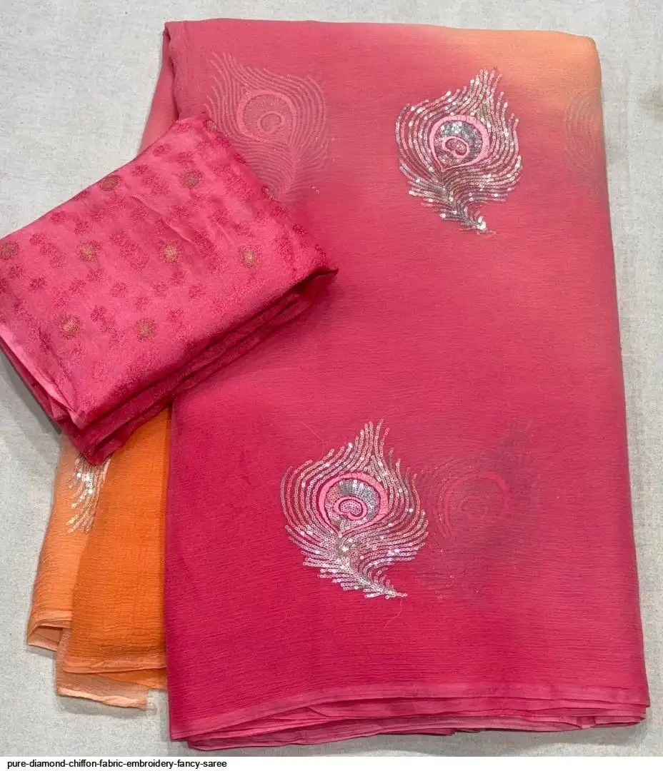 Pure diamond chiffon fabric with beautiful multi daing with Embroidery shikvensh teaching work full saree butti fancy jari all colour new work Quality super
