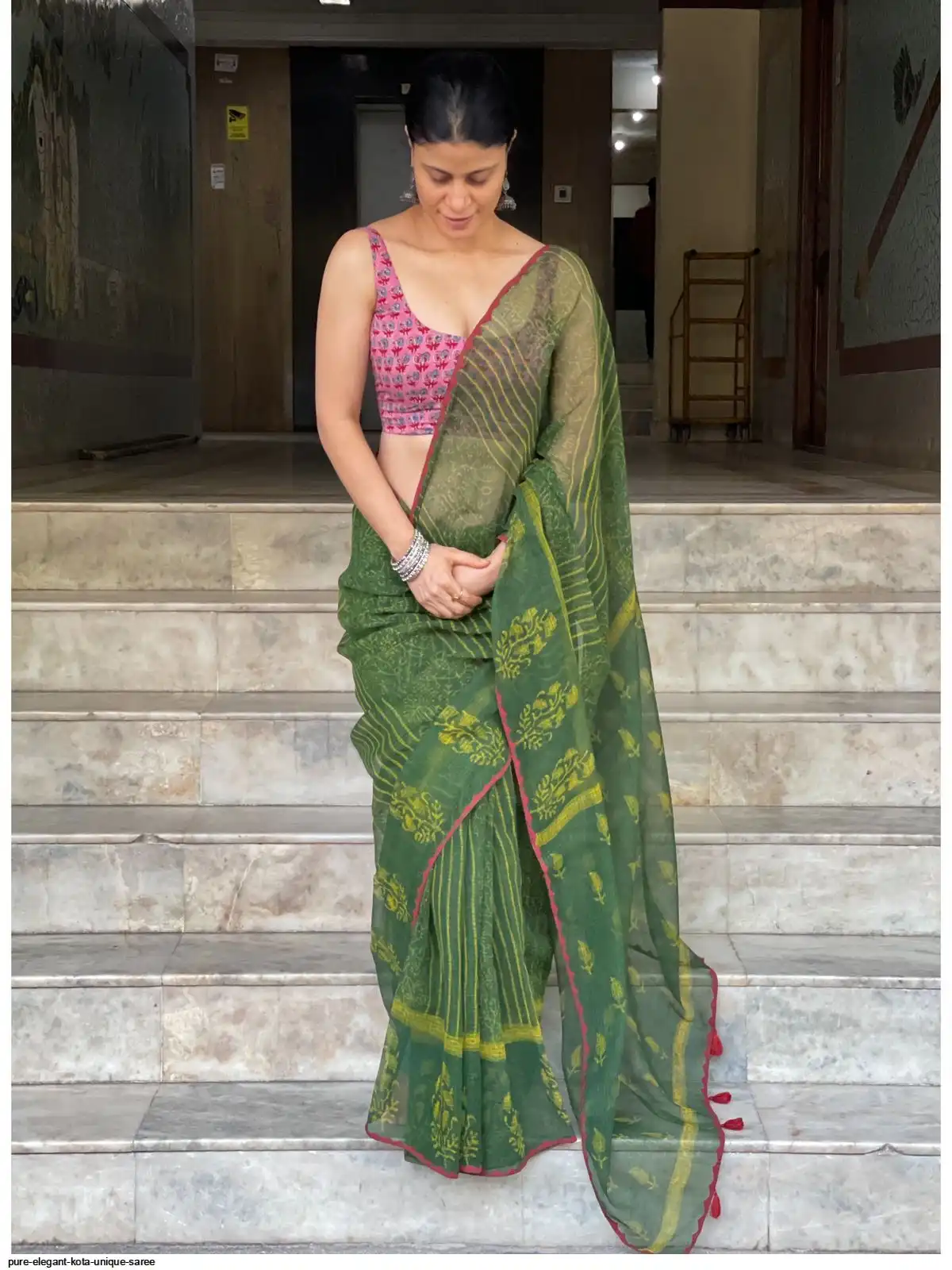 Fabric:- Kota Doriya With Digital Print Work And Running Designing Blouse