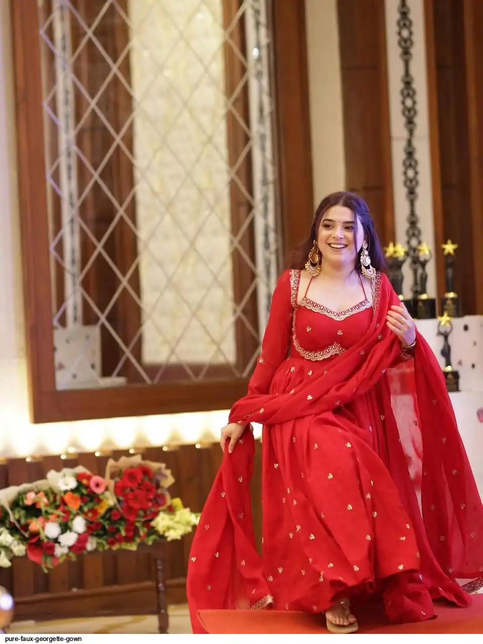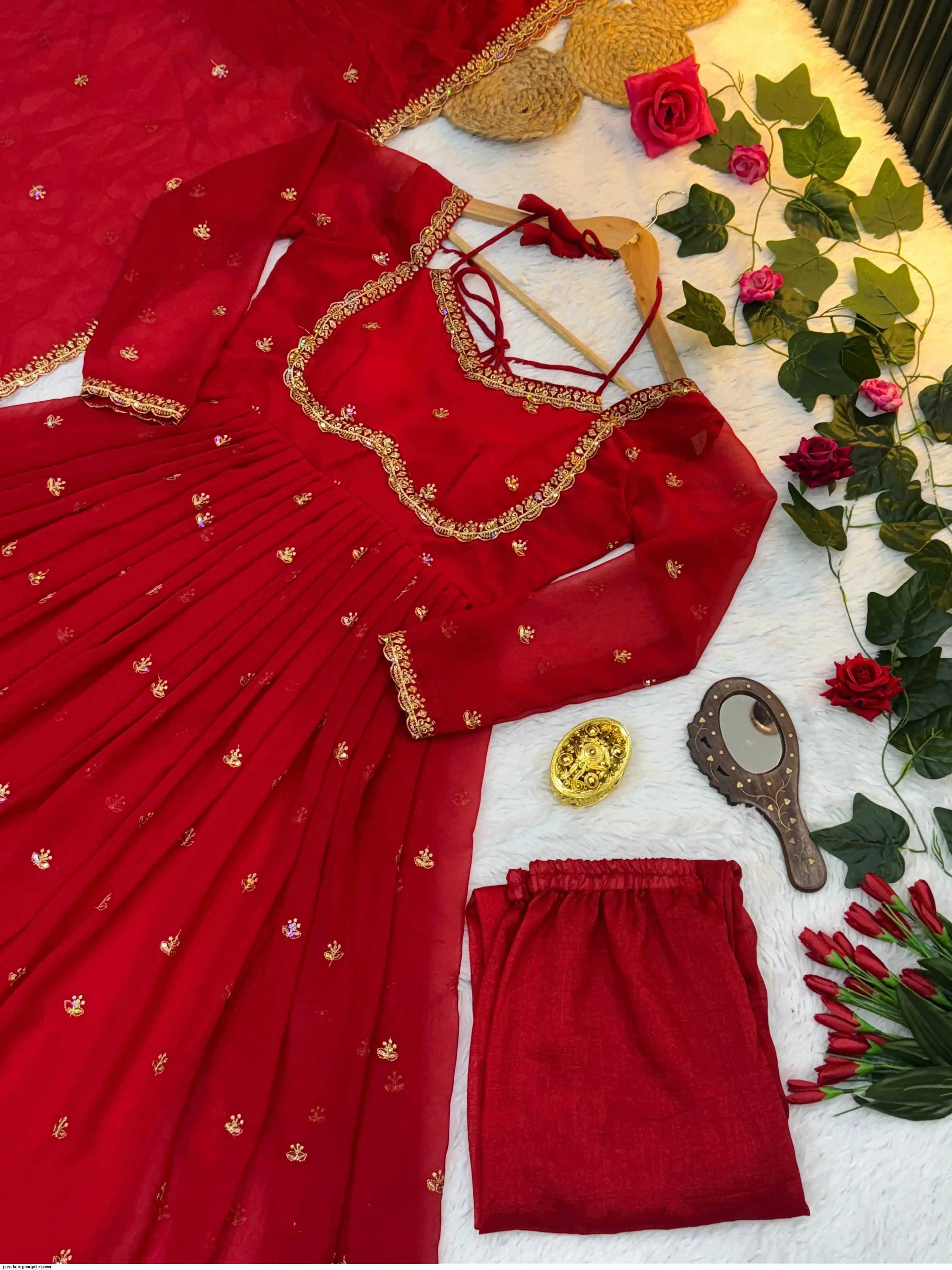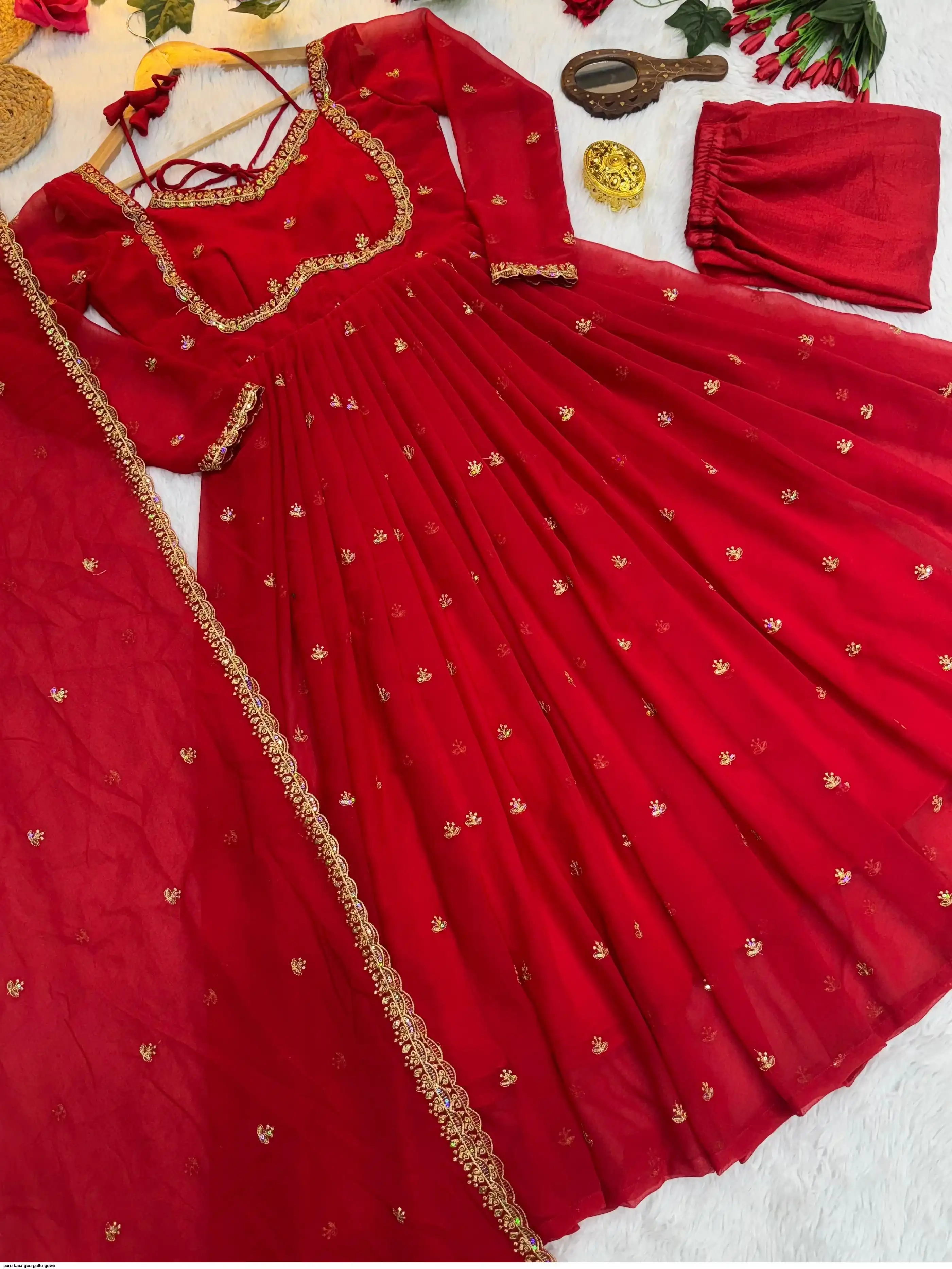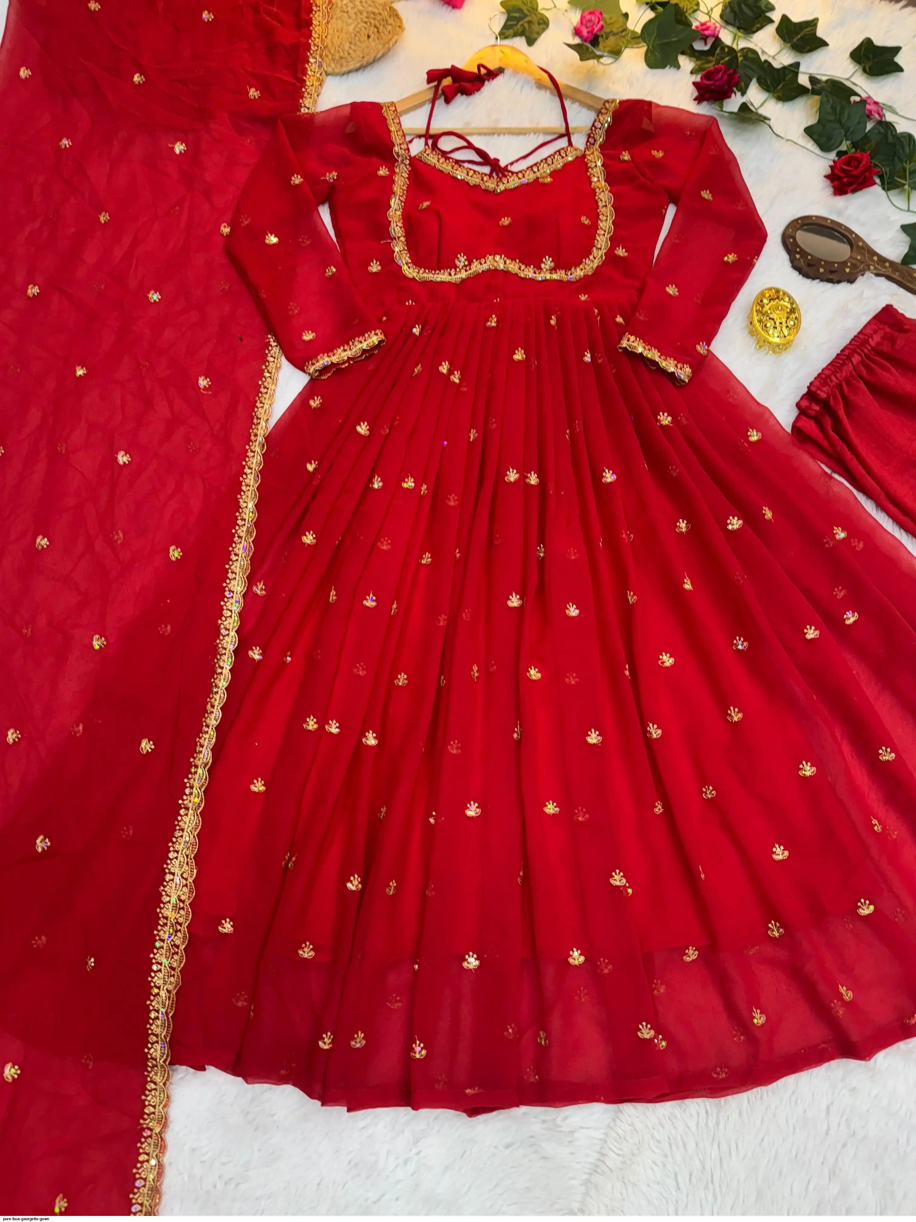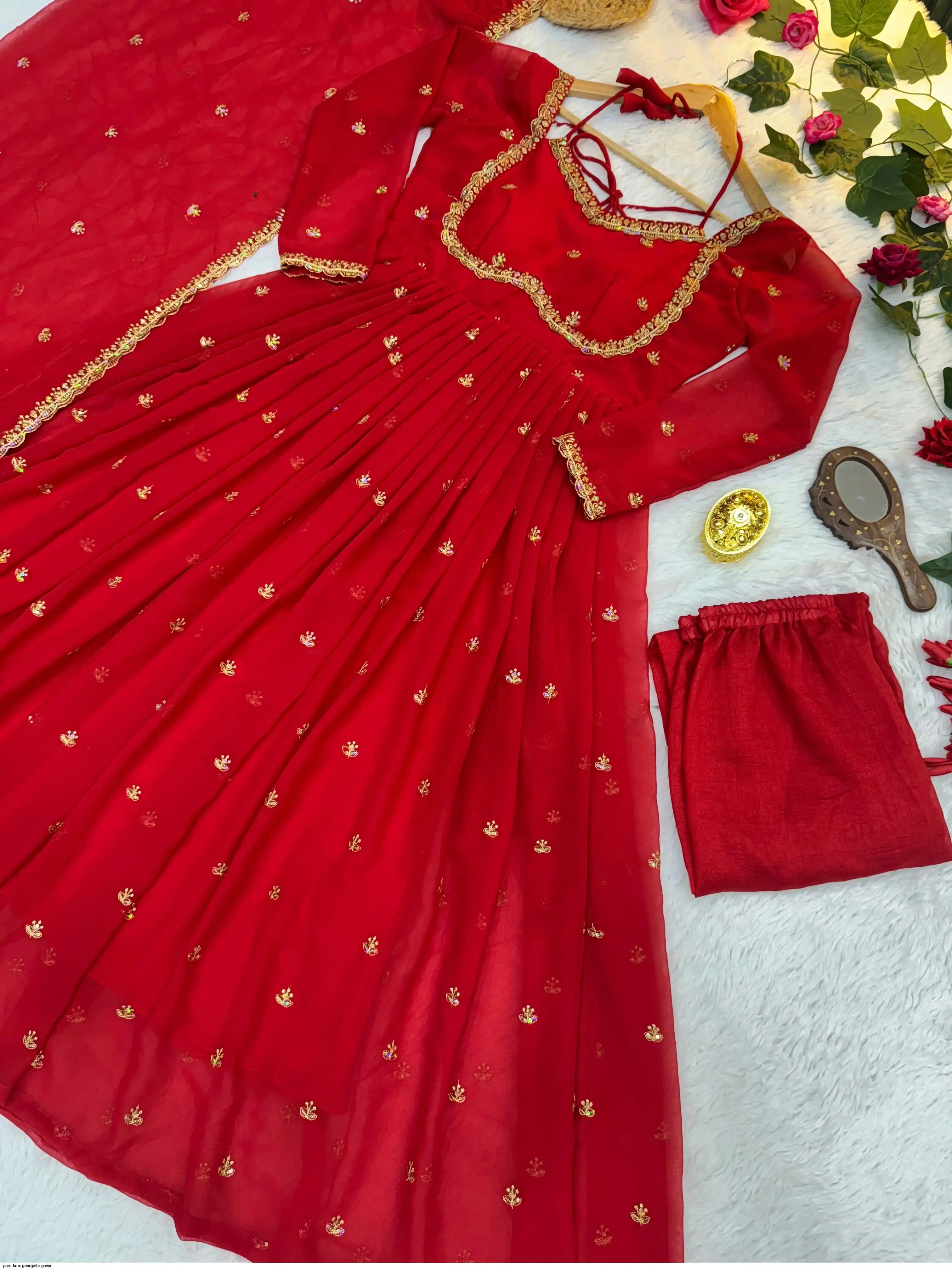 Presenting New Ready-made Collection with Faux georgette with Heavy Embroidery work Top-bottom with Dupatta Fully stitched Collection
