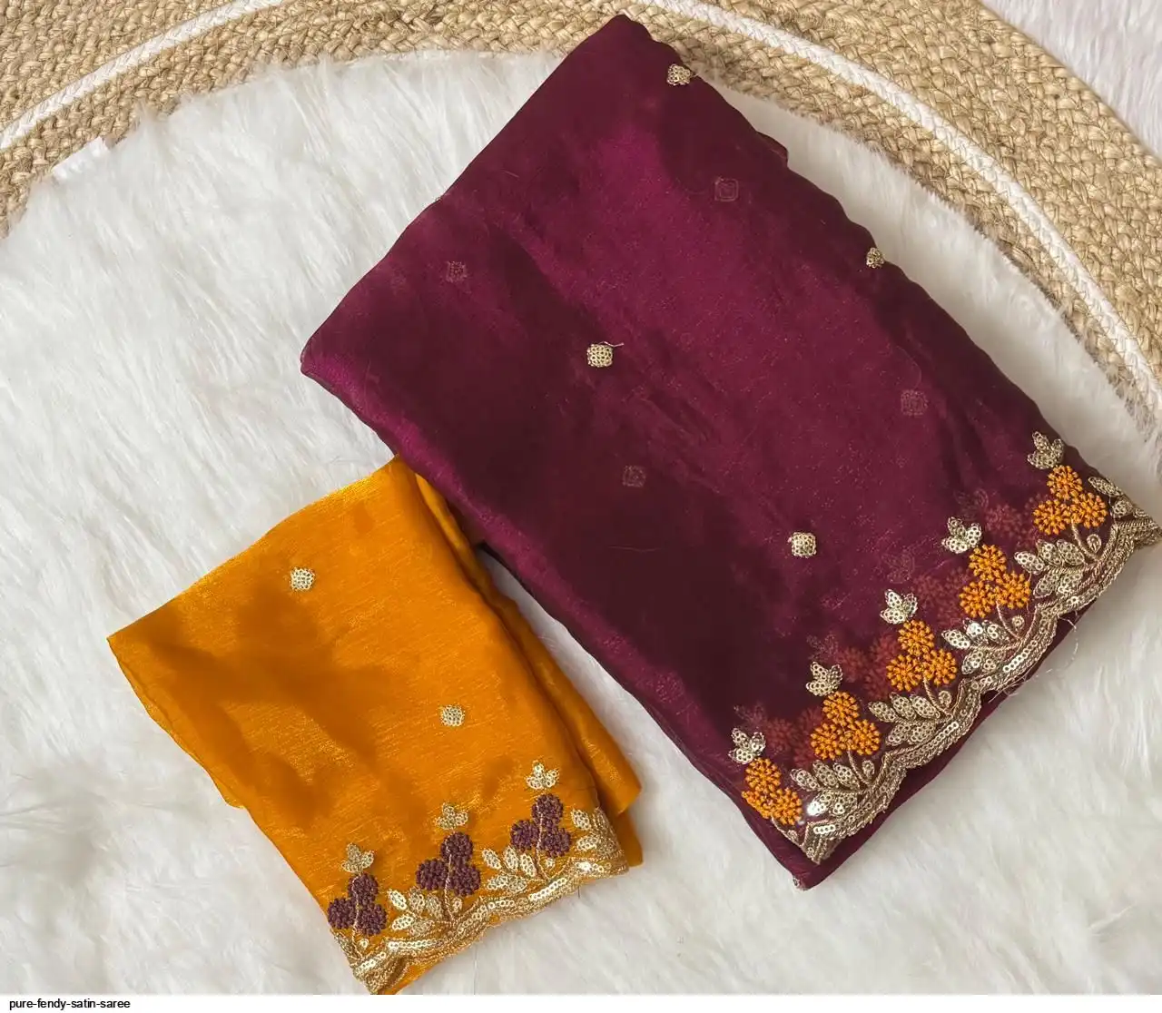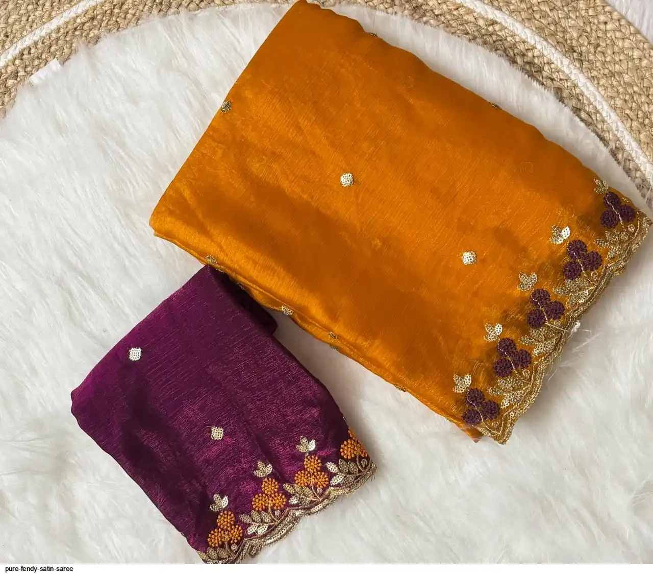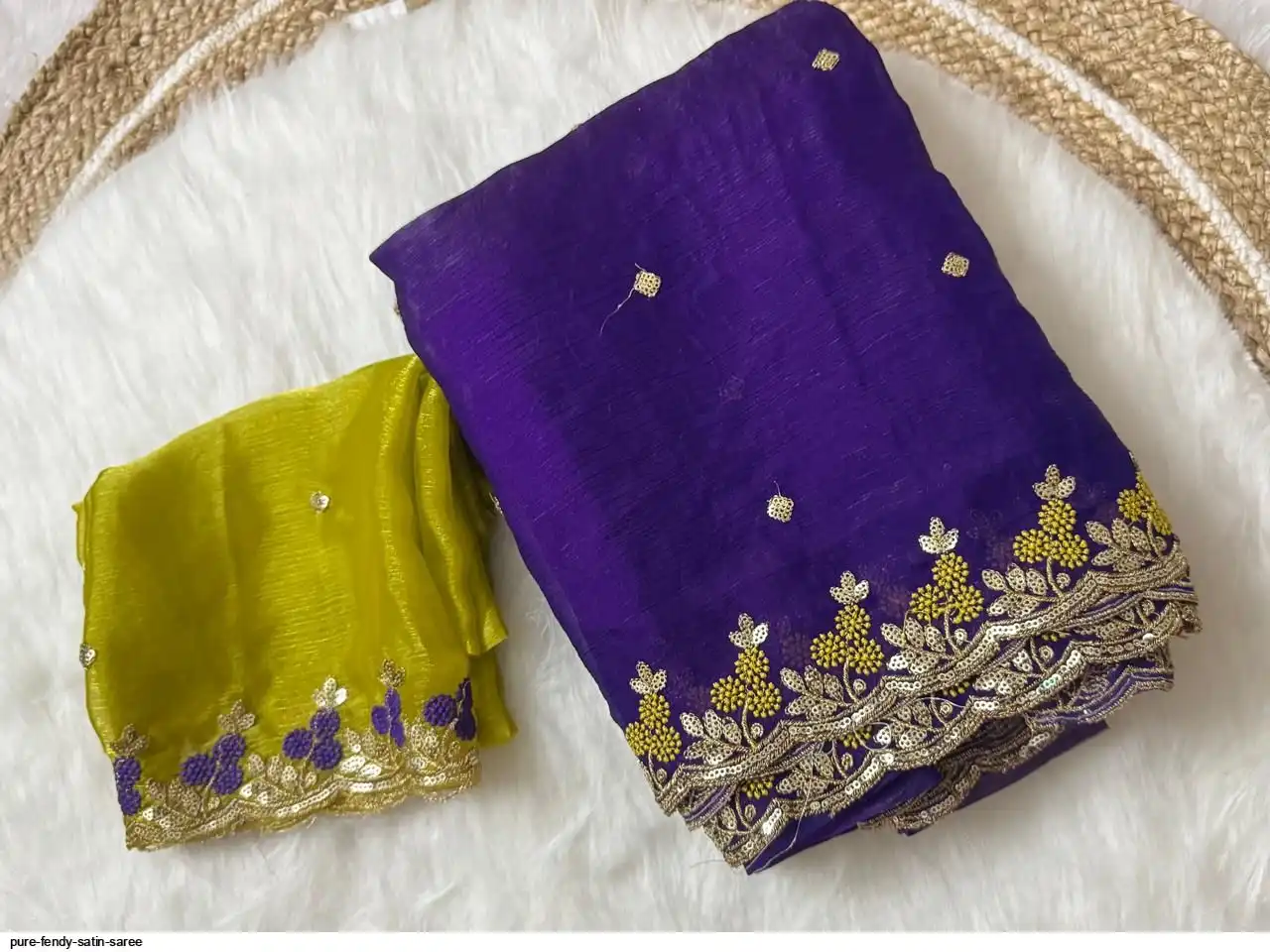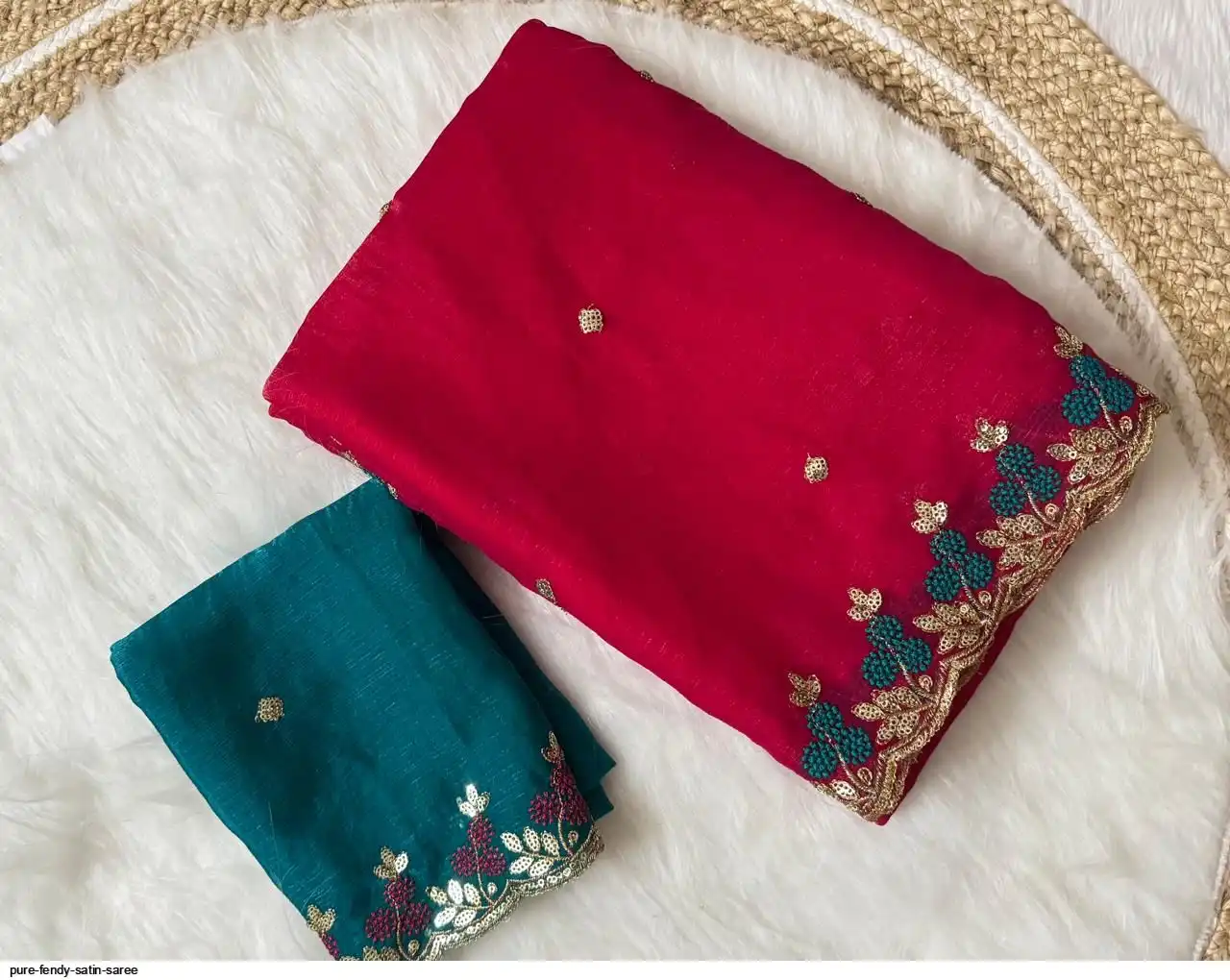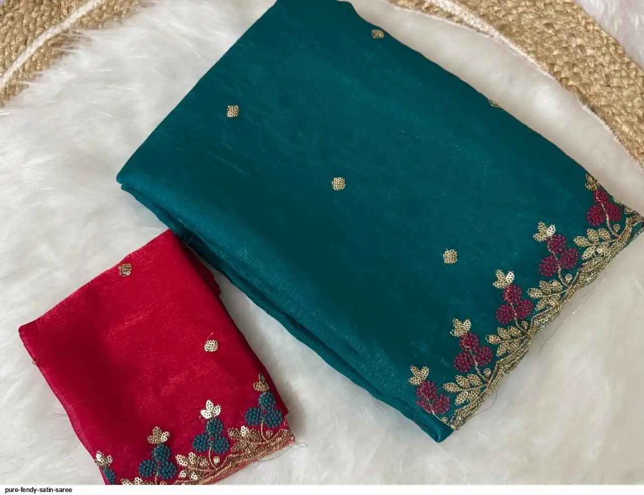 PURE FENDY SATIN SAREE WITH EMBROIDERY BLOUSE PIECE WITH BEADS N EMBROIDERED WORK