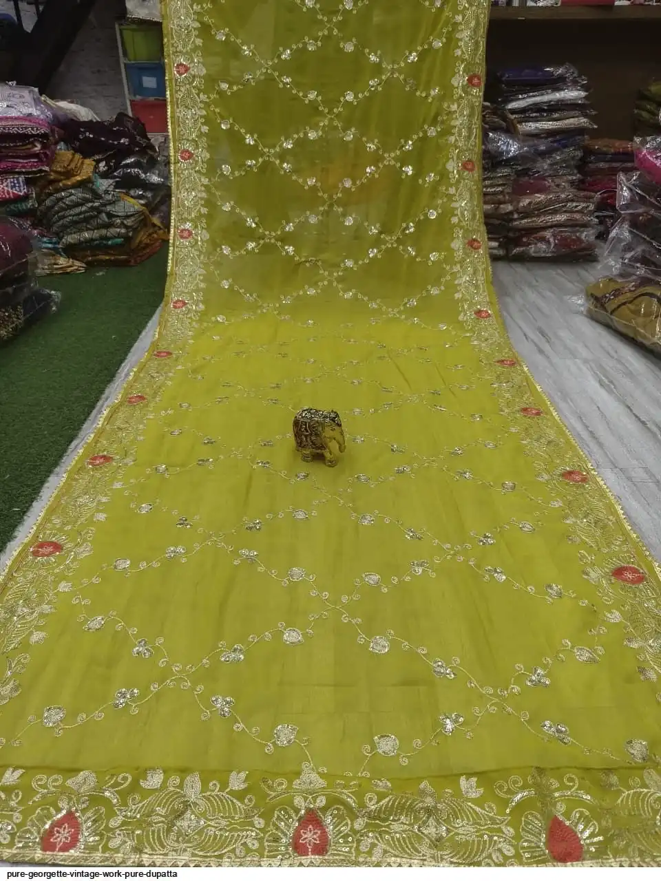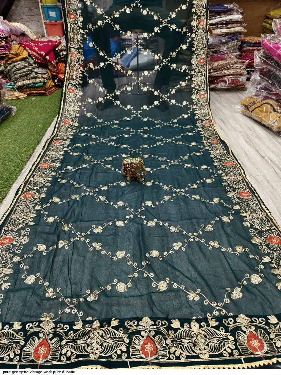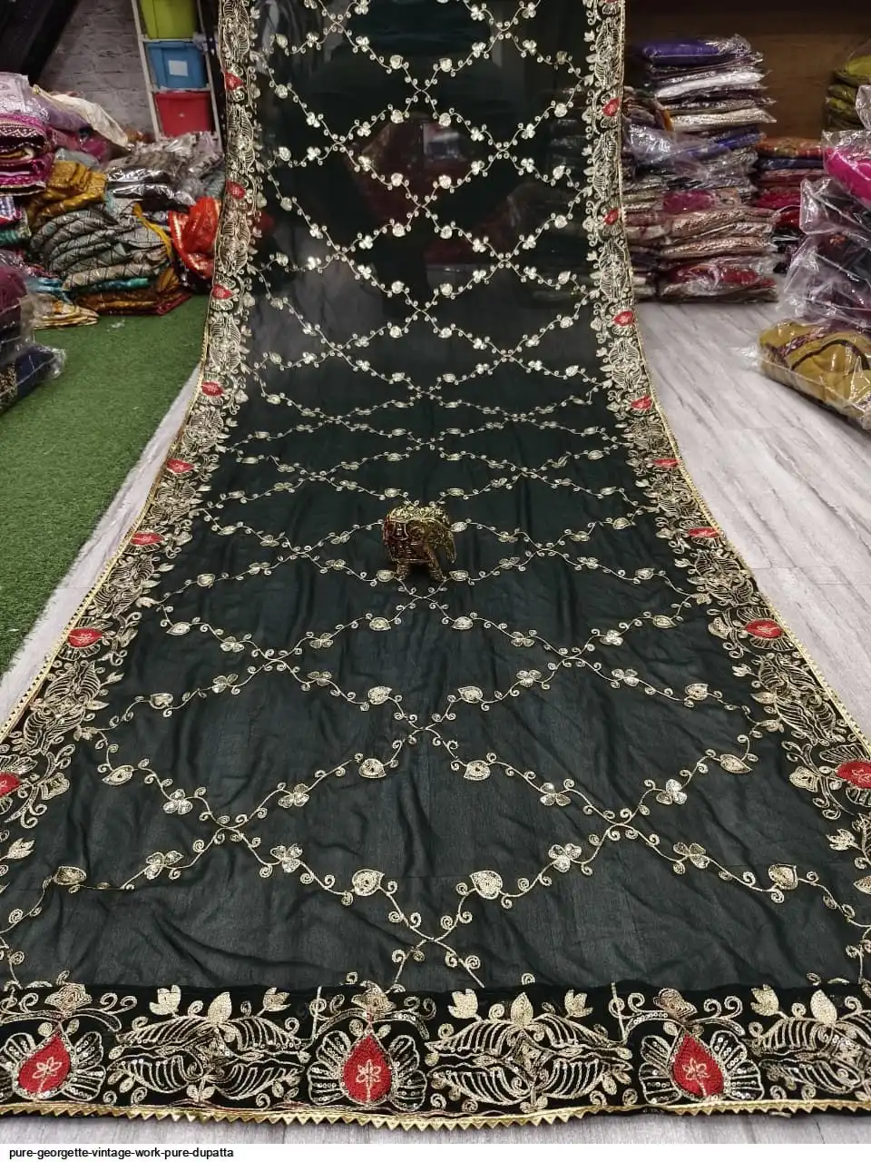 Pure georgette vintage work duptta 2.4 MTR of length Heavy vintage sequence work