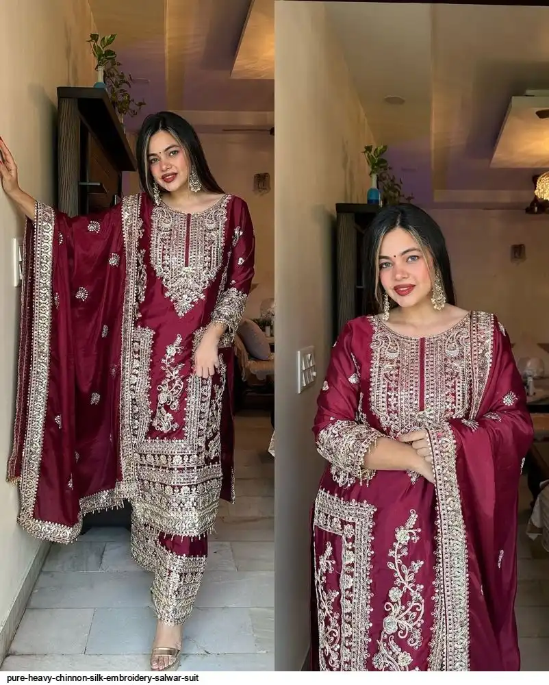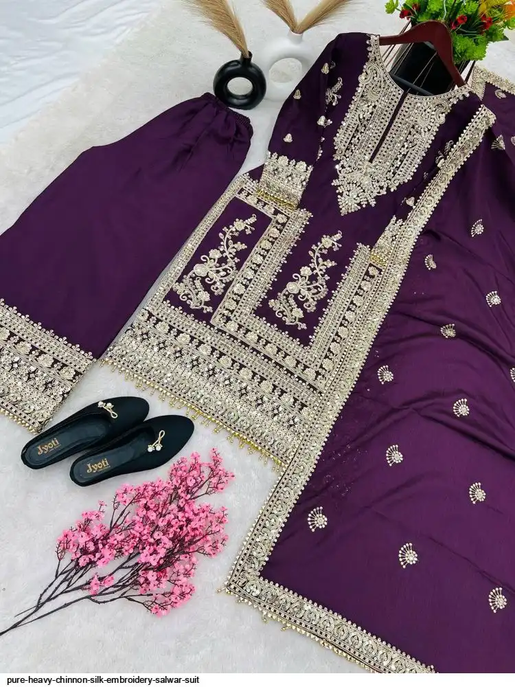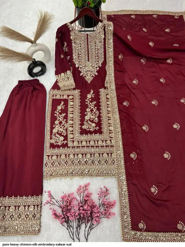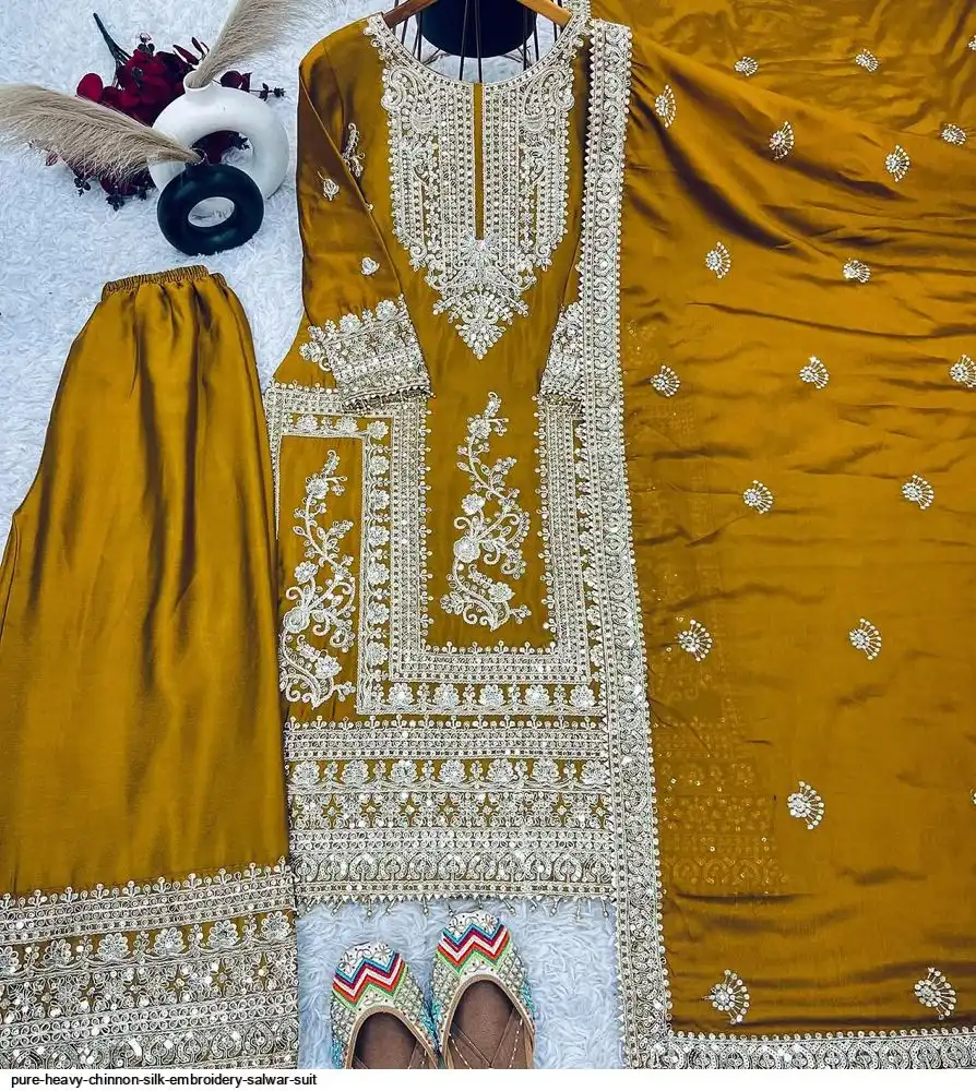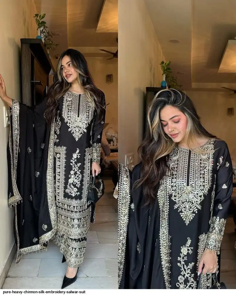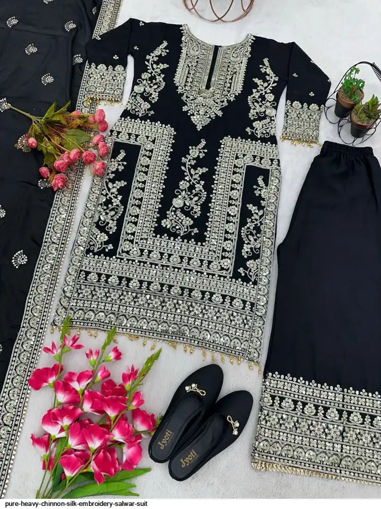 *Bottom Fabrics* :Pure Heavy Chinnon Silk With Heavy Embroidery Coding Sequence Work