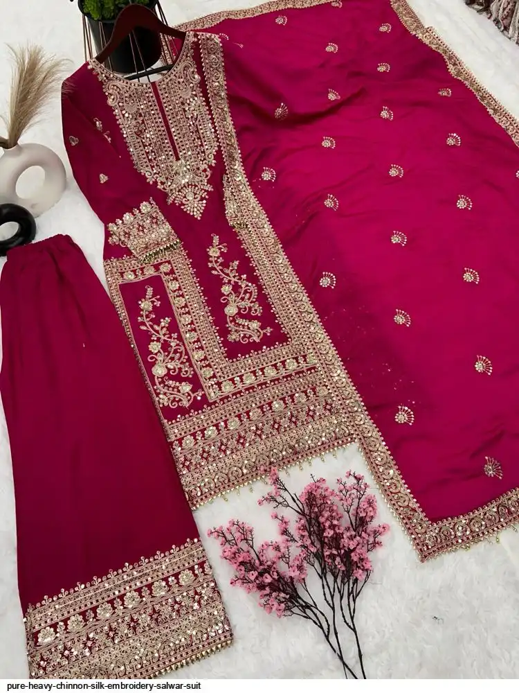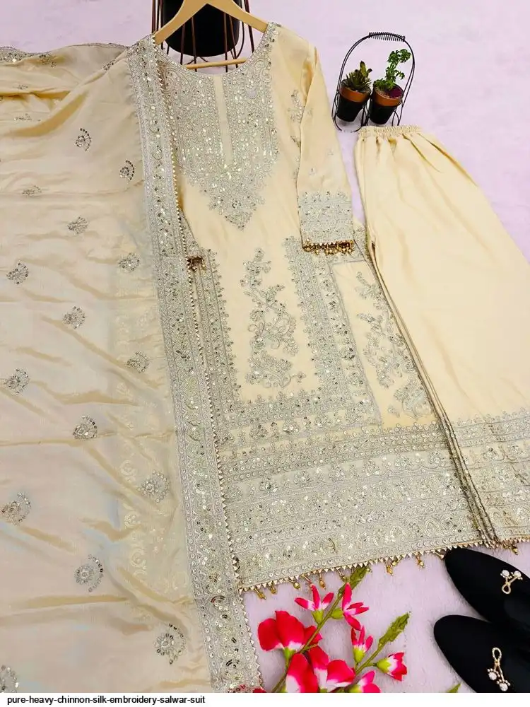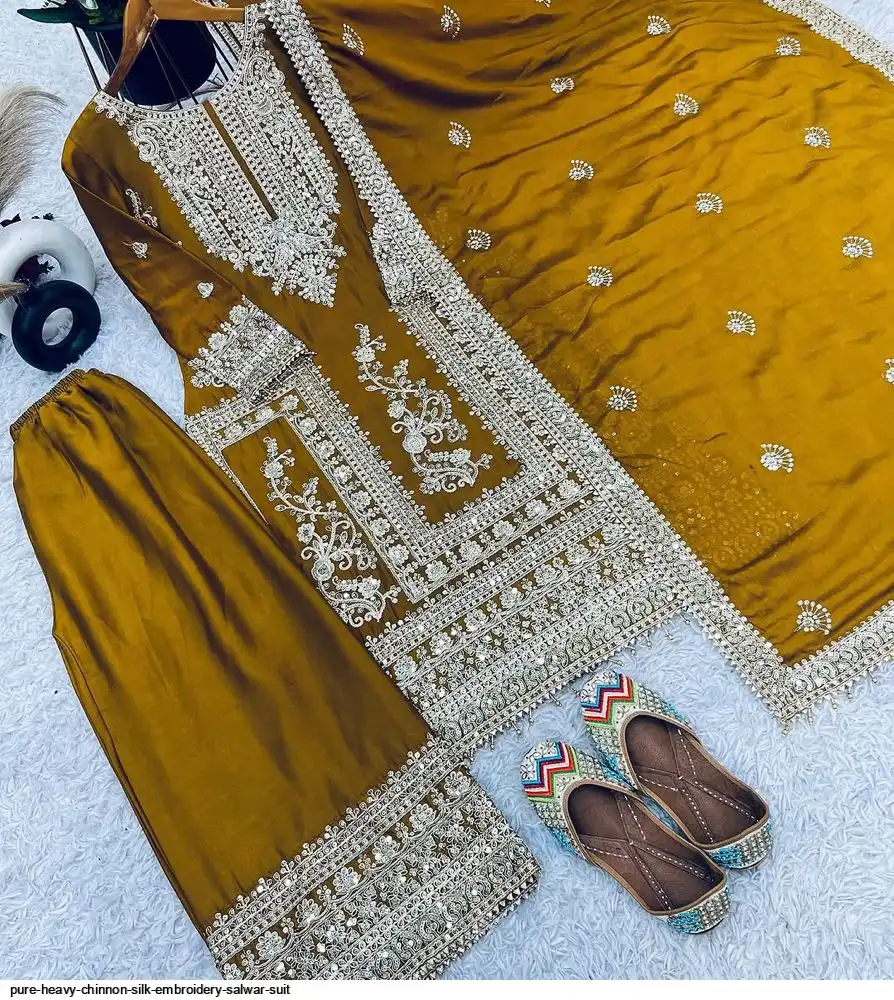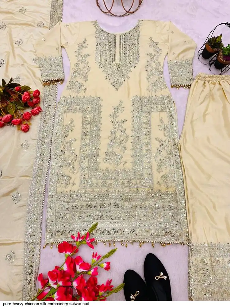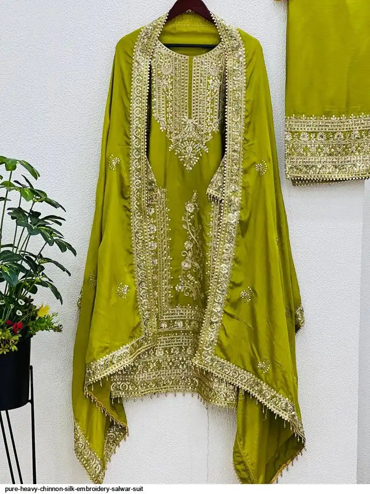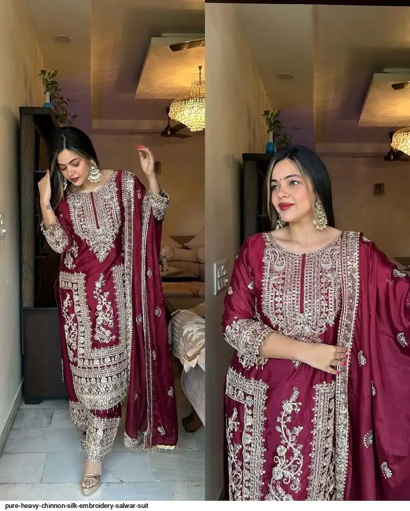 *Bottom Fabrics* :Pure Heavy Chinnon Silk With Heavy Embroidery Coding Sequence Work