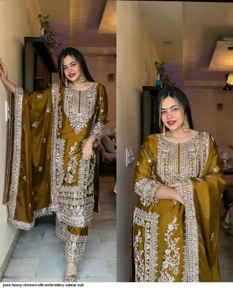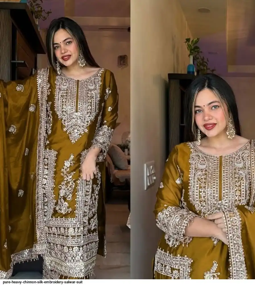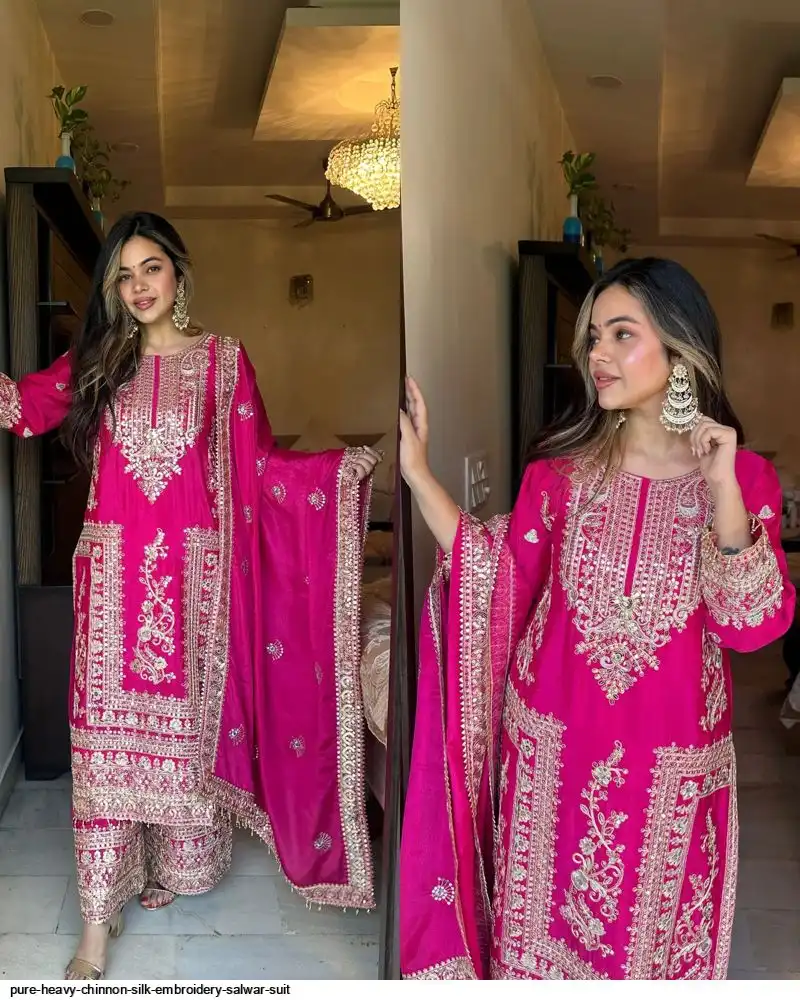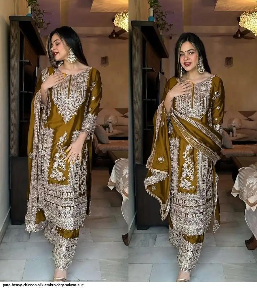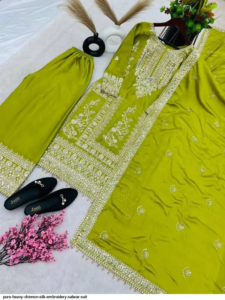 *Bottom Fabrics* :Pure Heavy Chinnon Silk With Heavy Embroidery Coding Sequence Work