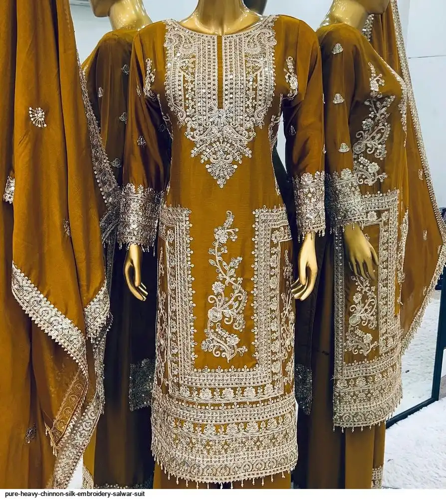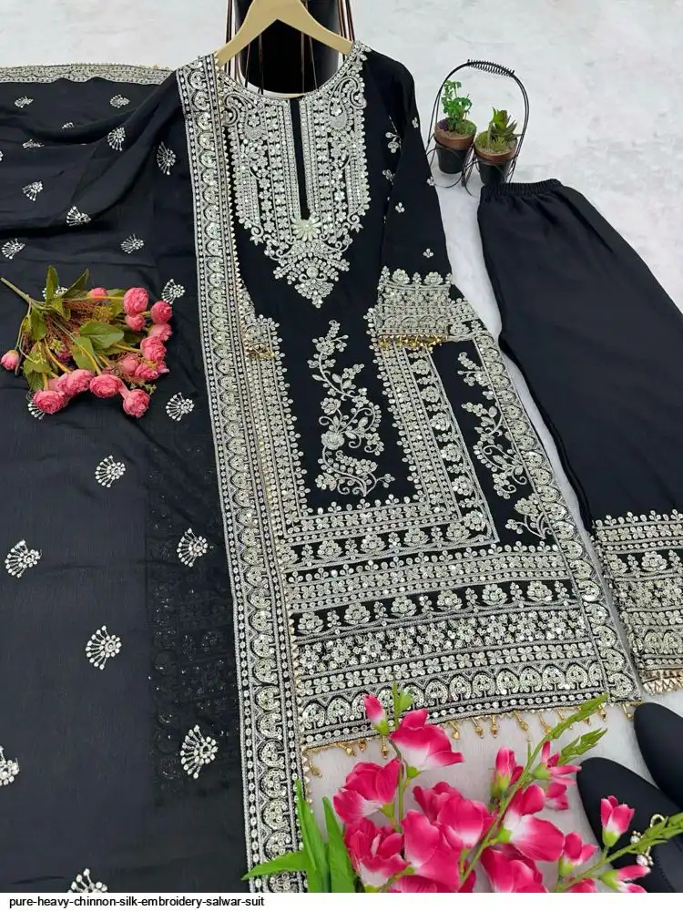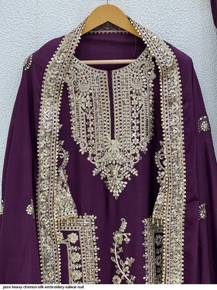 SKU : Afghani *Top Fabric* : Pure Heavy Chinnon Silk With Heavy Embroidery Coding Sequence Work and Sleeve
