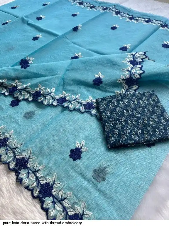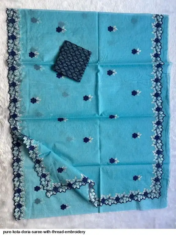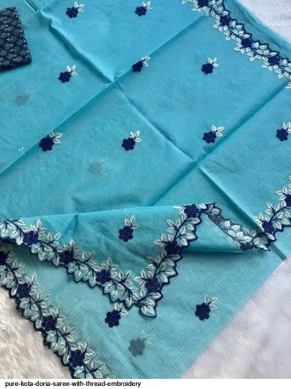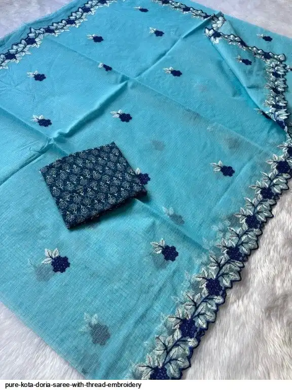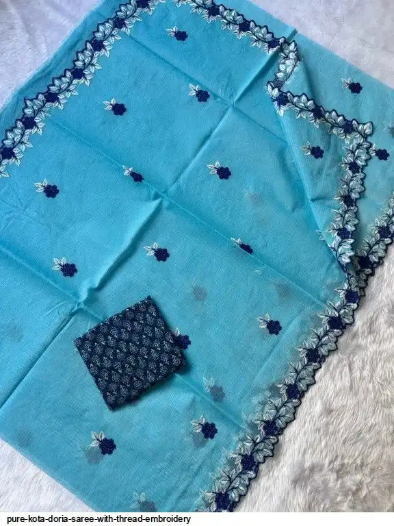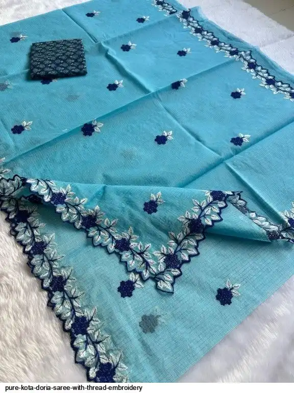 Pure Kota Doria Saree With Thread Embroidery All Over Saree and Running Blouse