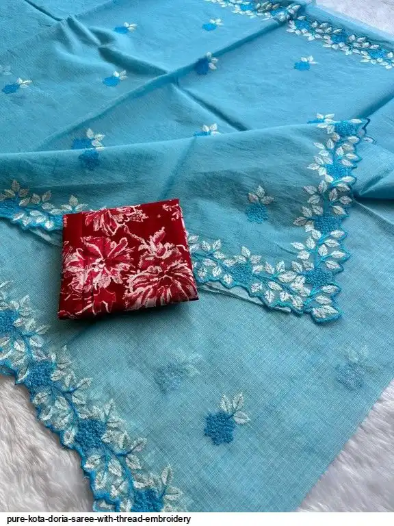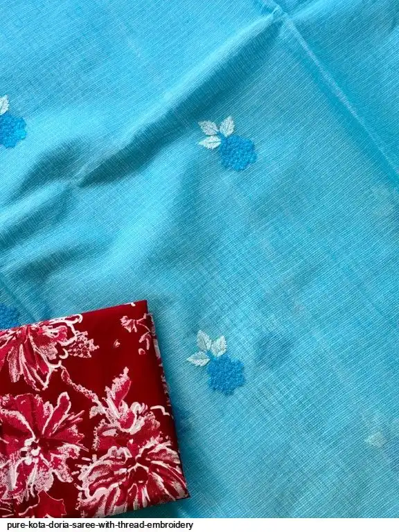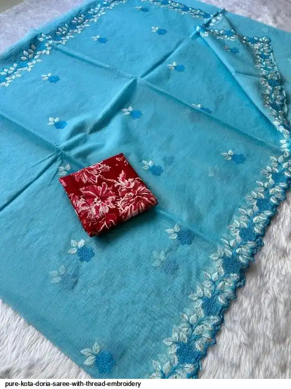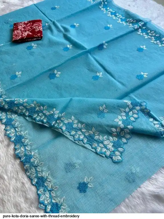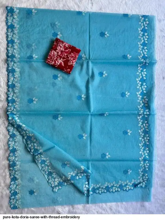 Pure Kota Doria Saree With Thread Embroidery All Over Saree and Running Blouse