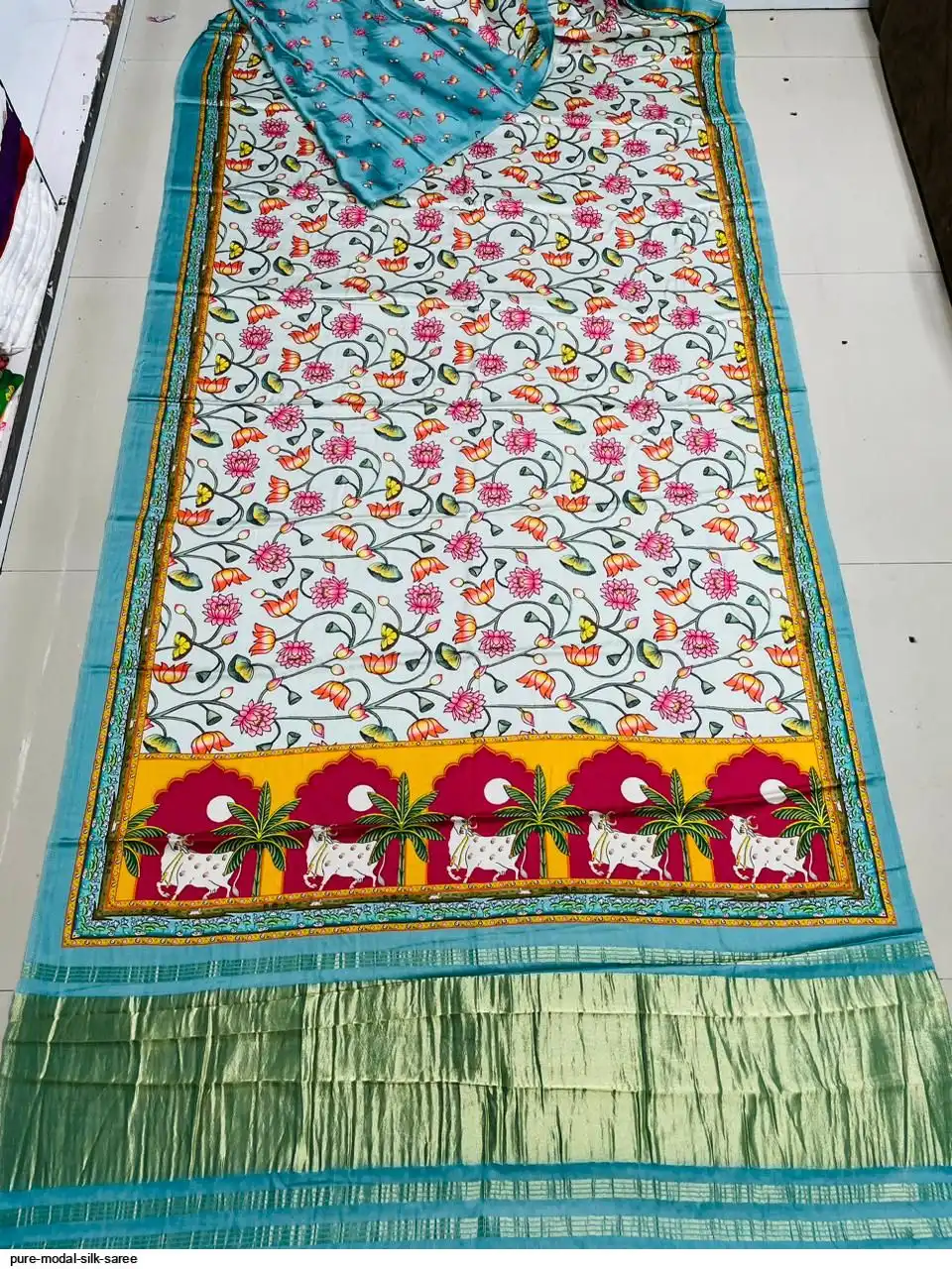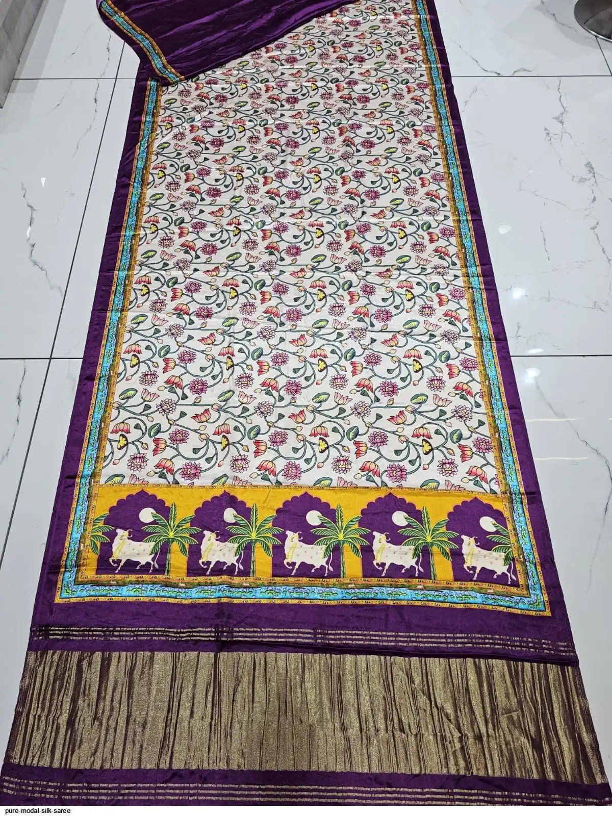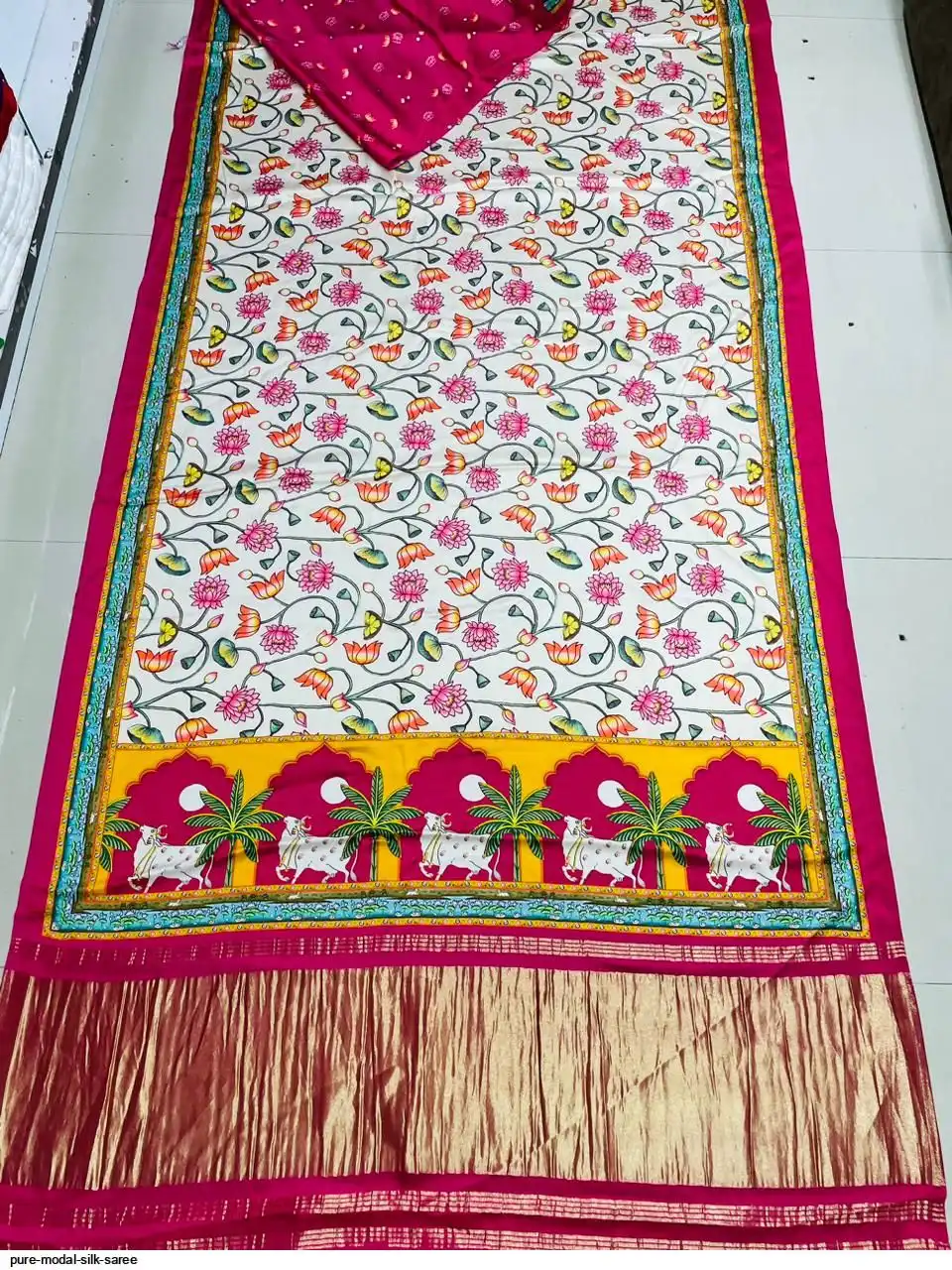 Digital print pure jari Lagid pallu saree Pure modal silk fabric