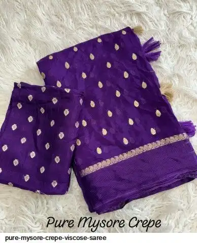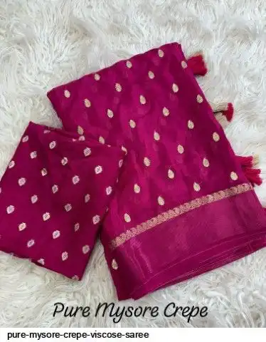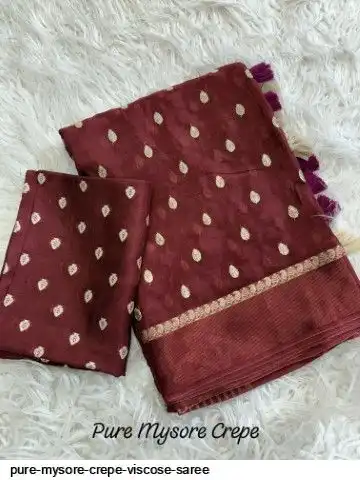 Pure viscose Mysore Crepe saree with satin patta border with zari butti worked with jacquard matching blouse