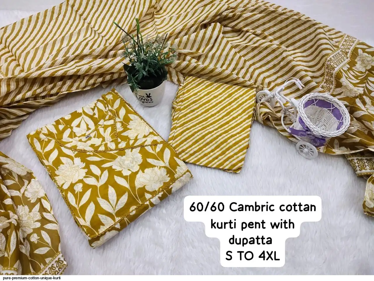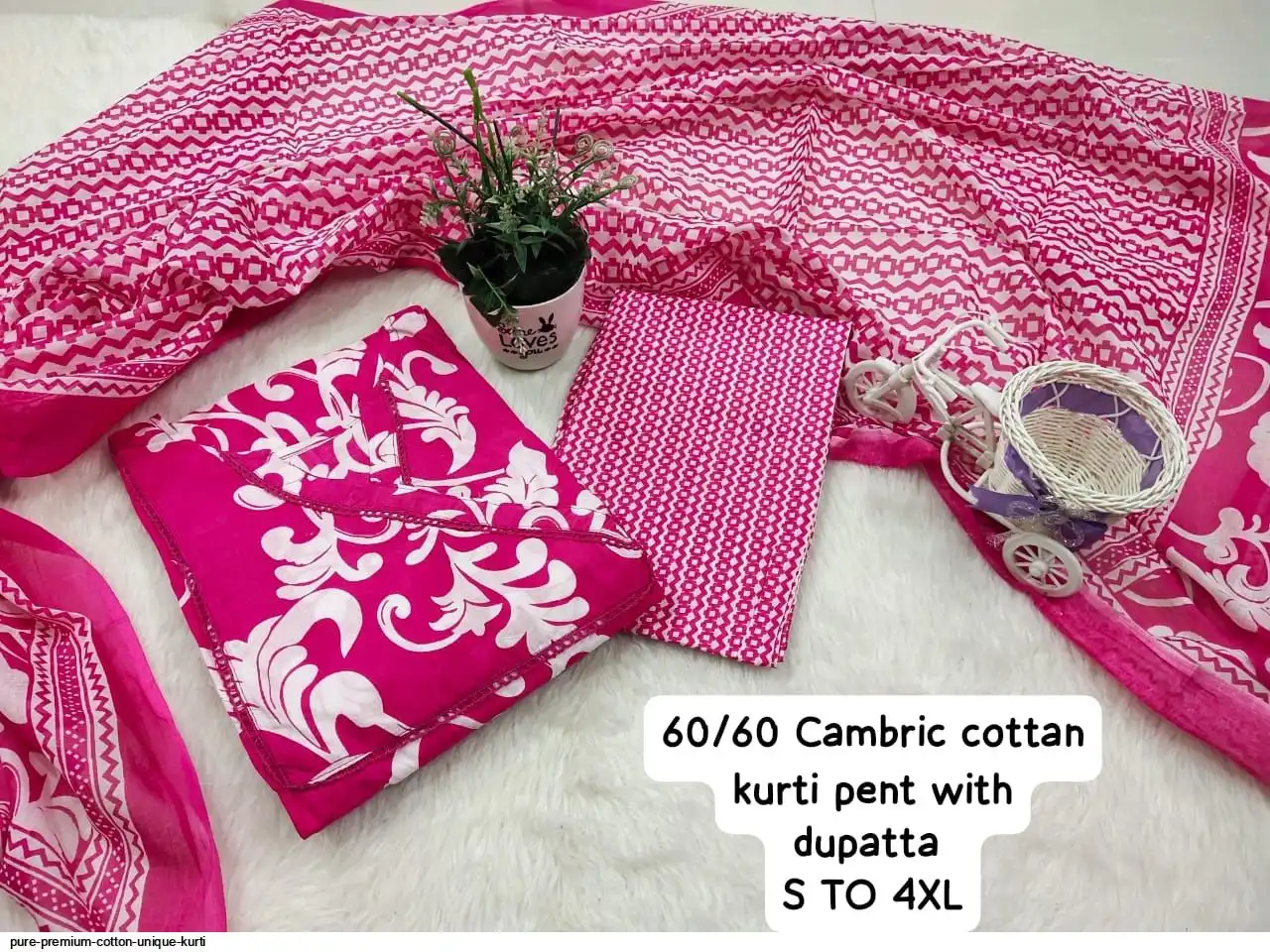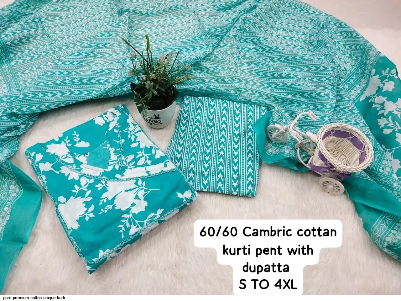 Premium Jaipur cambric cotton kurti pant with dupatta