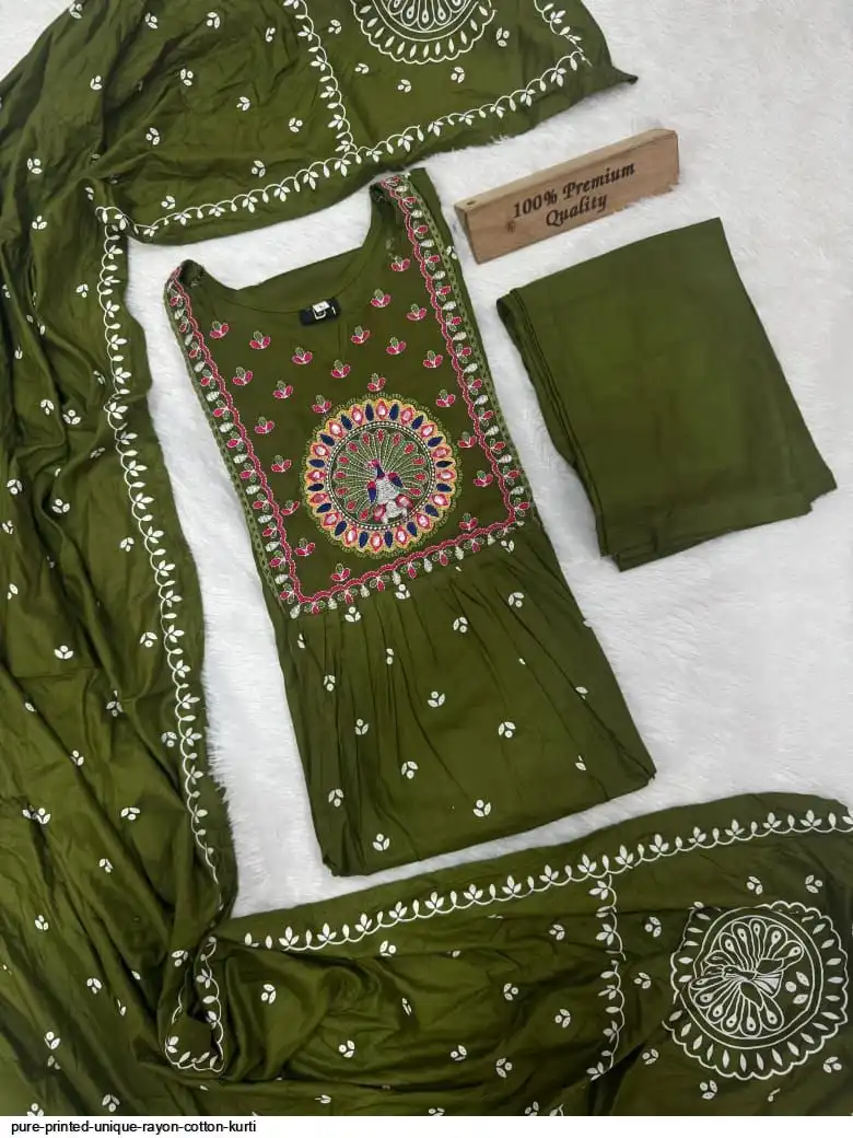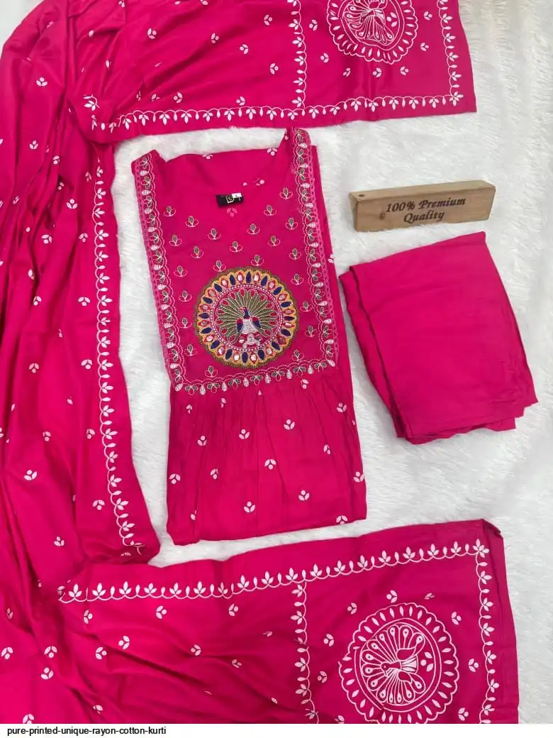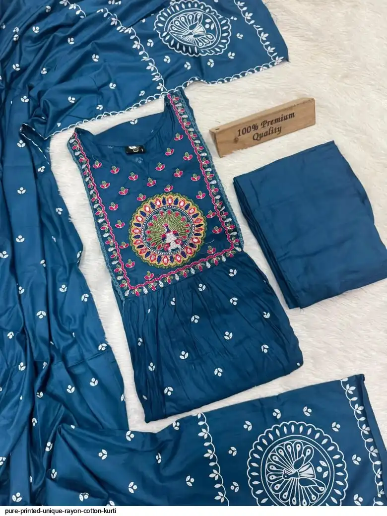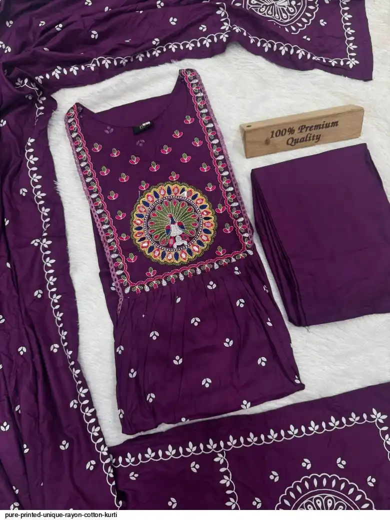 Top : *Pure Printed Rayon cotton with Embroidery work in neck and Sleeves and beautiful Nayraa cut with lace