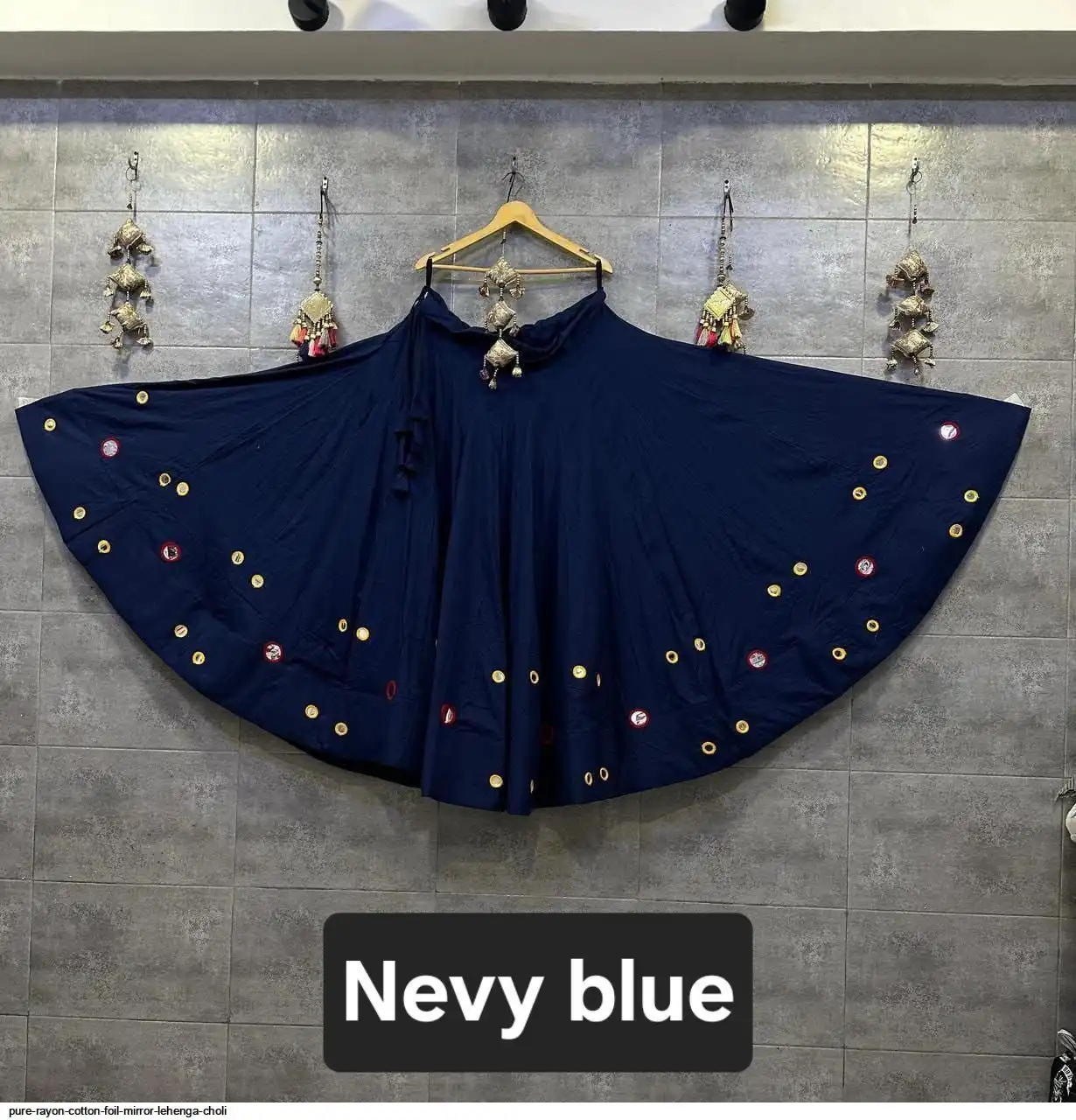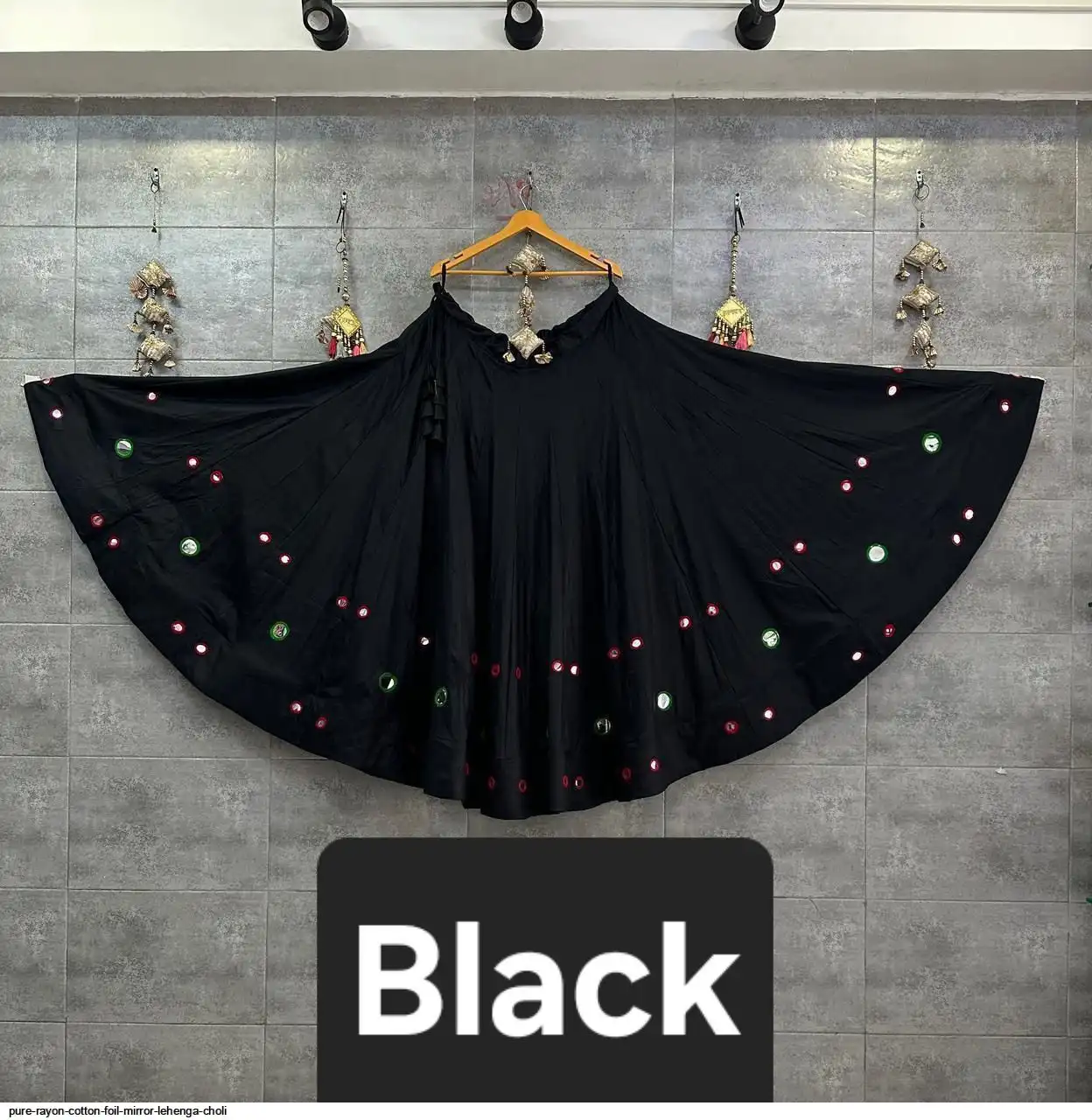 Pure rAyon cotton foil mirror work chaniya 6 mtr flare Hand aari work Pure crape lining