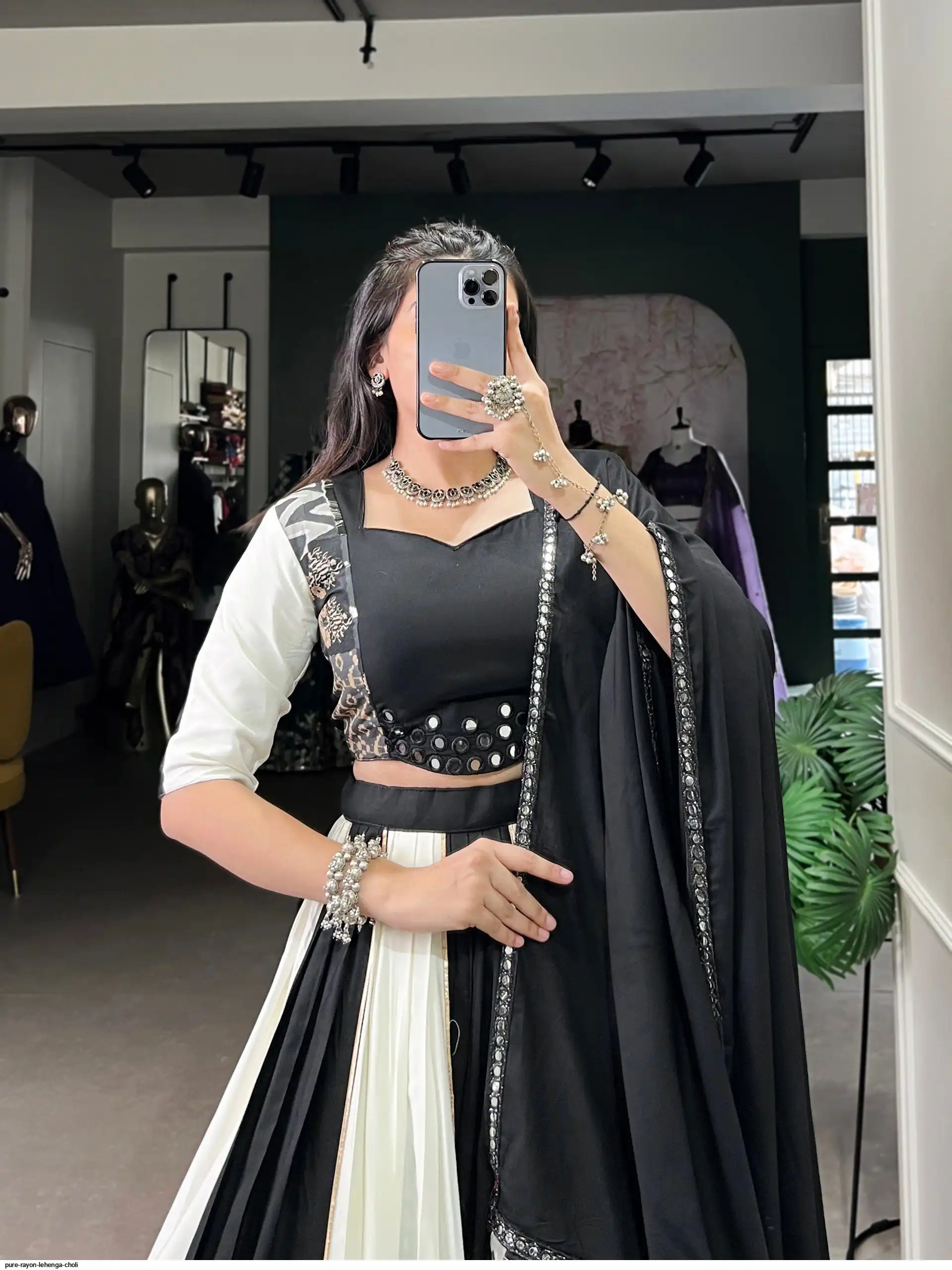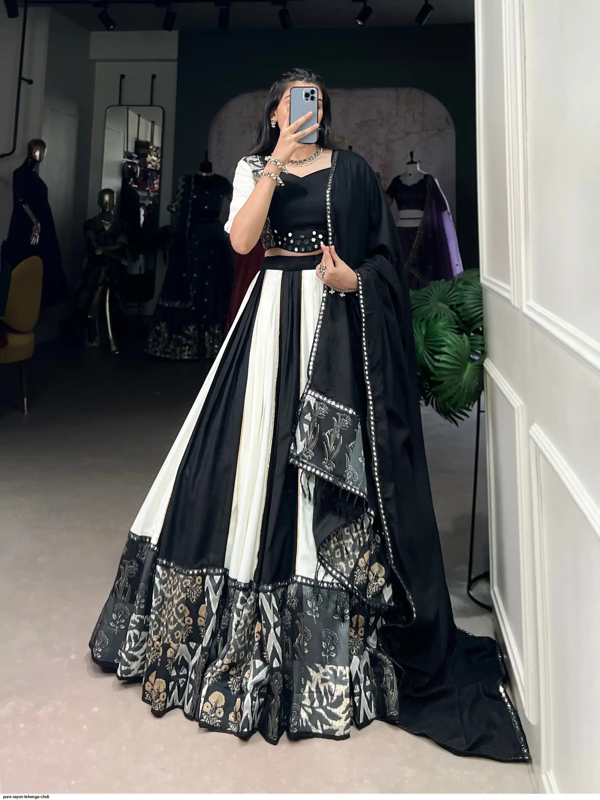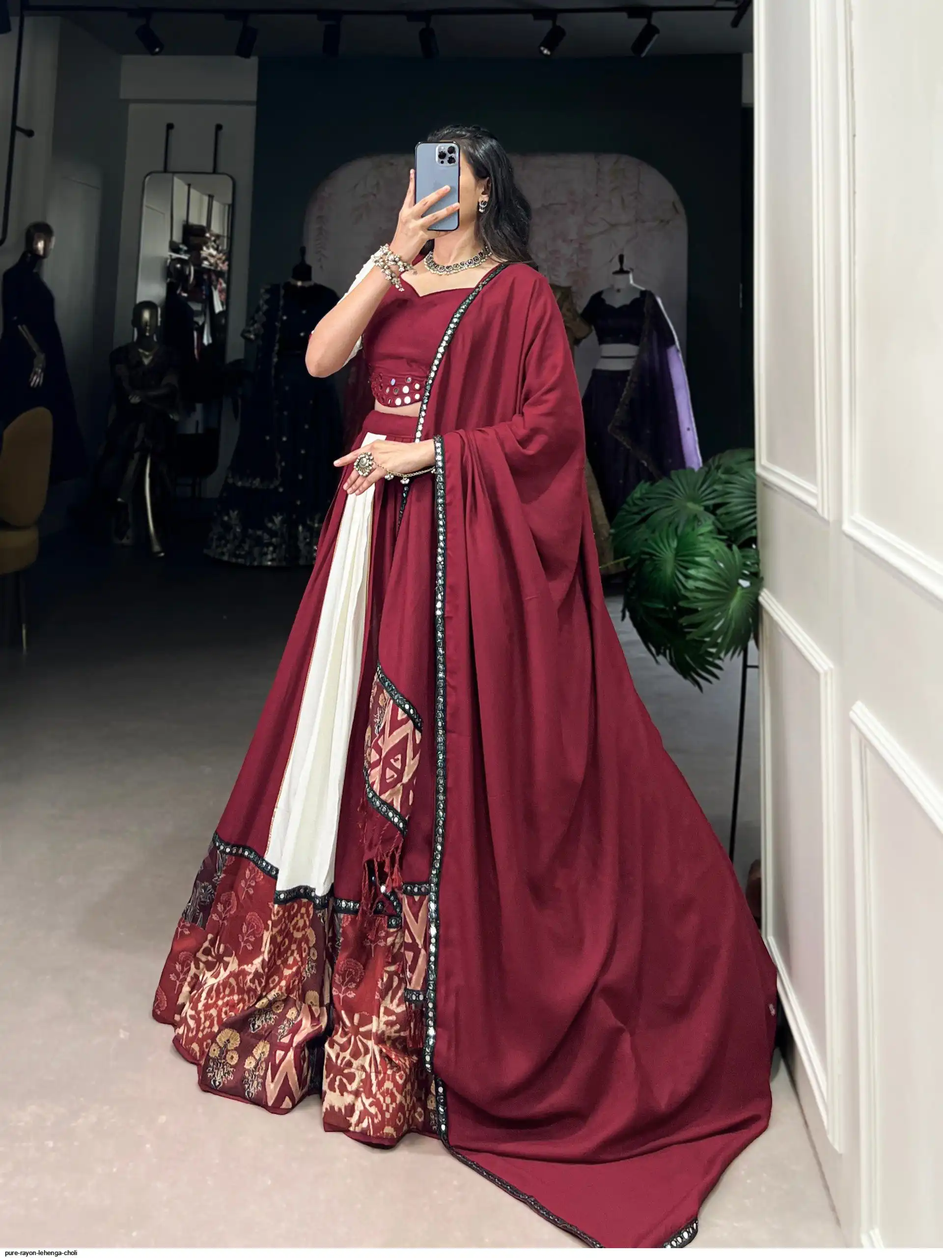 Lehenga Work : Plain And Printed With Paper Mirror Work Lace And Gota Patti Touch Up
