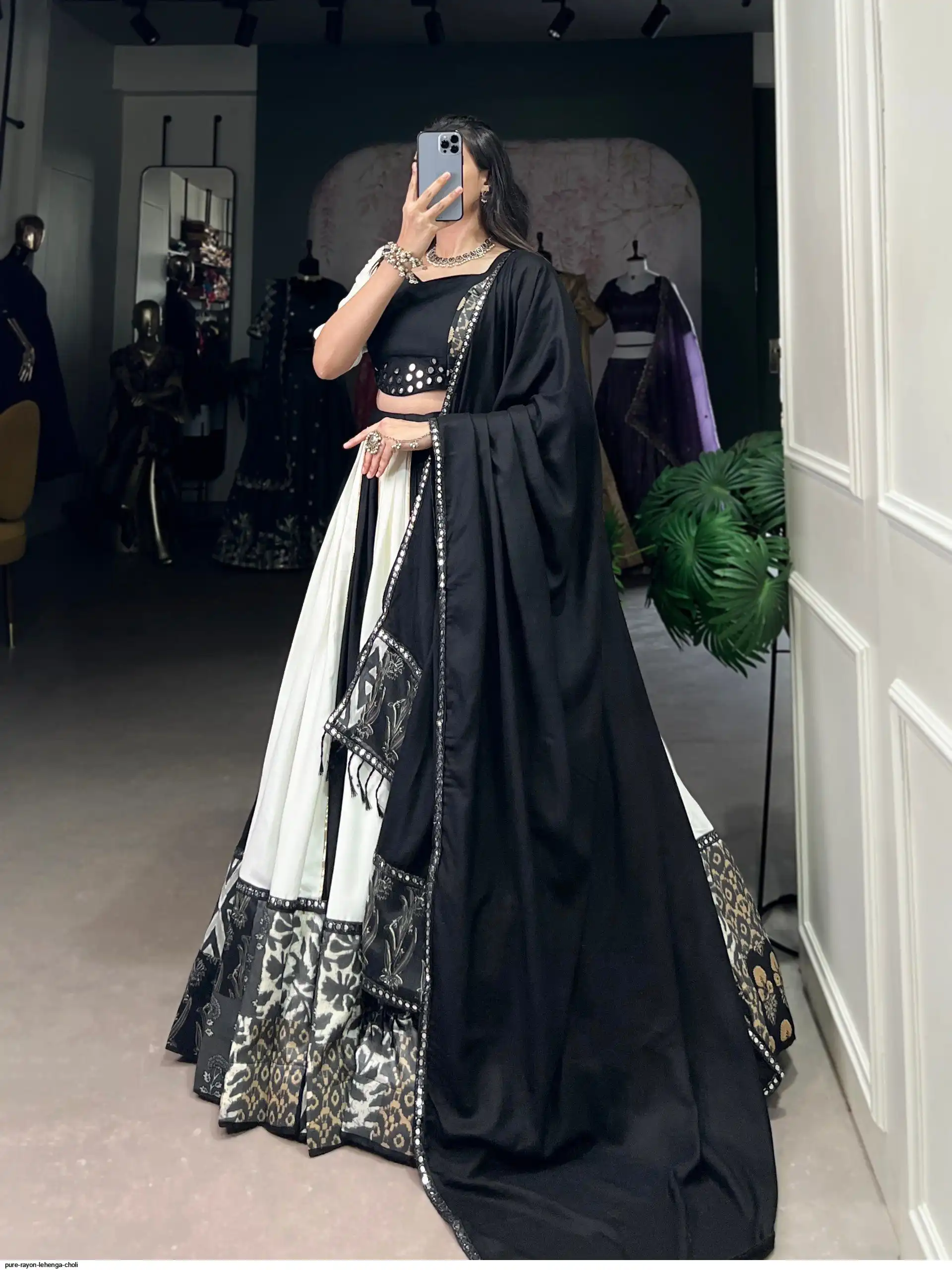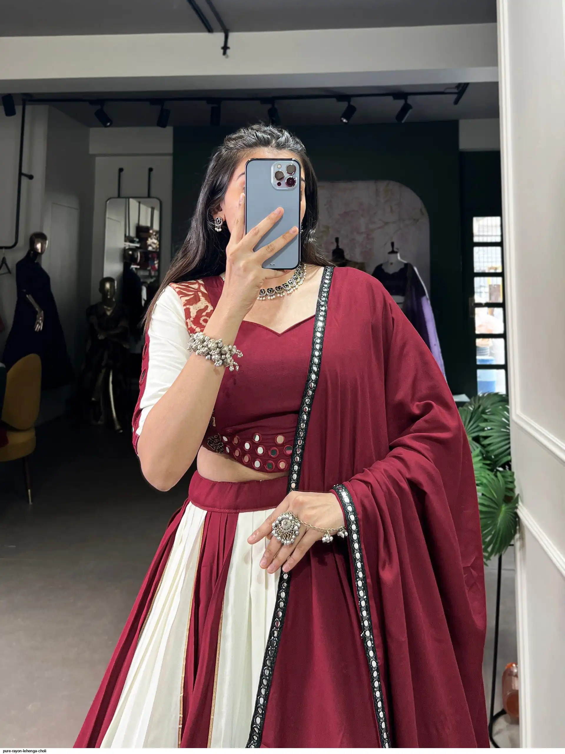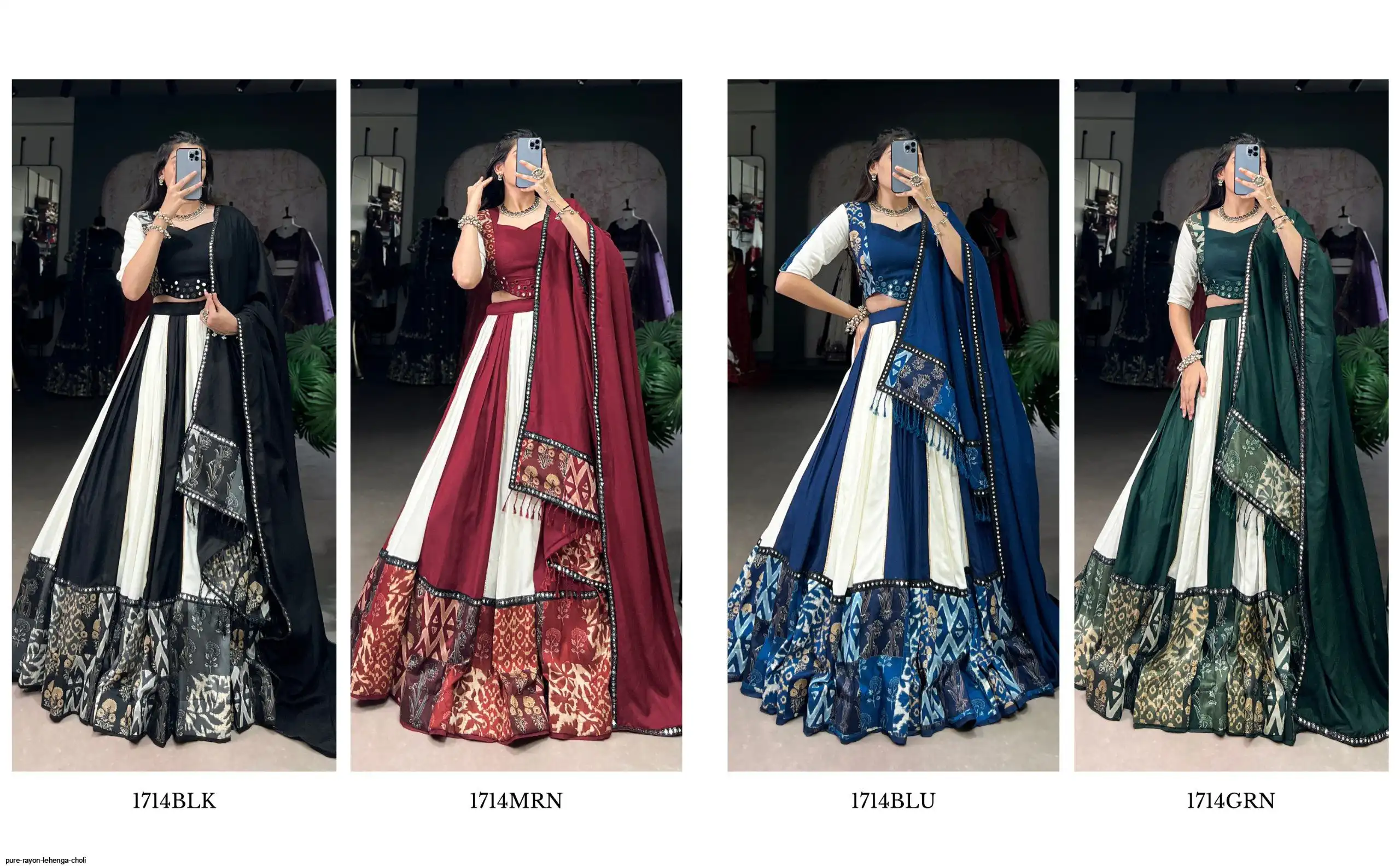 Lehenga Work : Plain And Printed With Paper Mirror Work Lace And Gota Patti Touch Up
