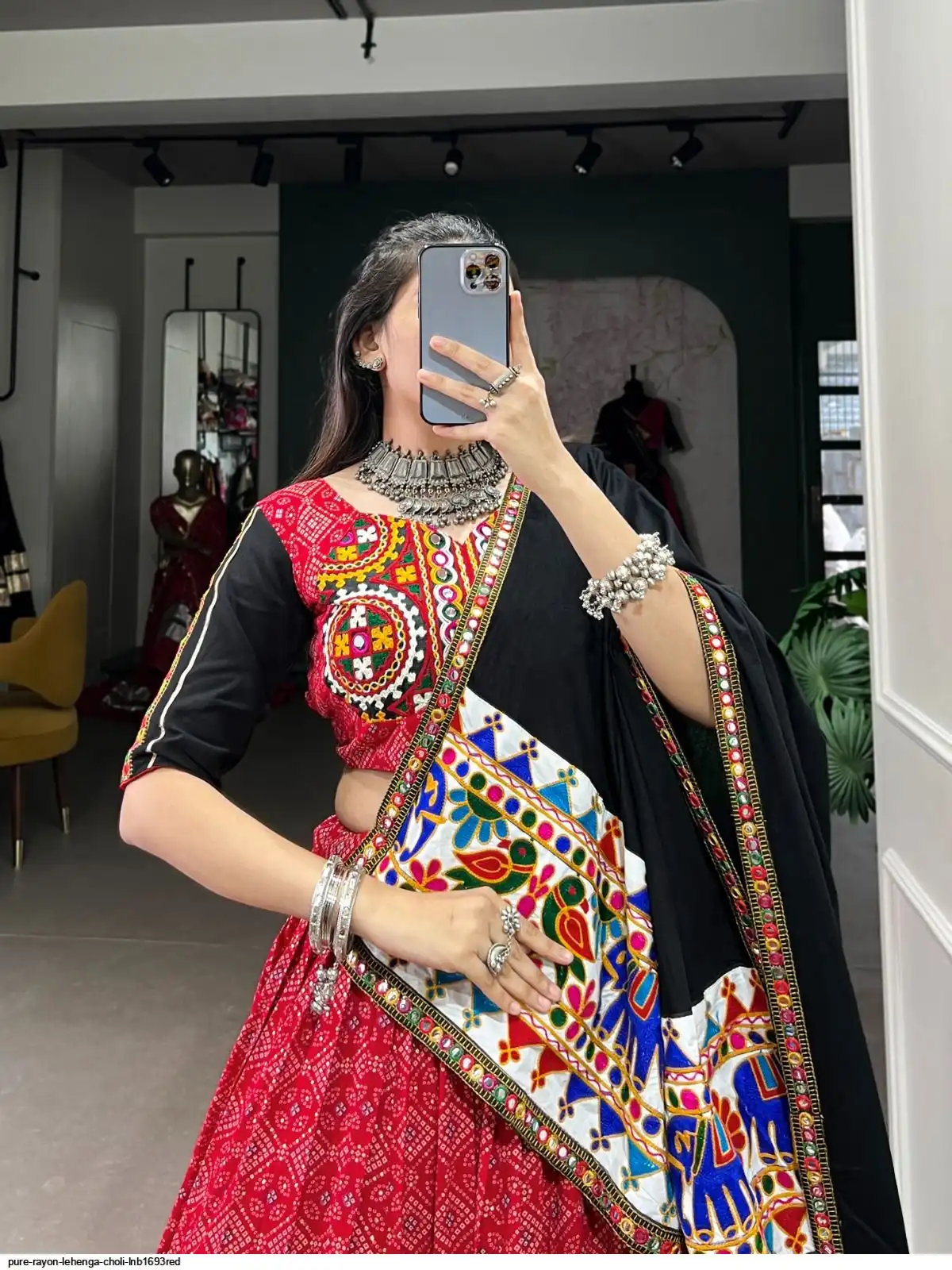 Lehenga Work : Printed And Gamthi work With Mirror work