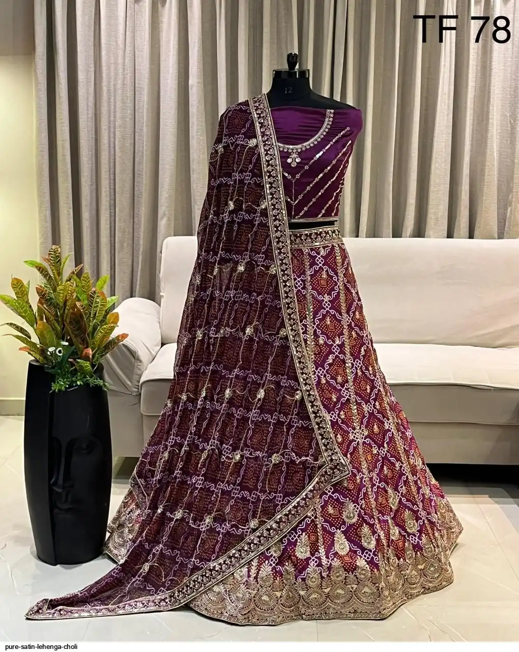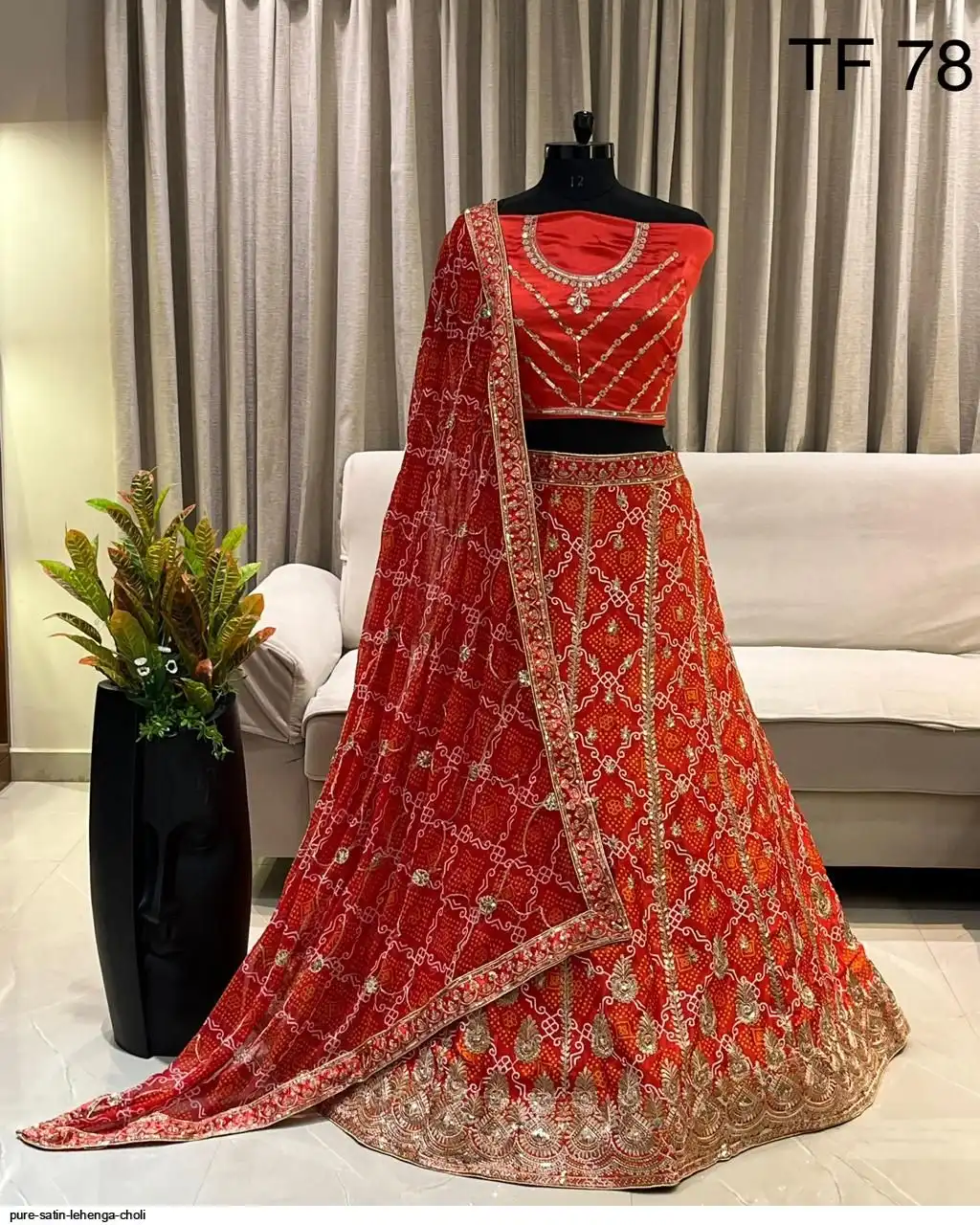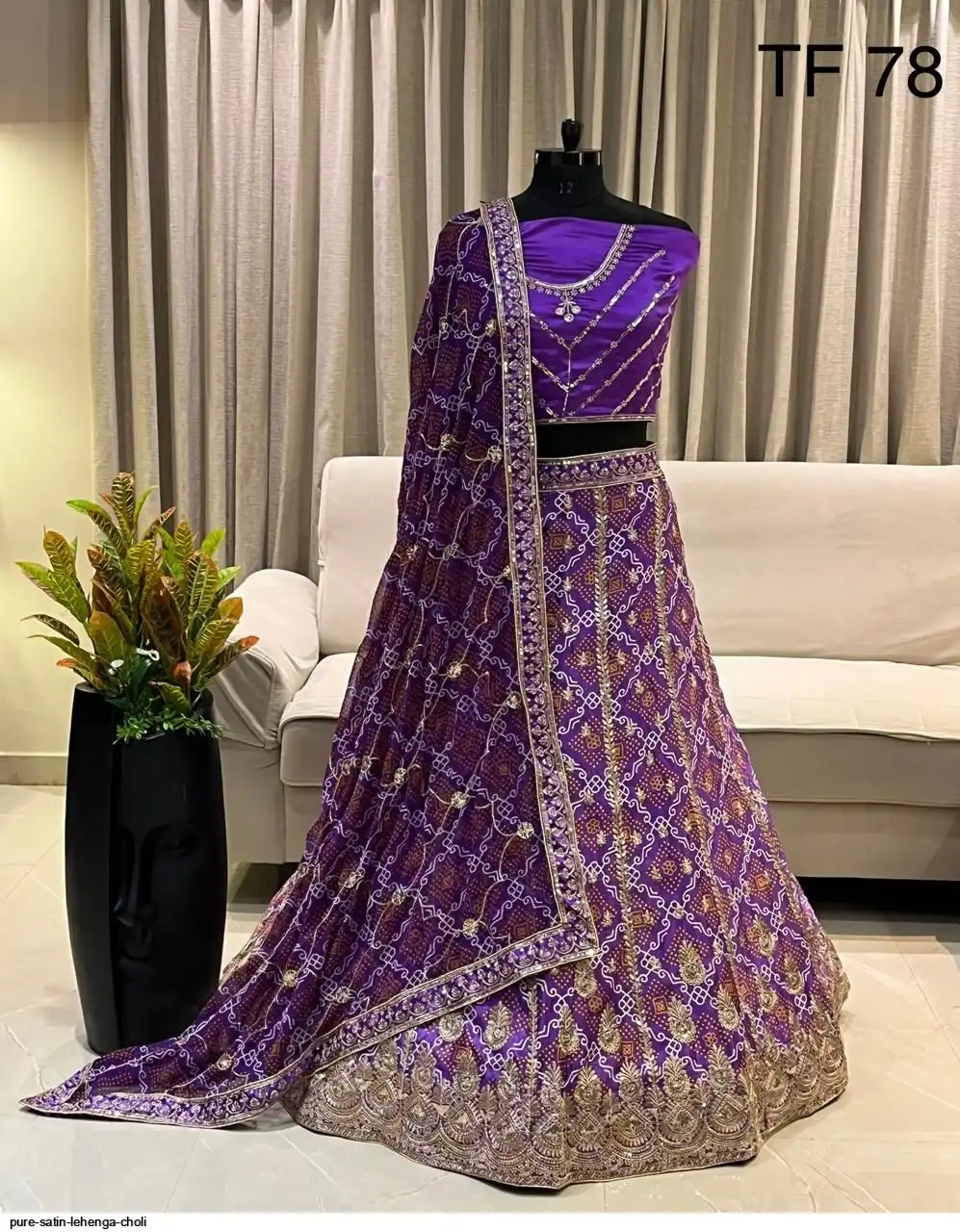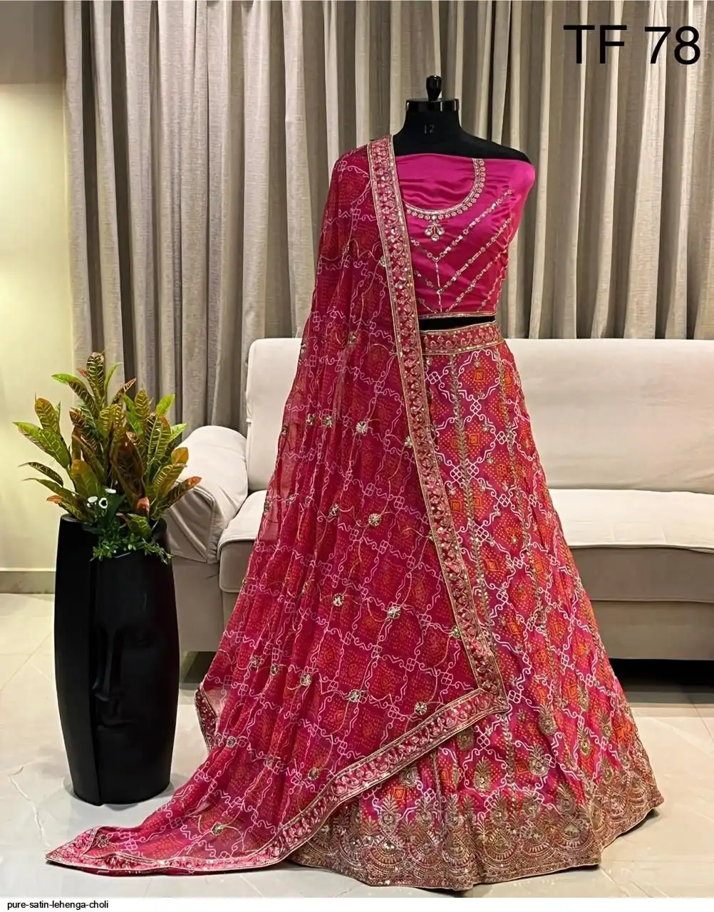 Pure satin bandhej silk work chaniya choli