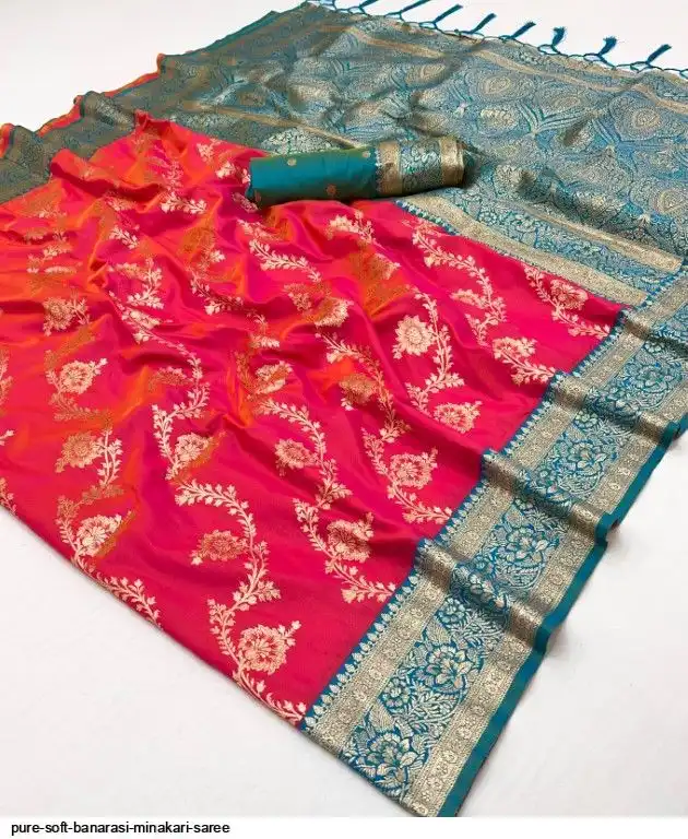ORIJANAL PURE BANARASI ZARI AND RICH MINA WORK PALLU WITH ALL OVER JAL MINA WORK DIJAIN AND HEAVY BODER