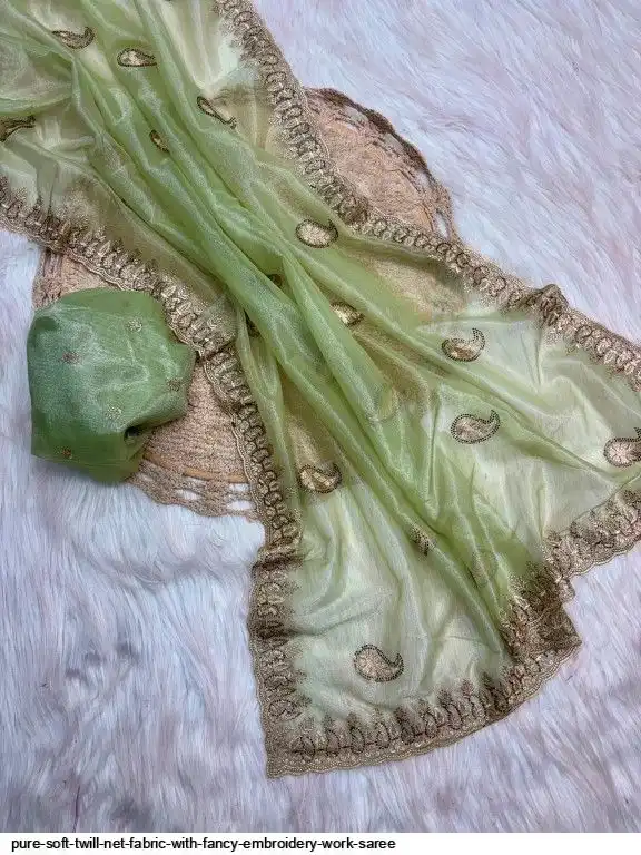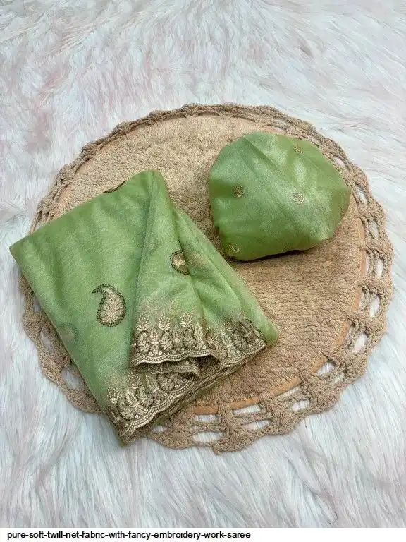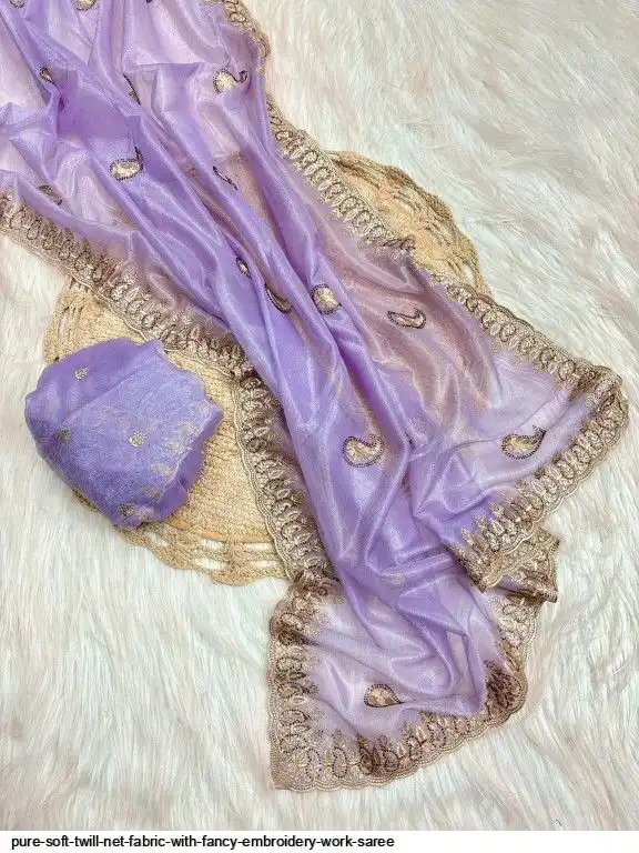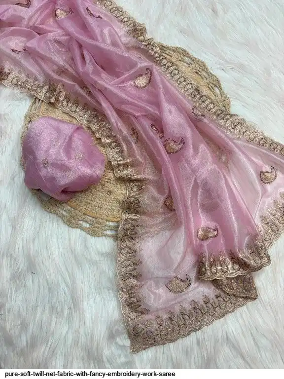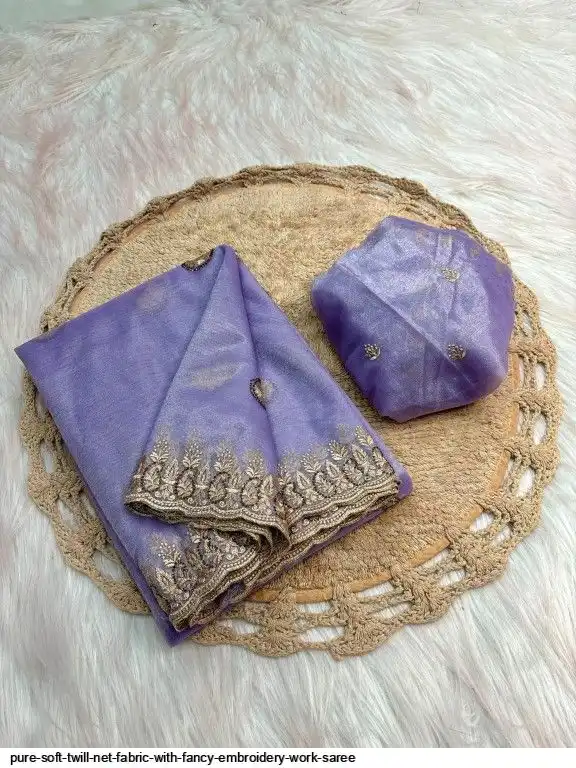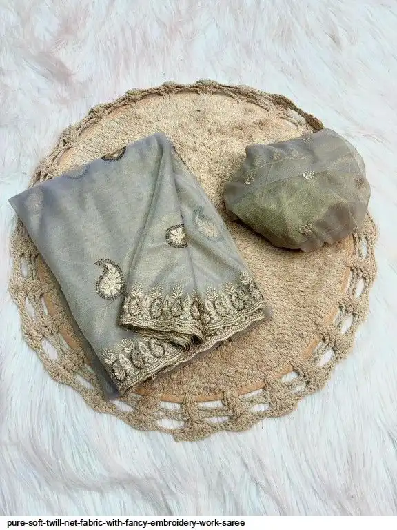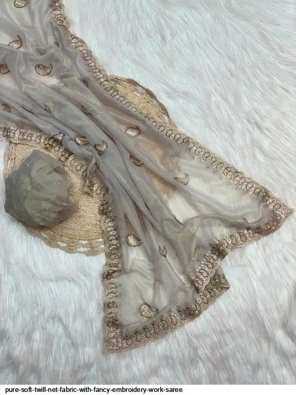 Pure Soft Twill Net Fabric with Fancy Embroidery Work & All Over Diamond Stone Siroski Work Saree